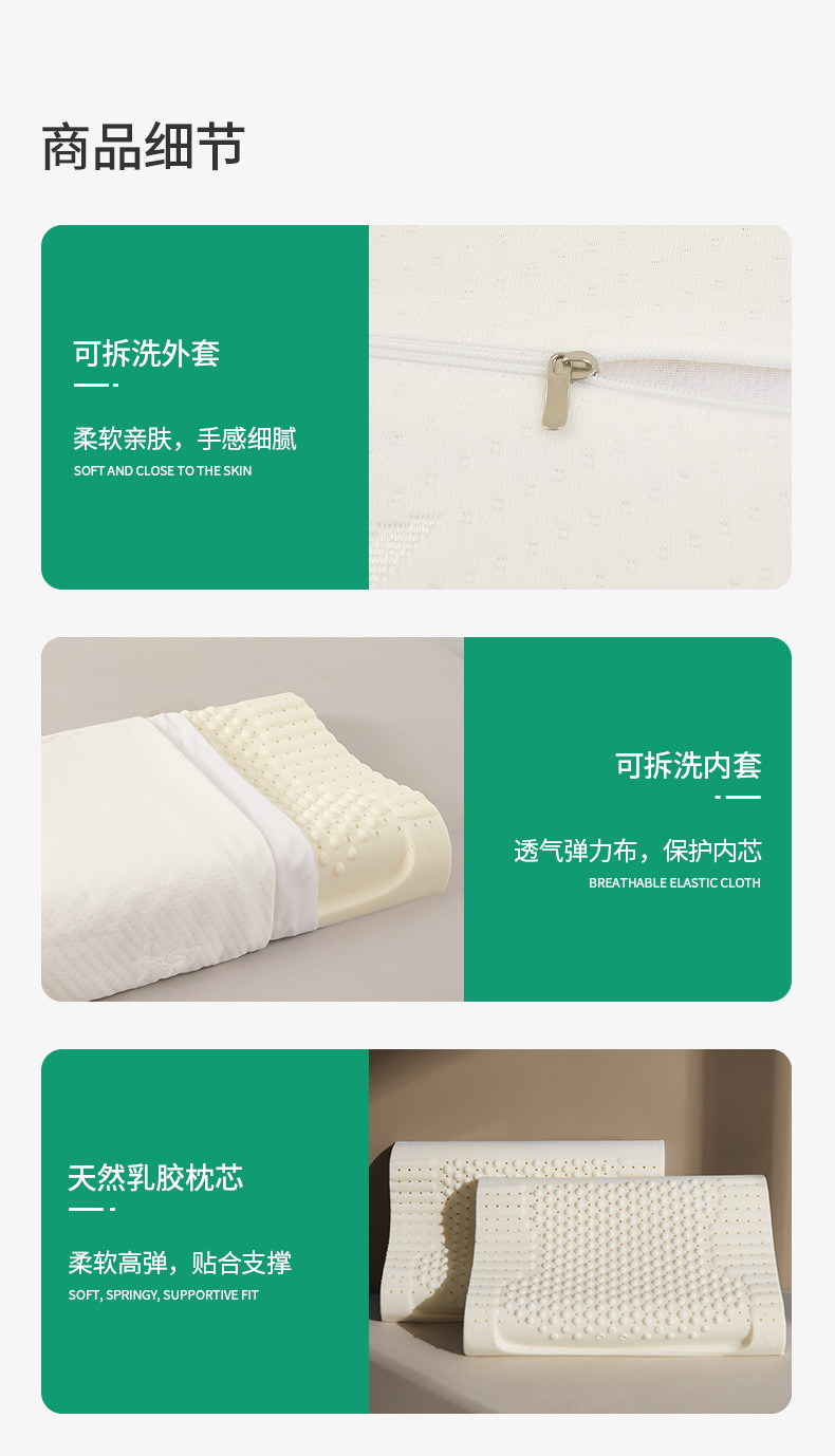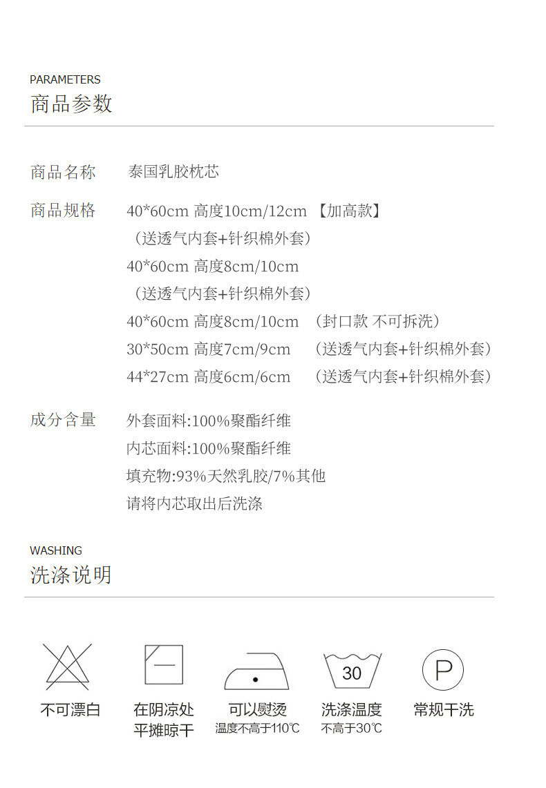 • [대형 베개-싱글] 과립 라텍스 베개 오리지널 듀폰 베개 케이스 (이동식 및 빨 수 없음