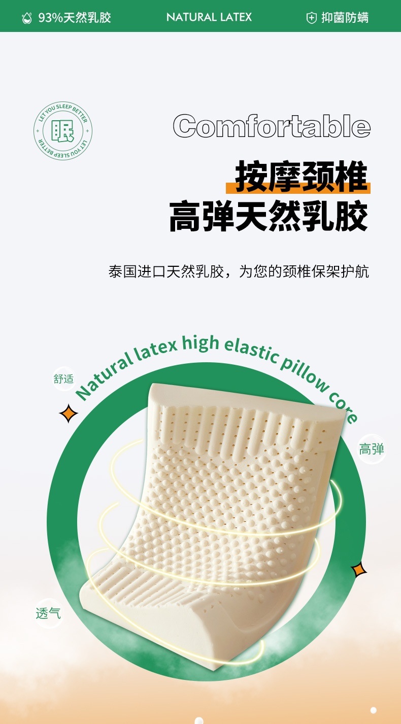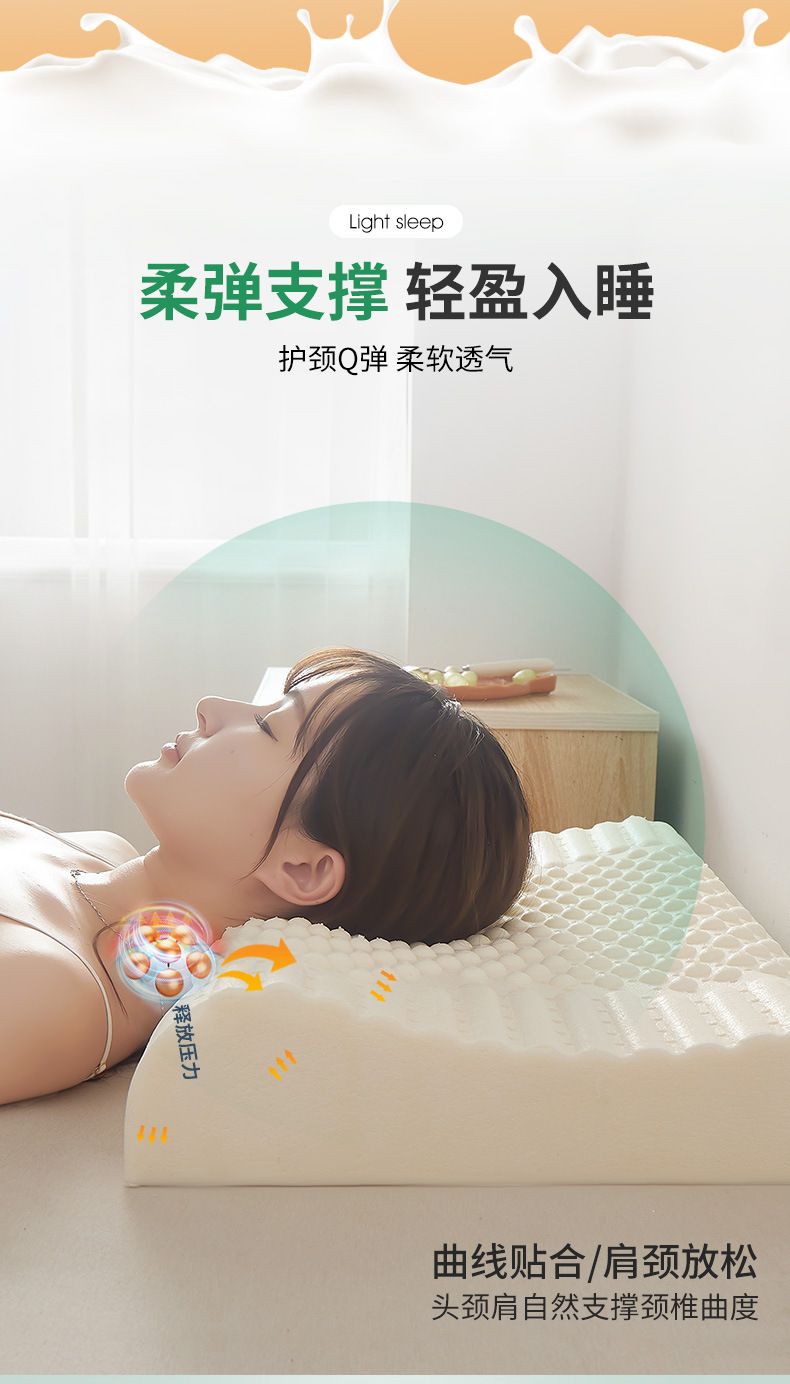 P66D 태국 라텍스 베개 홈 성인 쌍 학생 기숙사 천연 고무 자궁 경부 척추 보호 낮은 베개 수면스토어 가기