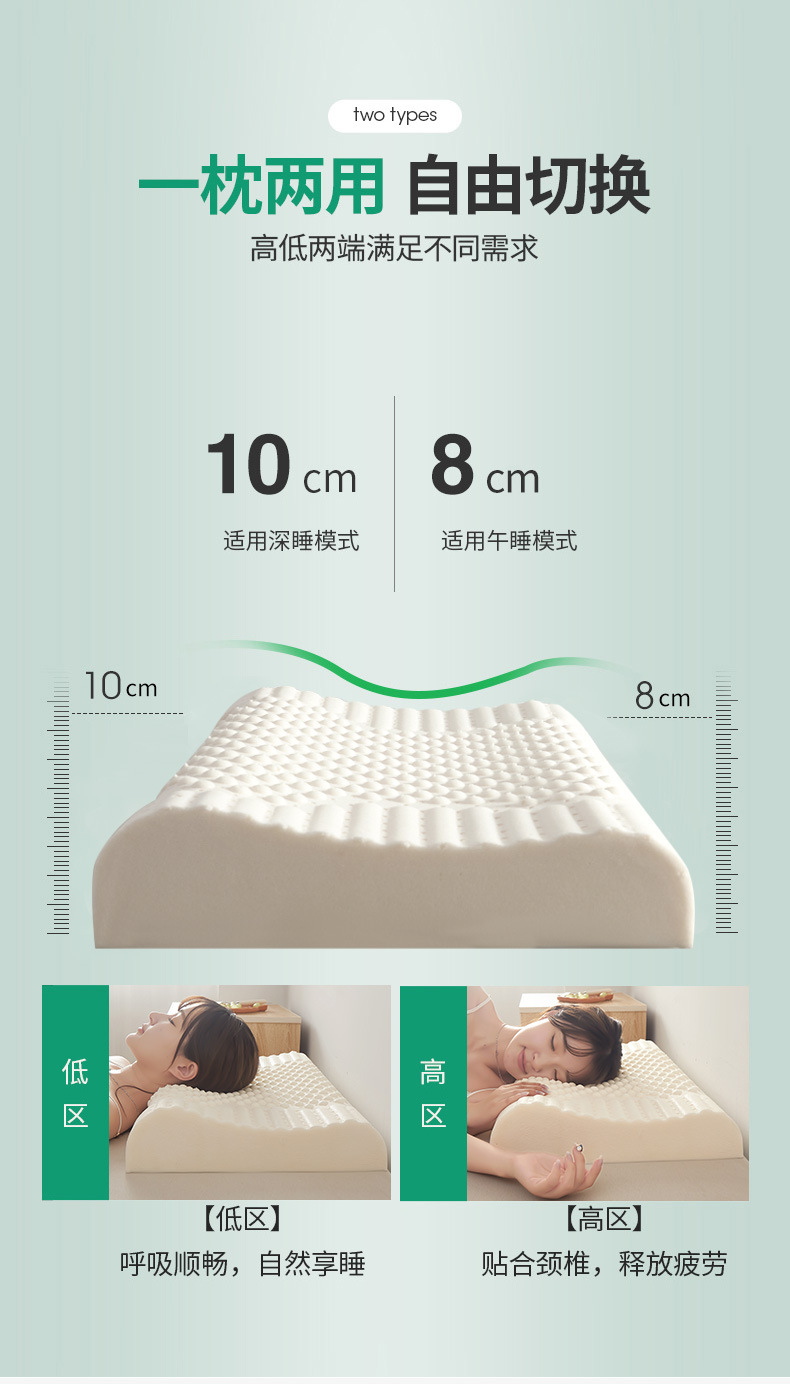 P66D 태국 라텍스 베개 홈 성인 쌍 학생 기숙사 천연 고무 자궁 경부 척추 보호 낮은 베개 수면