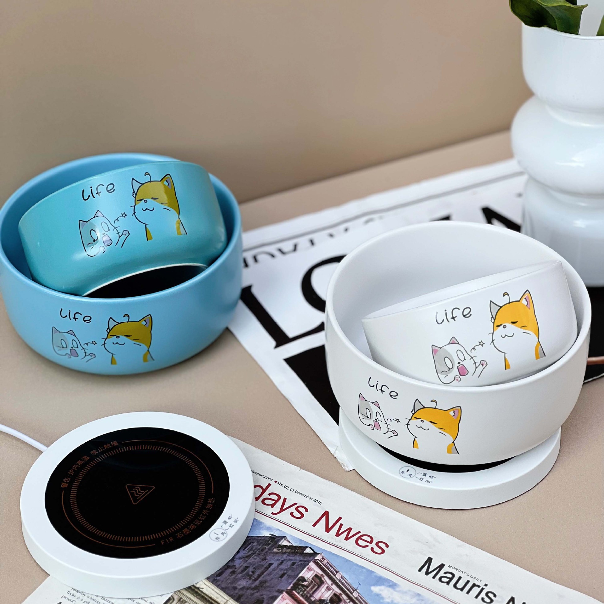 일정한 온도 고양이 마시는 물 음소거 난방 기계 요구르트 기계 세라믹 식수 공급 절연 그릇 애완 동물 높은 색 가치 고양이 그릇스토어 가기
