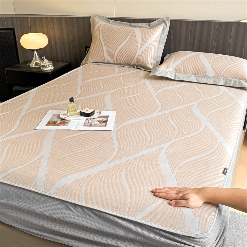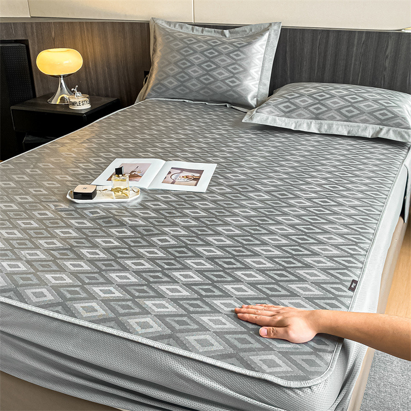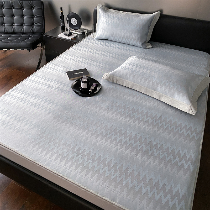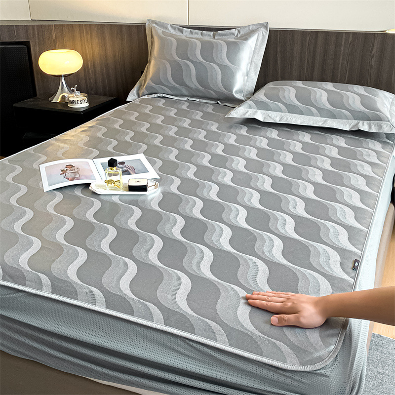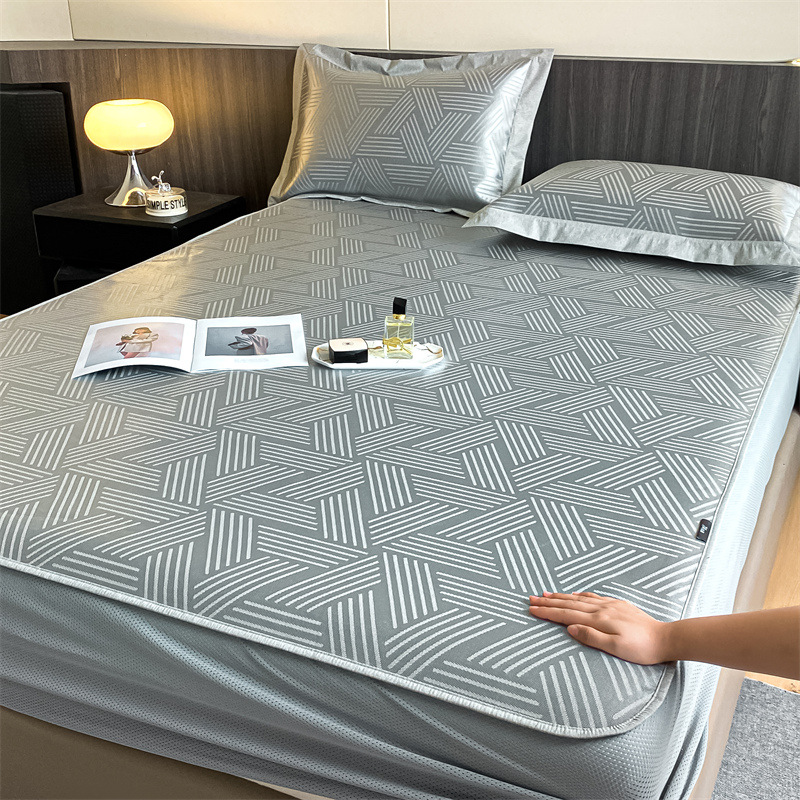 가벼운 럭셔리 여름 쿨 자카드 아이스 실크 매트 3 피스 세트 침대 모자 접이식 항균 에어컨 매트 여름 매트