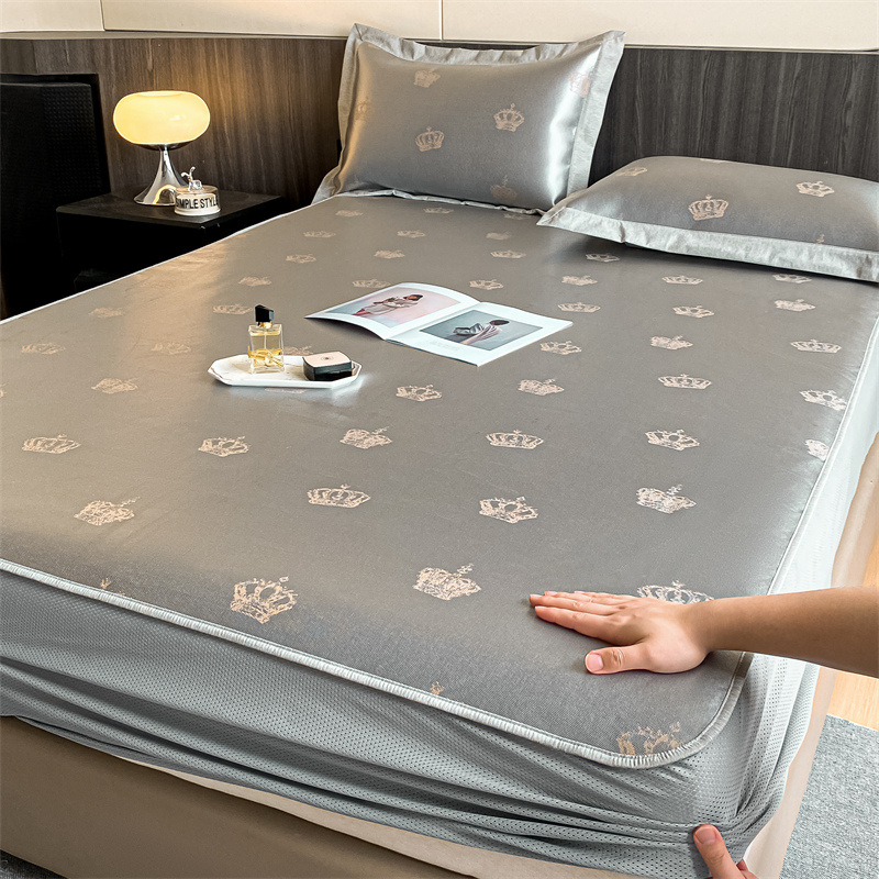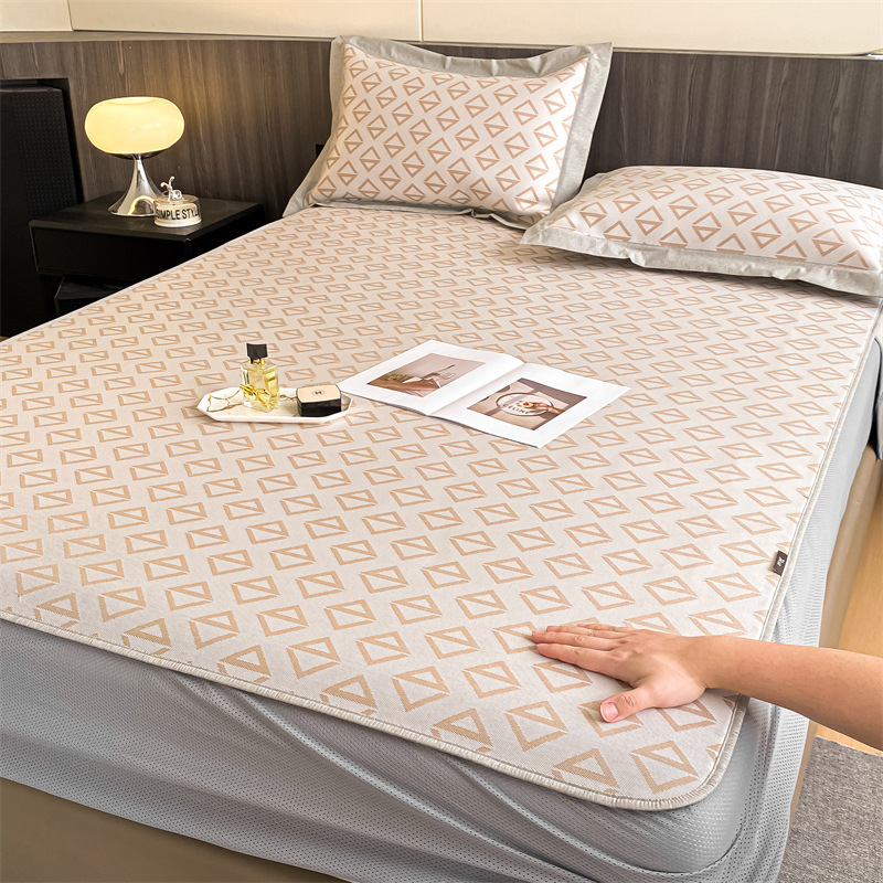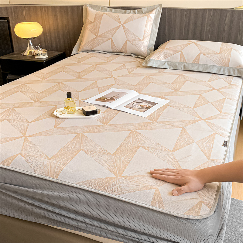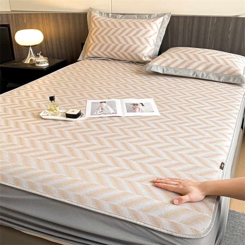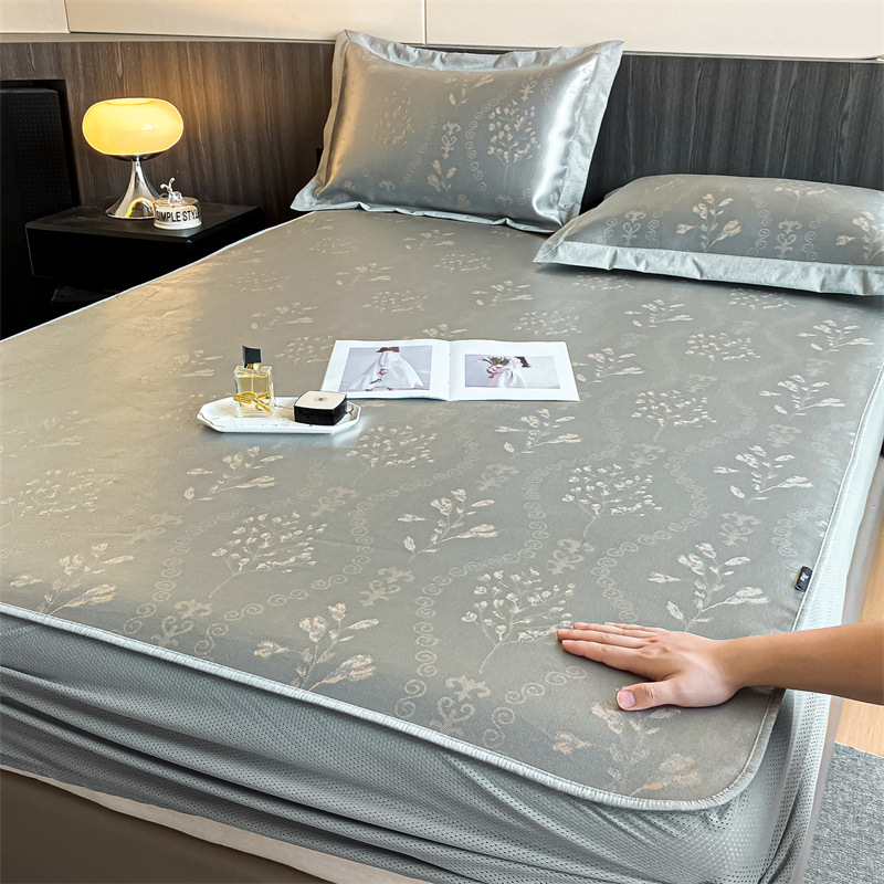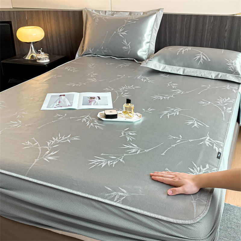 가벼운 럭셔리 여름 쿨 자카드 아이스 실크 매트 3 피스 세트 침대 모자 접이식 항균 에어컨 매트 여름 매트