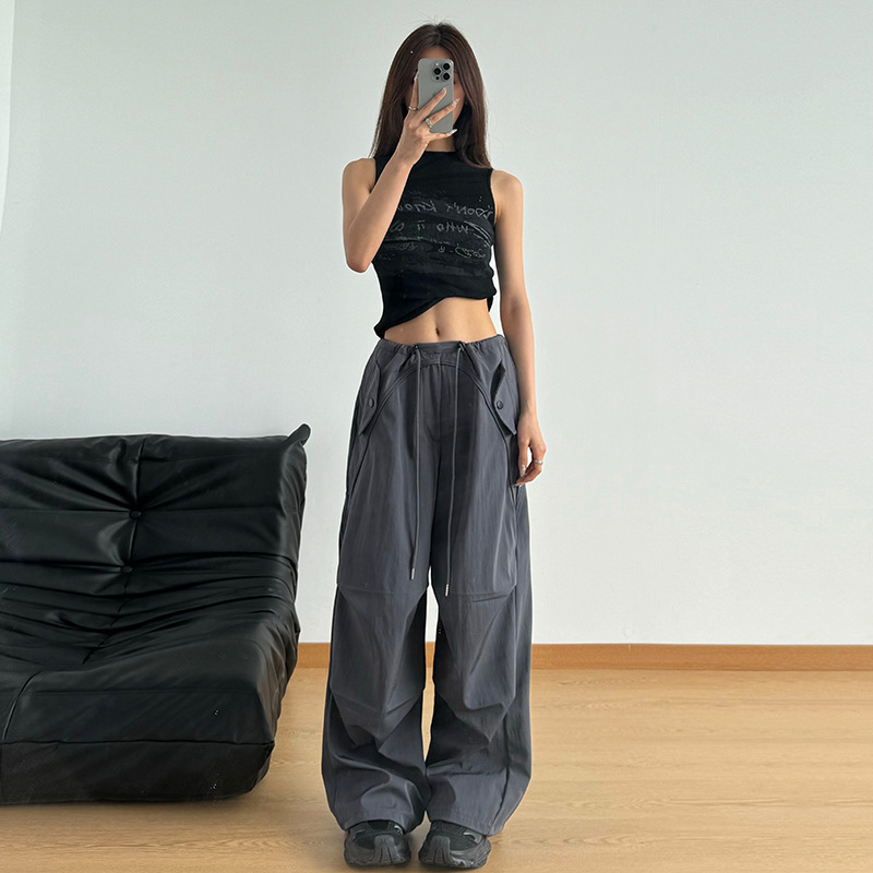 높은 허리 등산 바지 여자의 2024 새로운 도착 올매치 빠른 건조 낙하산 바지 캐주얼 키 큰 여성 의류 폭발성 느슨한 바지