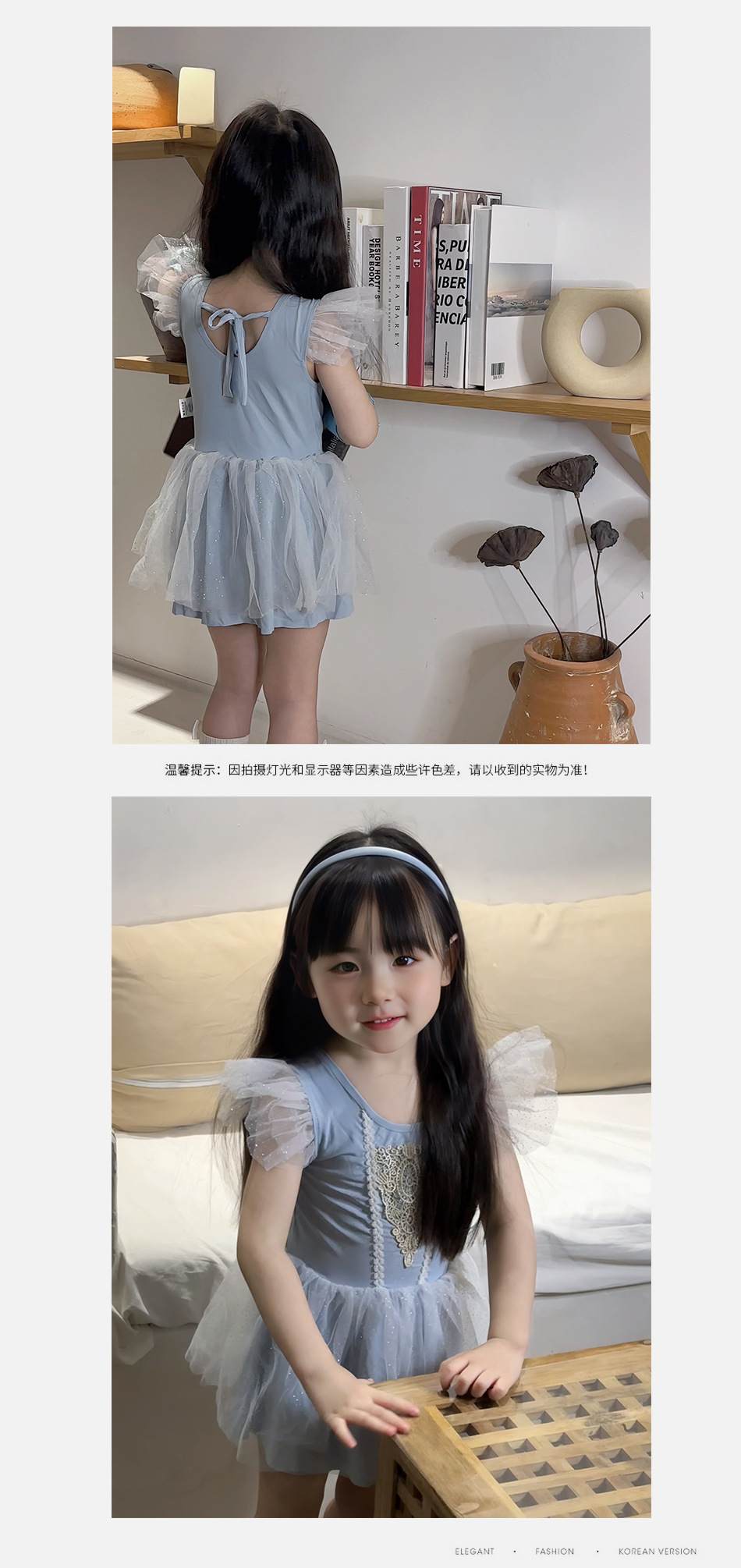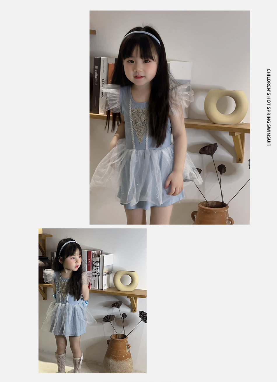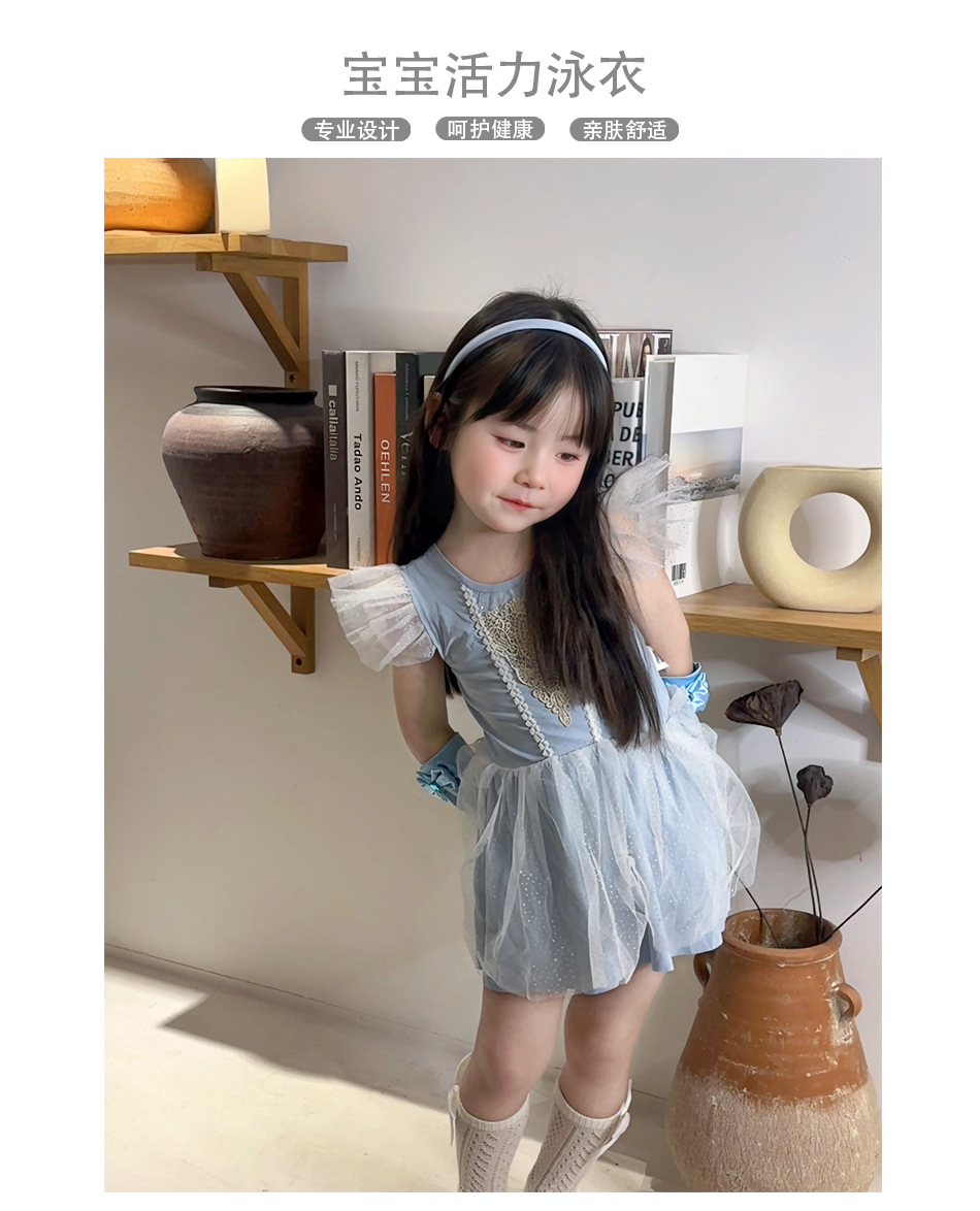 여자 원피스 수영복 온라인 인기 한국 스타일 2023 여름 소녀 아기 소녀 공주 블루 수영복 한국 스타일스토어 가기