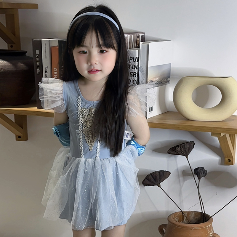 여자 원피스 수영복 온라인 인기 한국 스타일 2023 여름 소녀 아기 소녀 공주 블루 수영복 한국 스타일