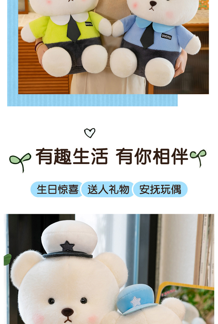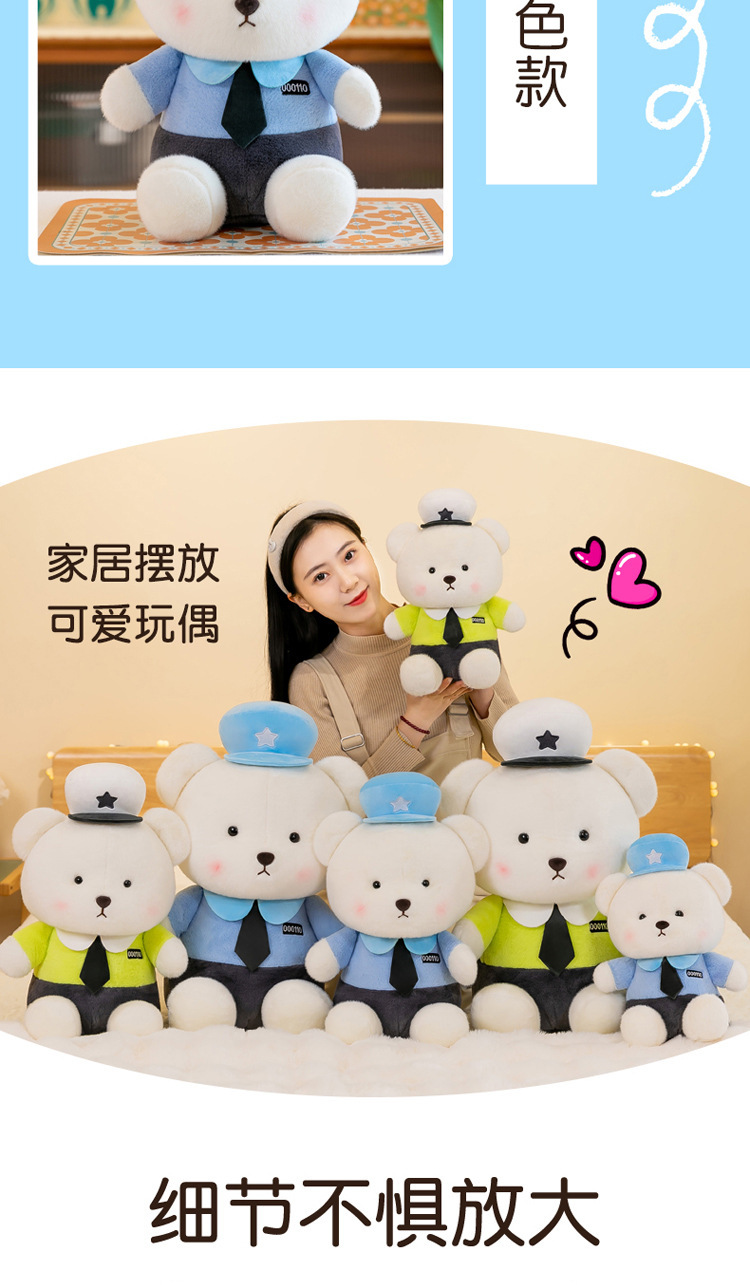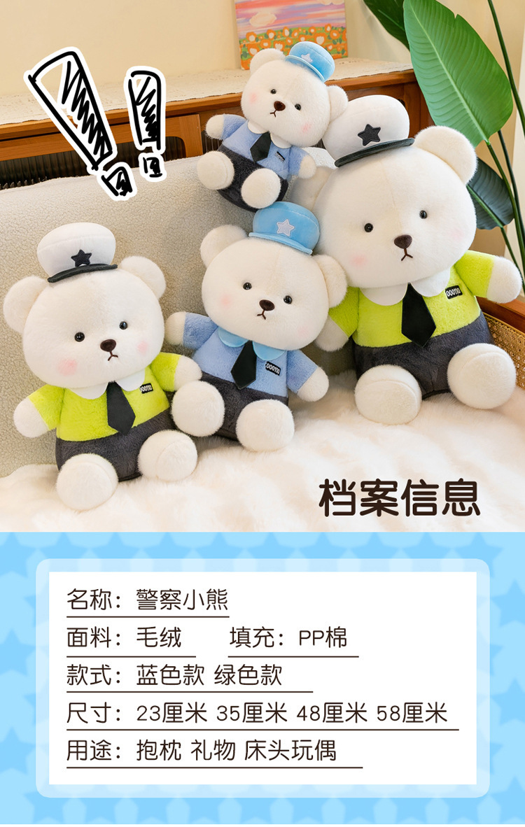 새로운 교통 경찰 새끼 곰 인형 경찰 테디 베어 인형 부드러운 피부 친화적 인 커플 곰 컴포트 하이 퀄리티 봉제 장난감스토어 가기
