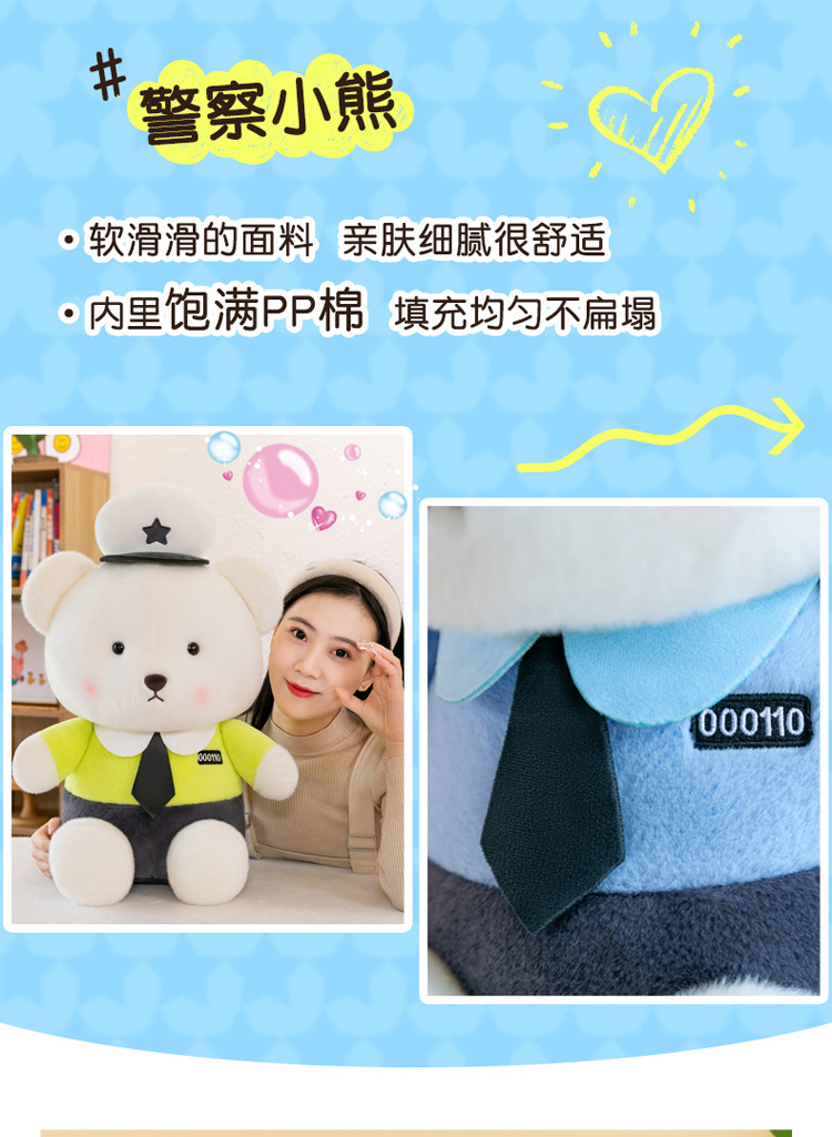 새로운 교통 경찰 새끼 곰 인형 경찰 테디 베어 인형 부드러운 피부 친화적 인 커플 곰 컴포트 하이 퀄리티 봉제 장난감