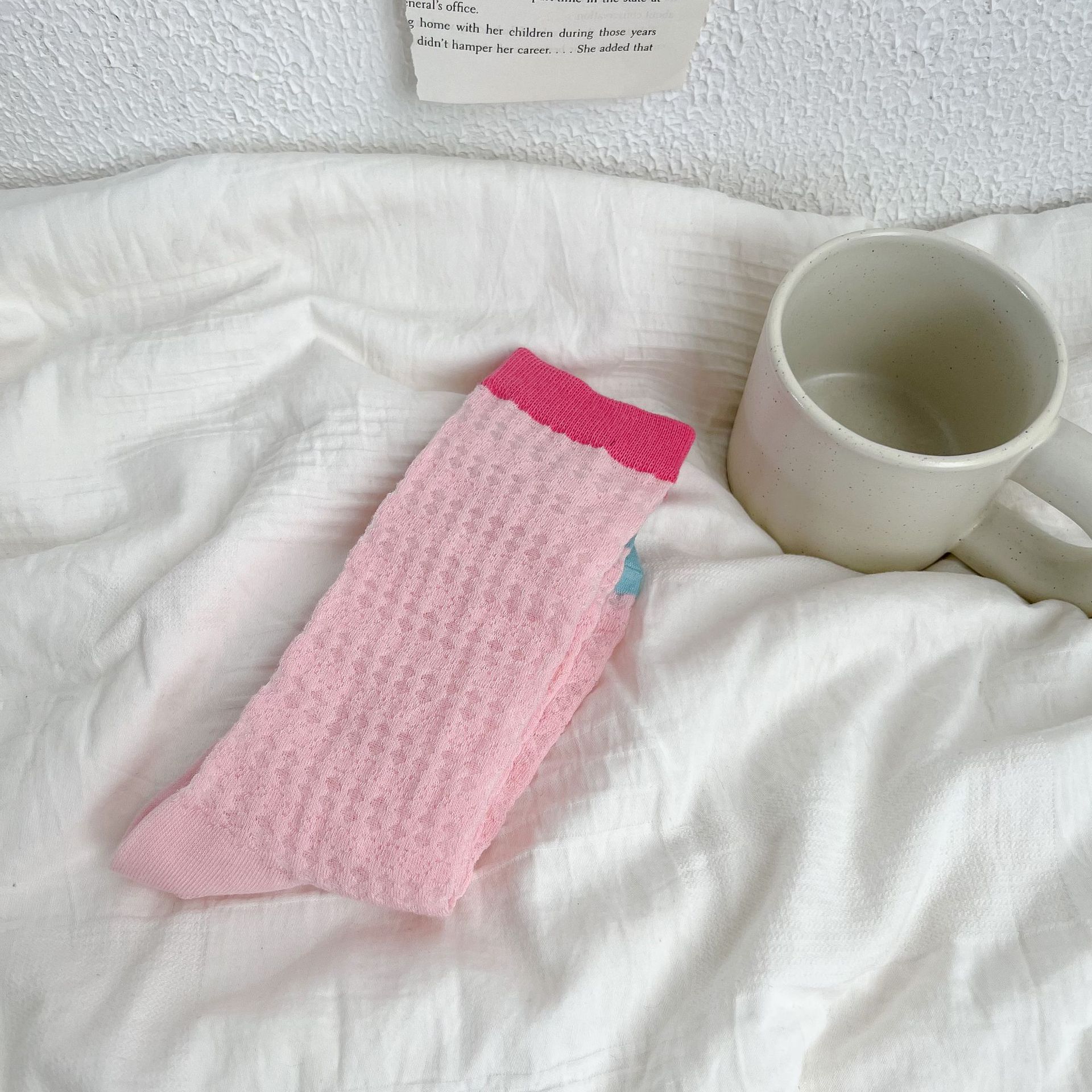 도파민 양말 여성 여름 얇은 유리 실크 통기성 메쉬 미드 튜브 양말 유행 일본 올 매치 캐주얼 여성 양말스토어 가기