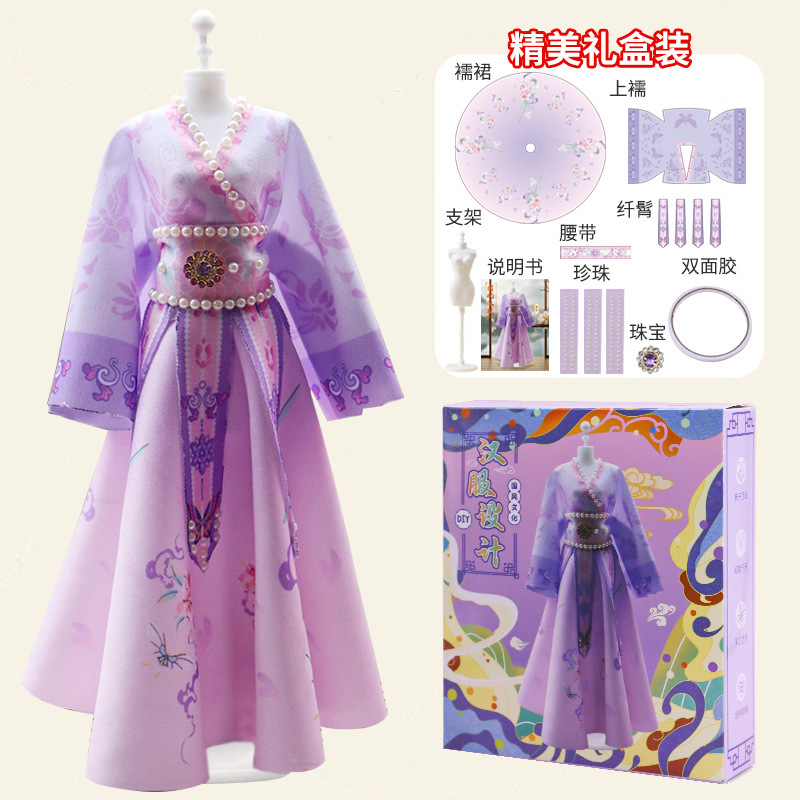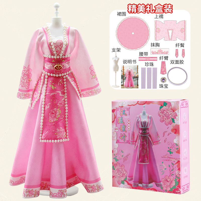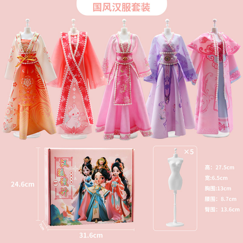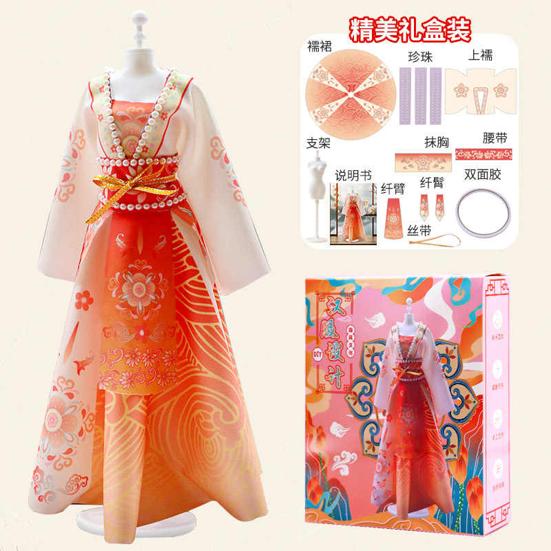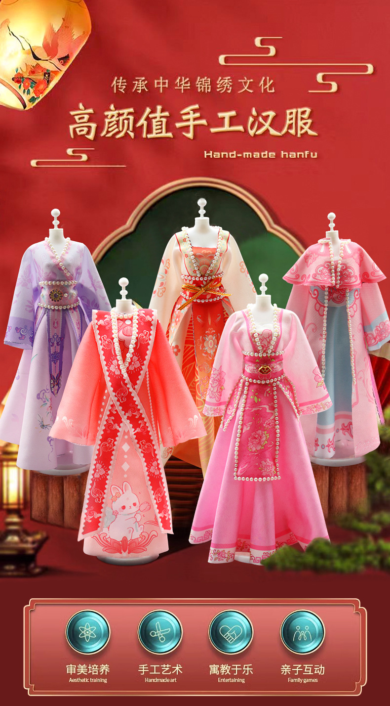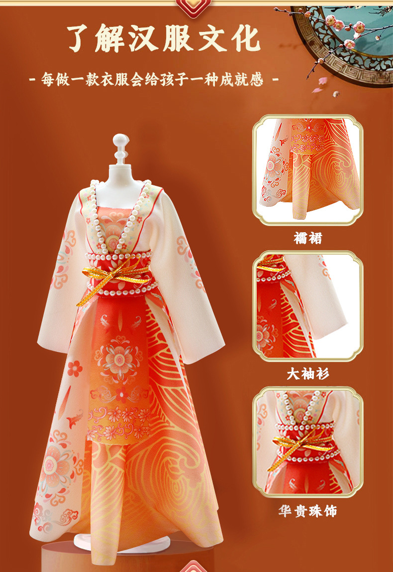 Guofeng Hanfu 수제 DIY 어린이 장난감 한푸 옷 창조적 인 생산 재료 가방 소녀 교육 장난감스토어 가기