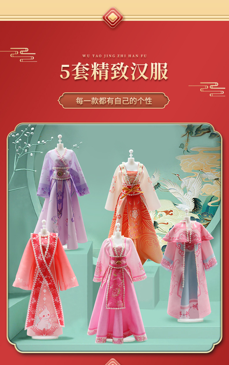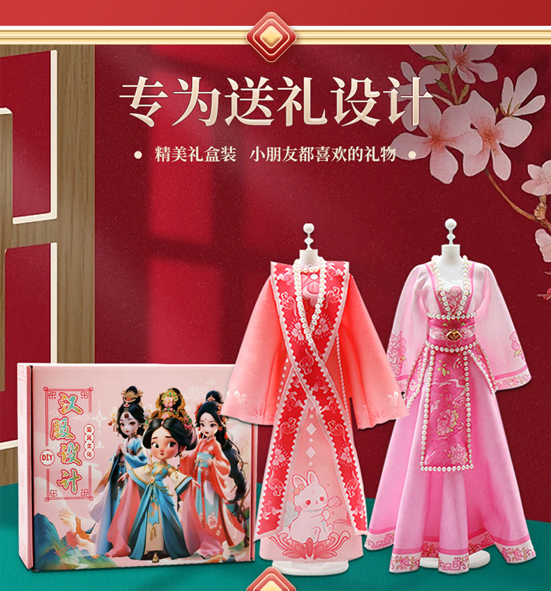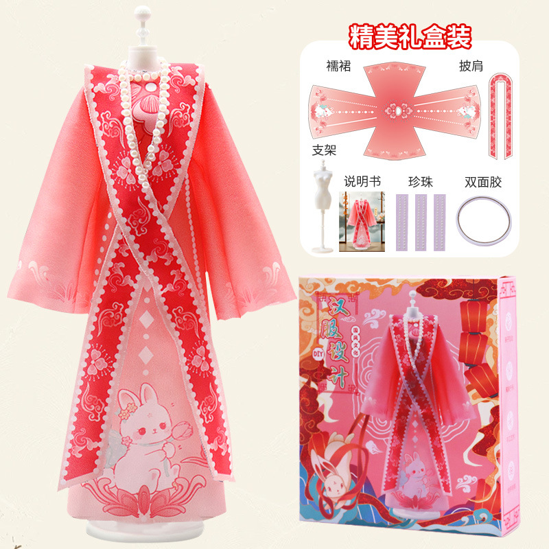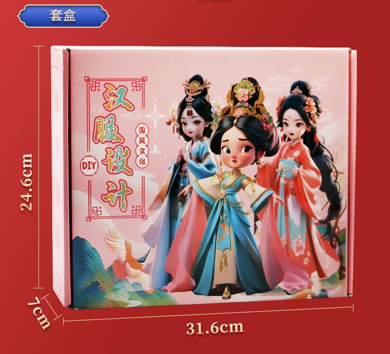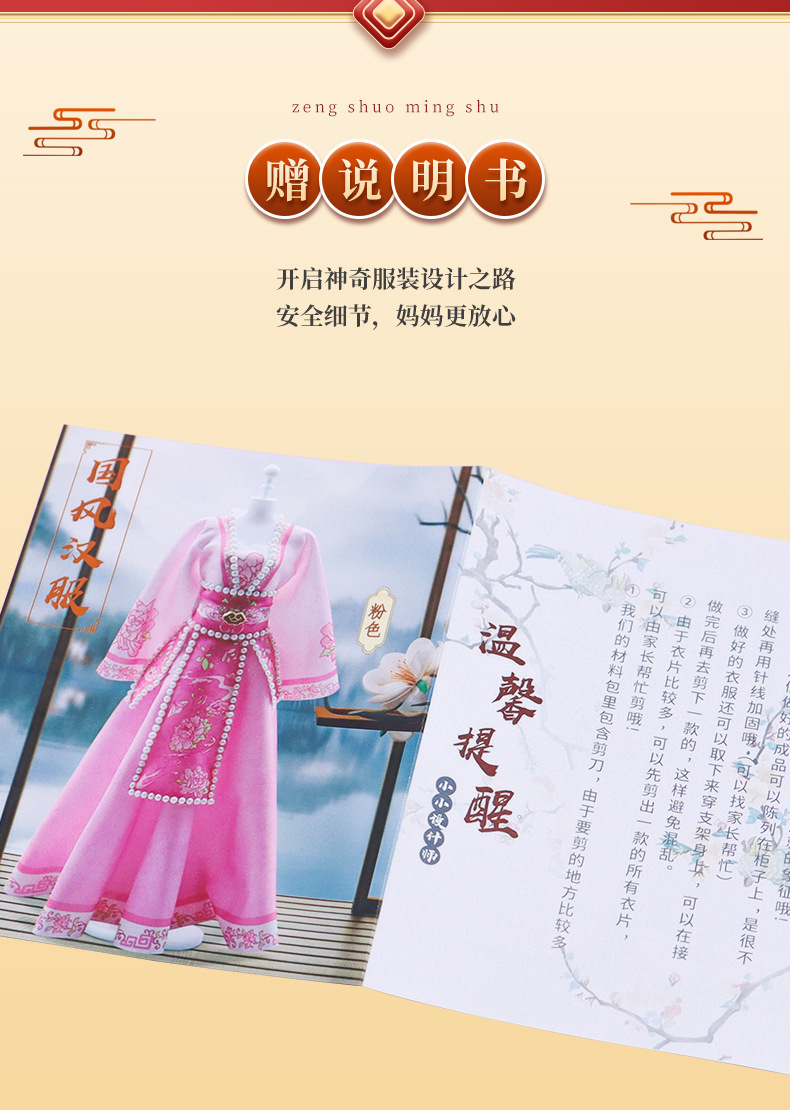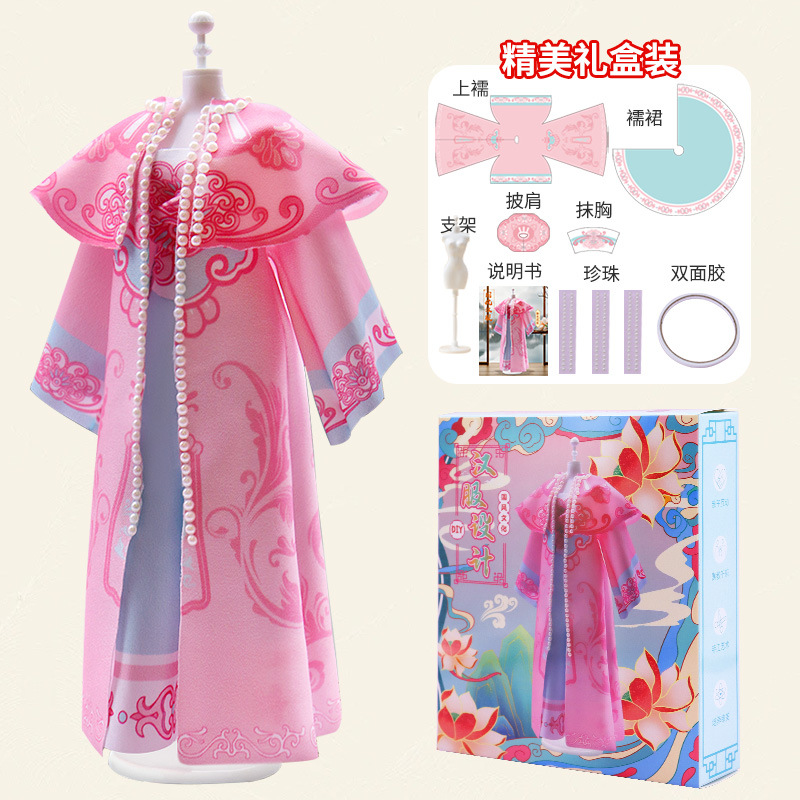 Guofeng Hanfu 수제 DIY 어린이 장난감 한푸 옷 창조적 인 생산 재료 가방 소녀 교육 장난감스토어 가기