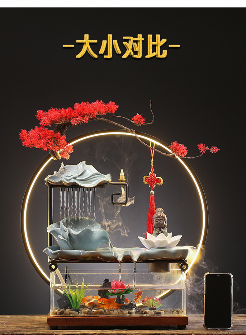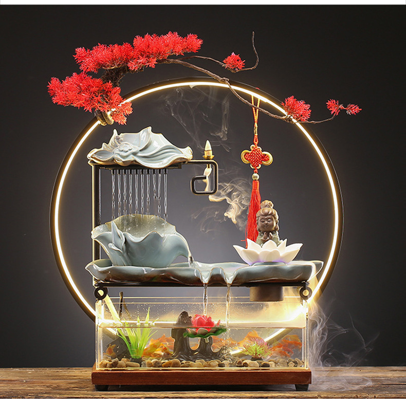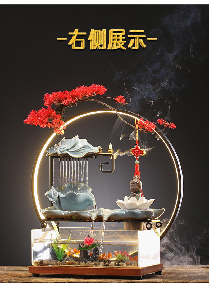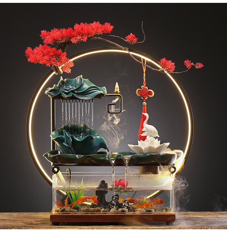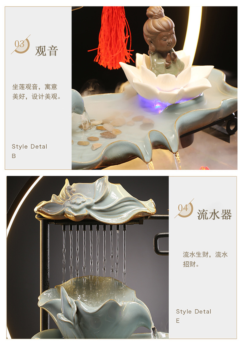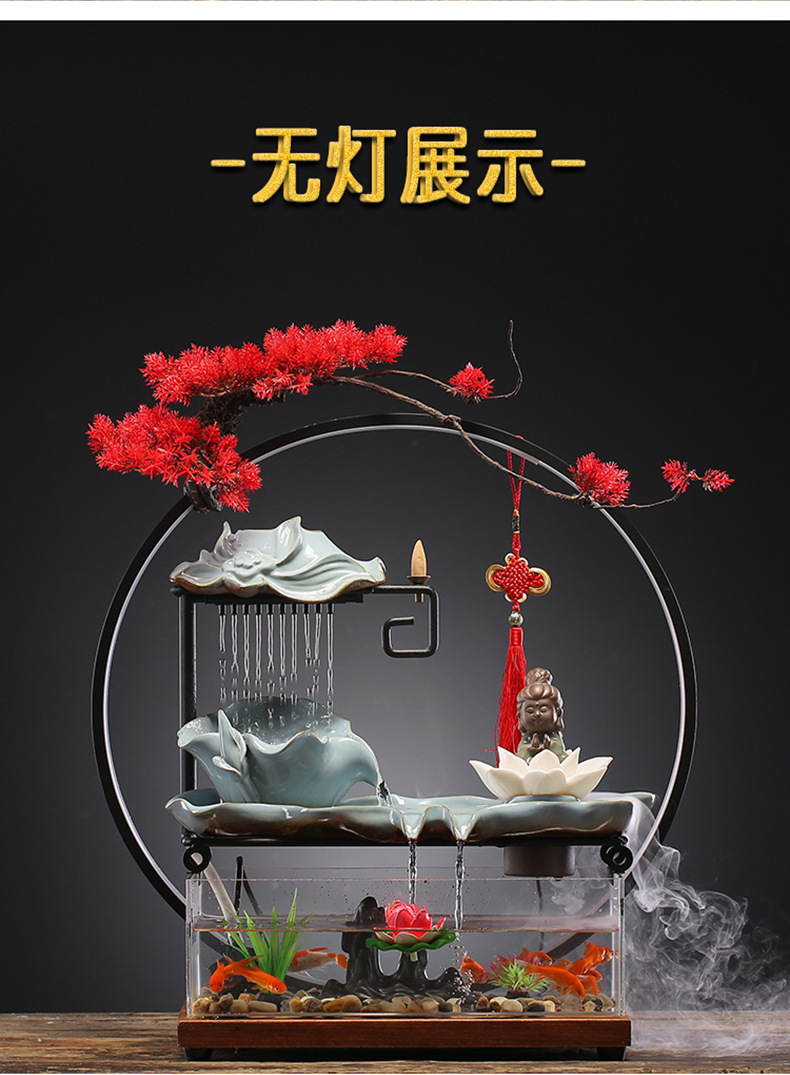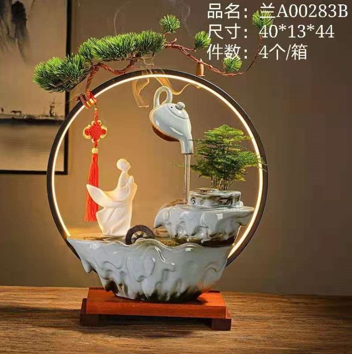 중국 스타일의 세라믹 매달린 냄비 순환 물 분수 가정용 실내 거실 물 분수 오프닝 선물