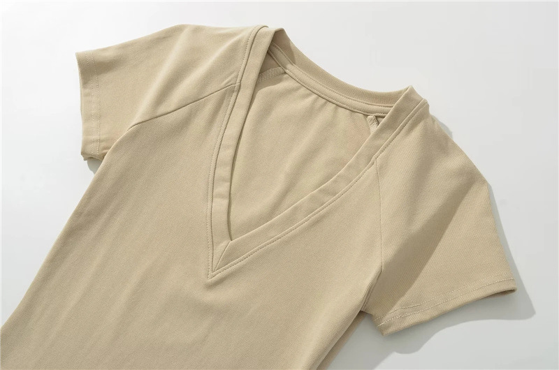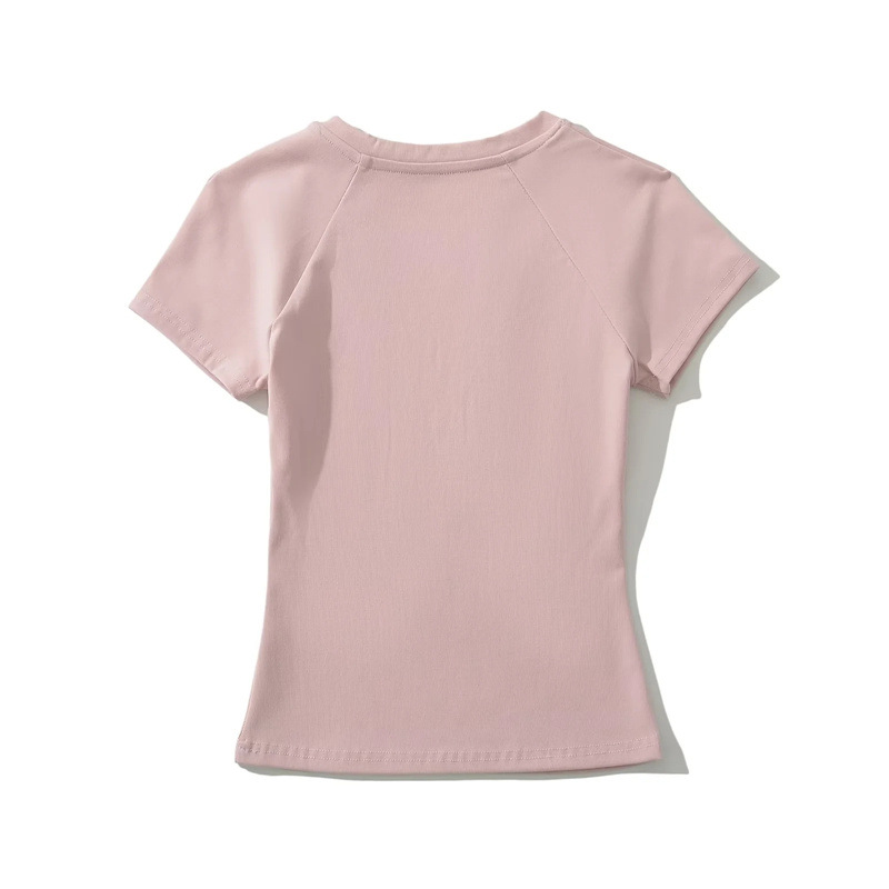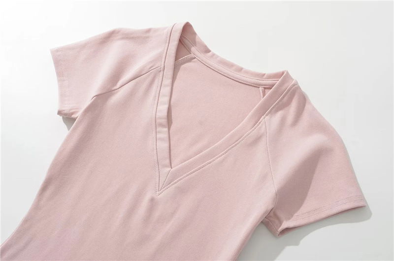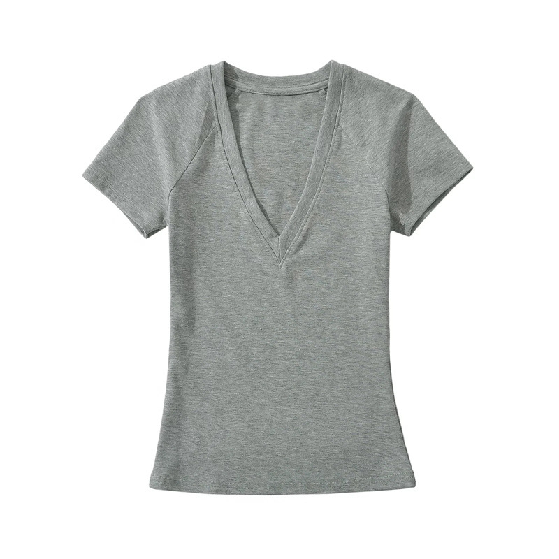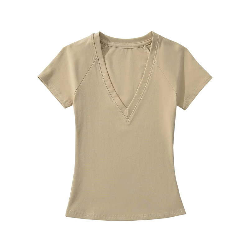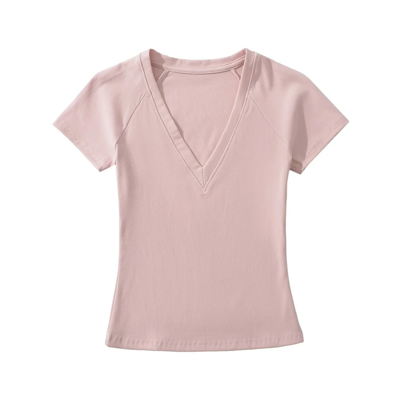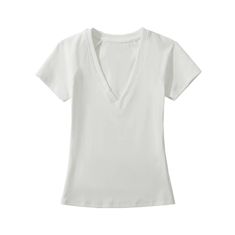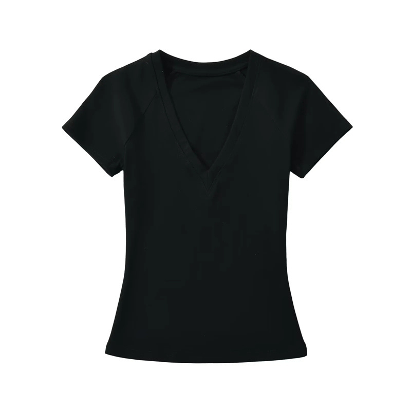 순수한 욕망 스타일 V 넥 Raglan 소매 솔리드 컬러 티셔츠 여름 새로운 간단한 올 매치 슬림 핏 슬리밍 스파이스 걸스 짧은 소매베이스 셔츠