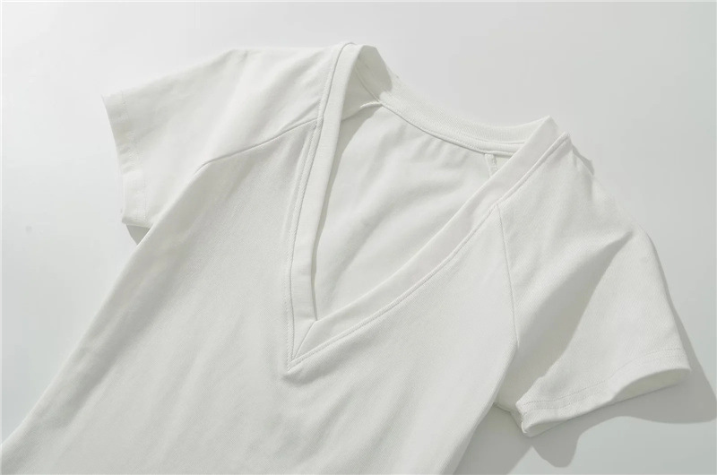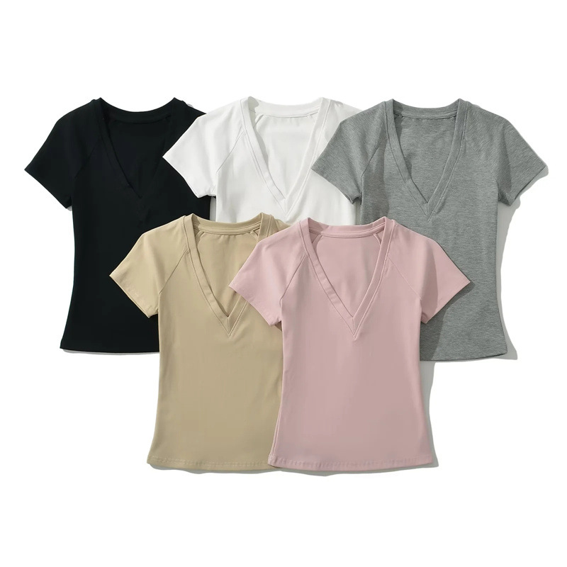 순수한 욕망 스타일 V 넥 Raglan 소매 솔리드 컬러 티셔츠 여름 새로운 간단한 올 매치 슬림 핏 슬리밍 스파이스 걸스 짧은 소매베이스 셔츠스토어 가기