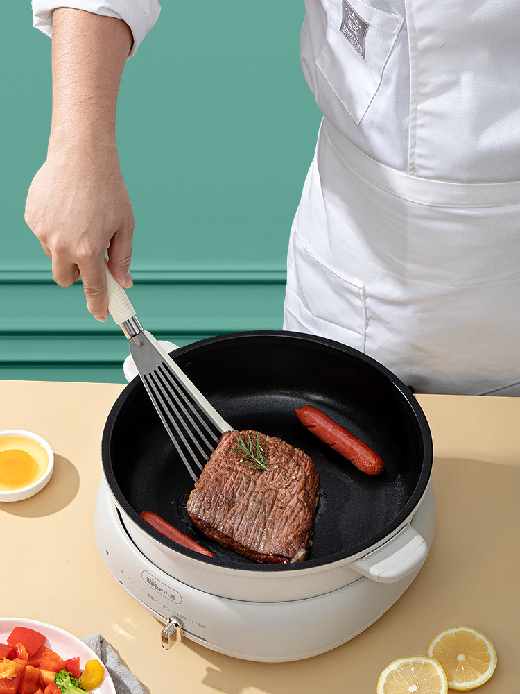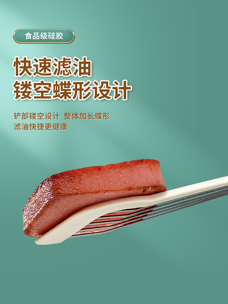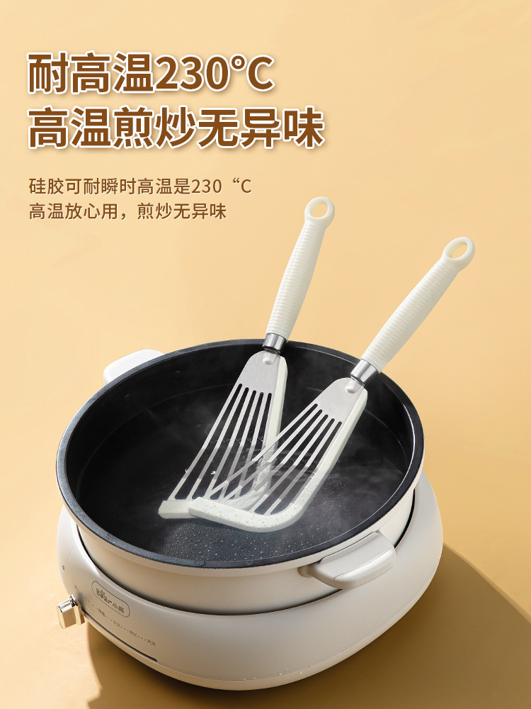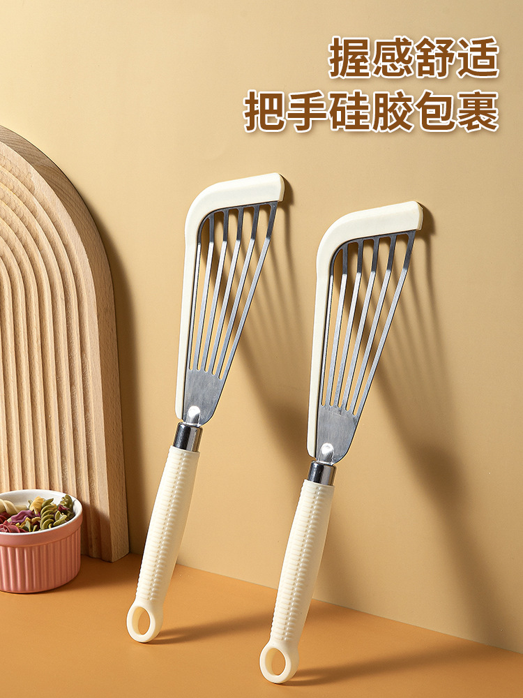 나비 유형 실리콘 삽 가정용 스테인레스 스틸 생선 튀김 삽 스테이크 튀긴 삽 튀김 방지 긴 손잡이 팬 할로우 삽에 붙기 쉽지 않음스토어 가기