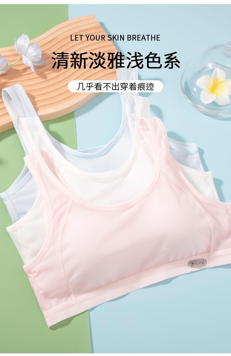 여름 얇은 곰팡이컵 작은 조끼 반대로 가벼운 포장 가슴 여성 중학생 속옷 7-12 세 발달 소녀 속옷스토어 가기