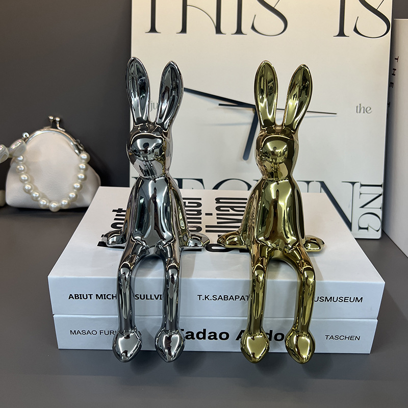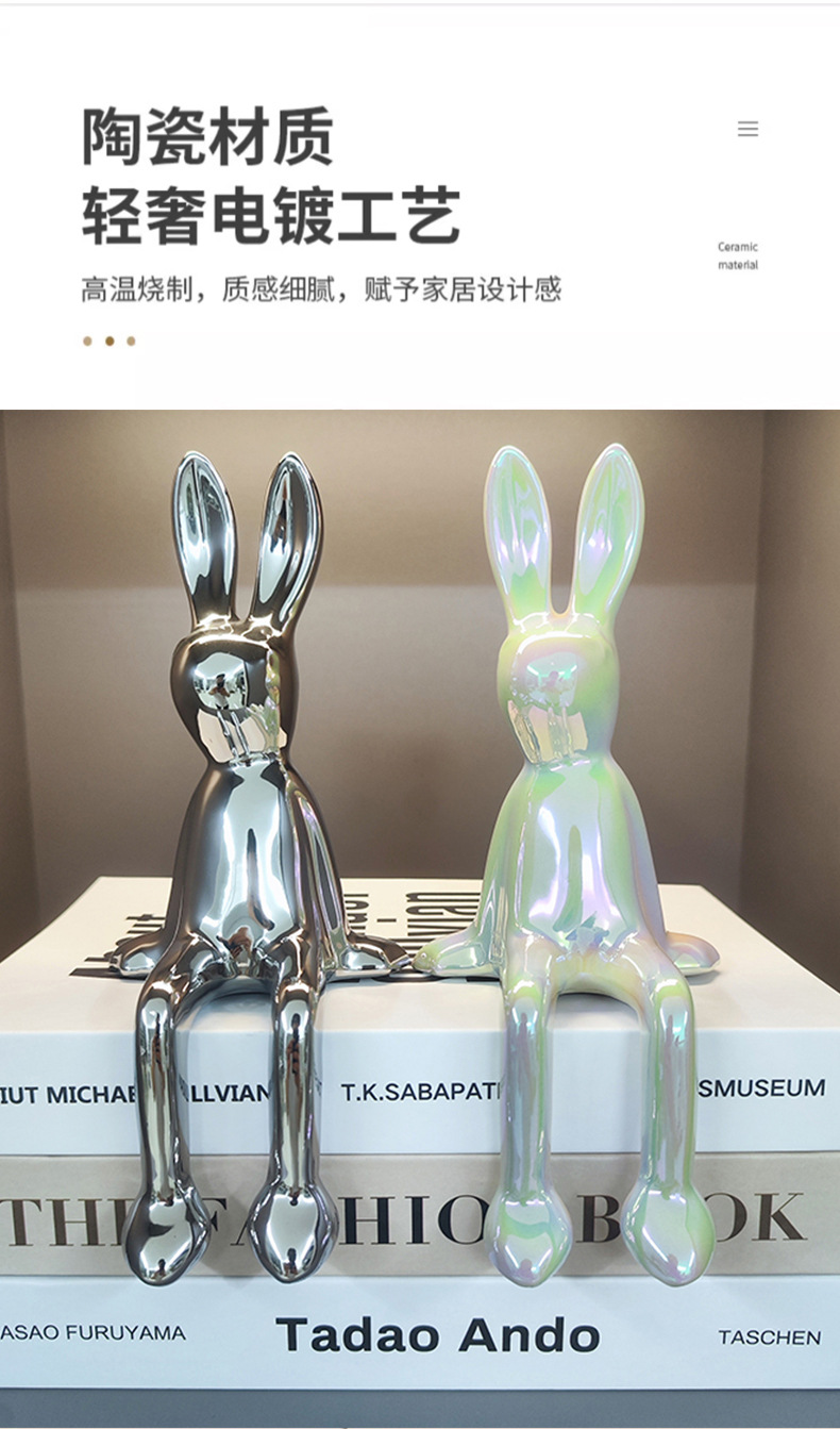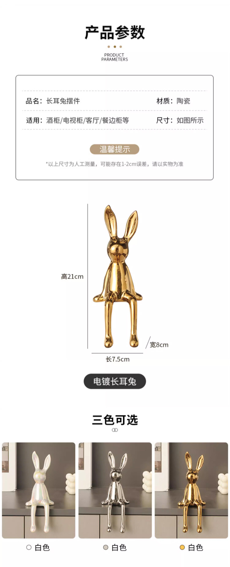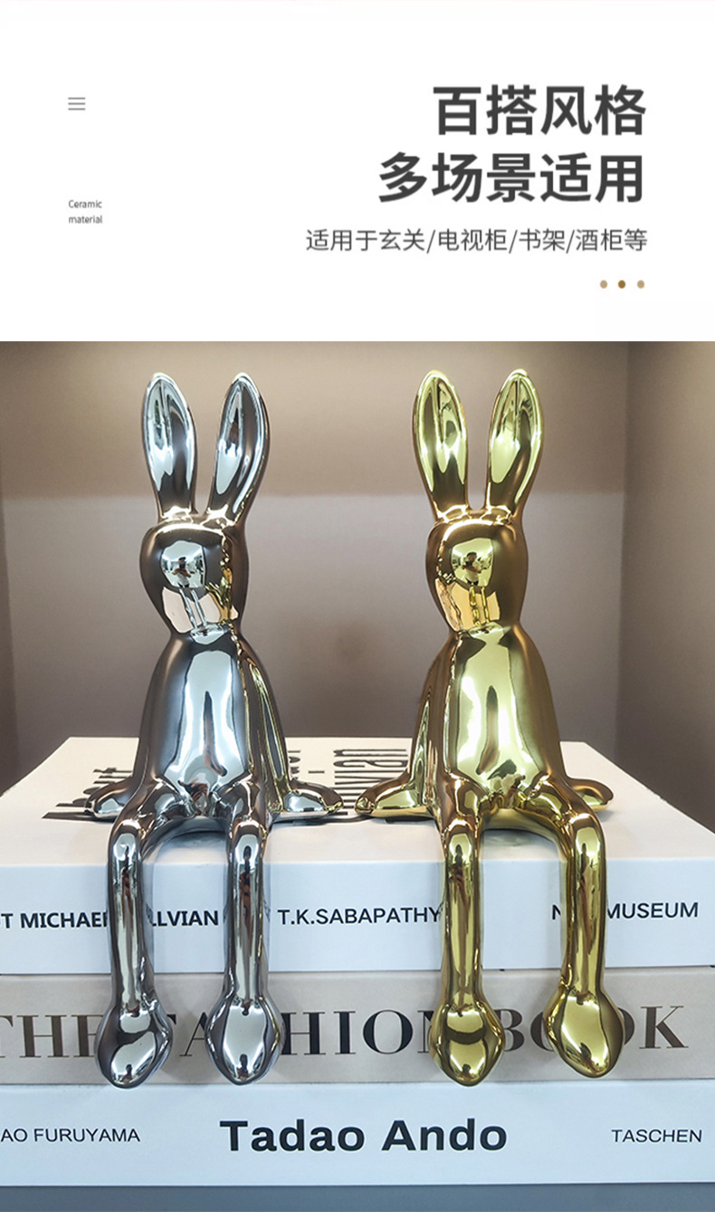 긴 귀 토끼 작은 앉아있는 자세 장식품 빛 고급 고급 고급 소프트 세트 하이 엔드 센스 홈 거실 TV 캐비닛 와인 캐비닛 장식