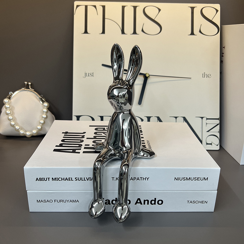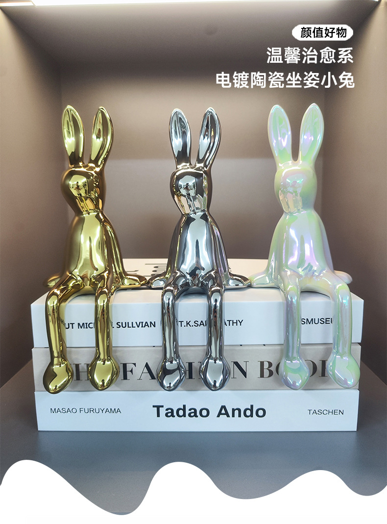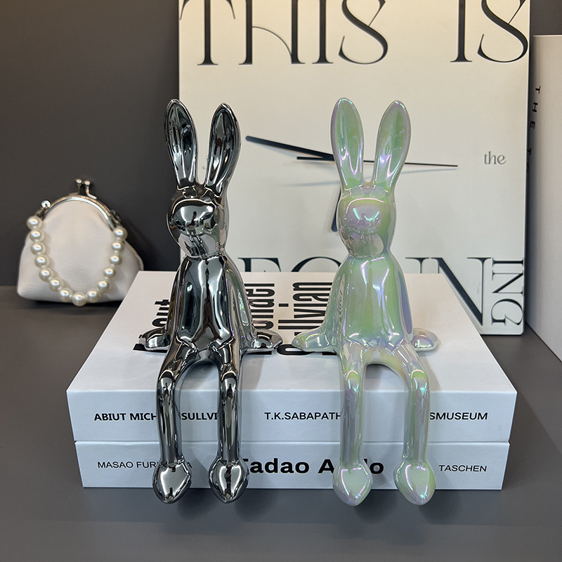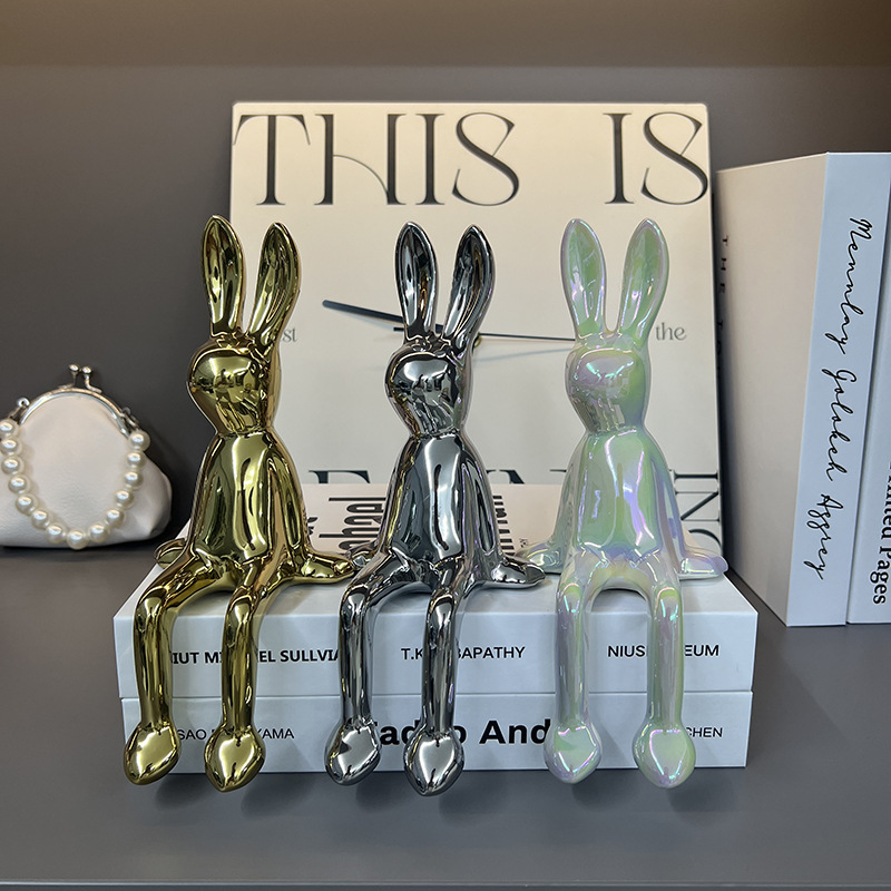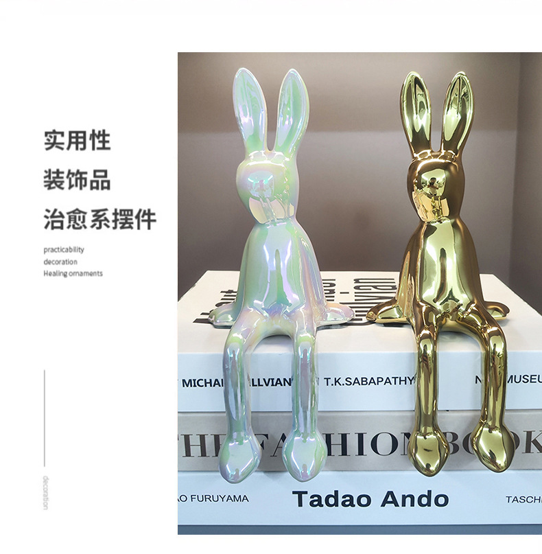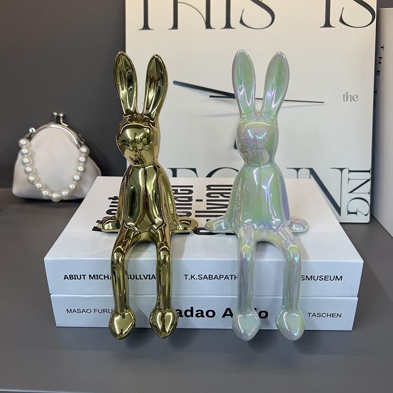 긴 귀 토끼 작은 앉아있는 자세 장식품 빛 고급 고급 고급 소프트 세트 하이 엔드 센스 홈 거실 TV 캐비닛 와인 캐비닛 장식