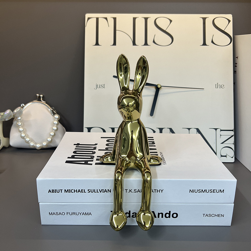 • 앉아 토끼 장식품 [금] 2 가짜 책을 보내