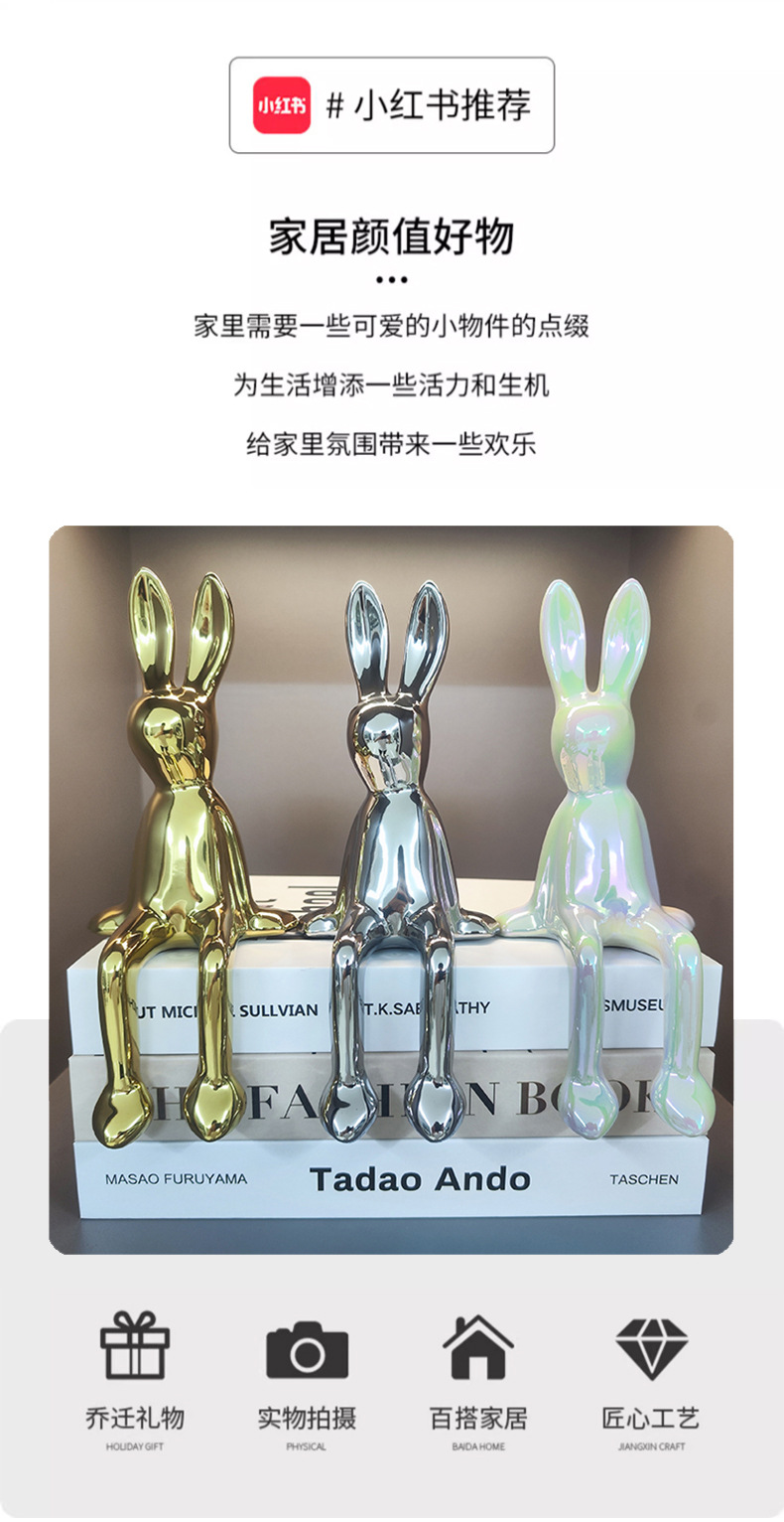 긴 귀 토끼 작은 앉아있는 자세 장식품 빛 고급 고급 고급 소프트 세트 하이 엔드 센스 홈 거실 TV 캐비닛 와인 캐비닛 장식스토어 가기