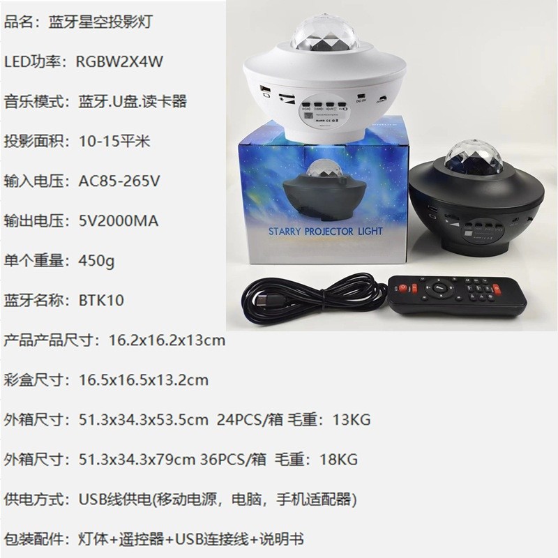 프로젝션 스타 그릇 USB 블루투스 음악 회전 리플 Gypsophila 레이저 무대 라이트 침실 분위기 야간 조명