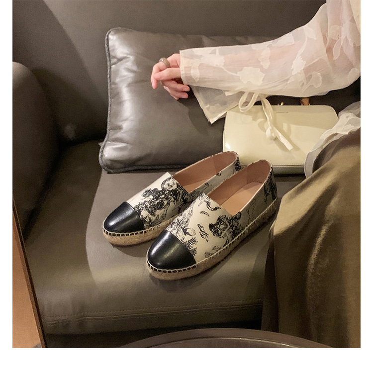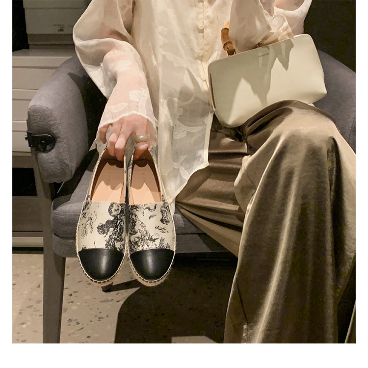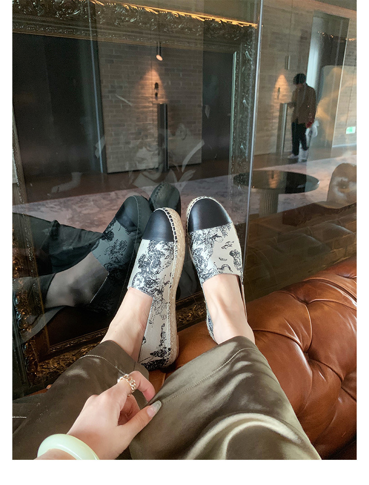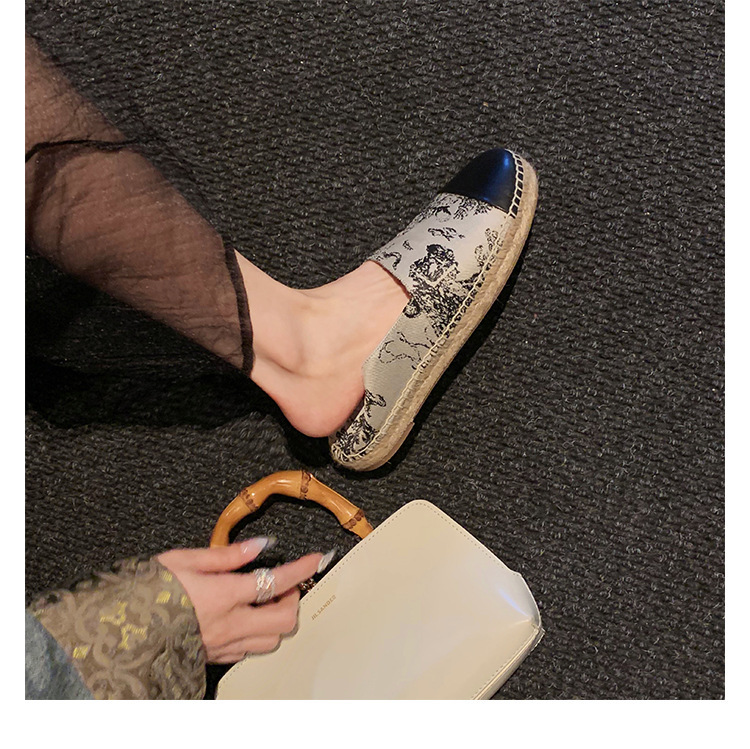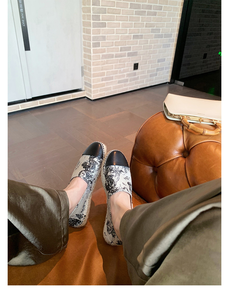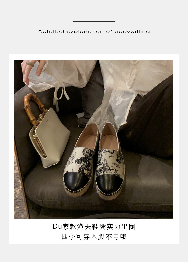 프랑스풍 캐주얼 스타일의 라운드 토 슬립온, 편안한 착용감의 편평한 밑창의 헤비플랫 피셔맨 슈즈스토어 가기