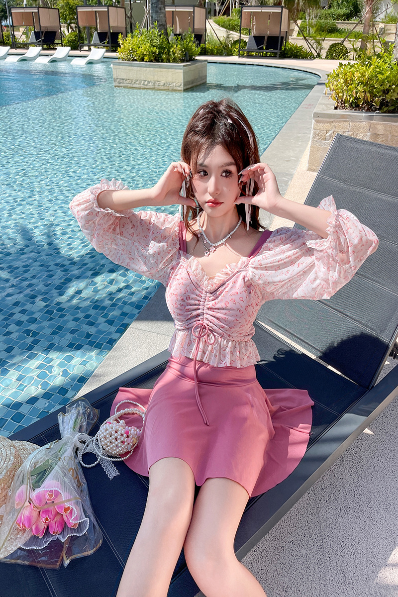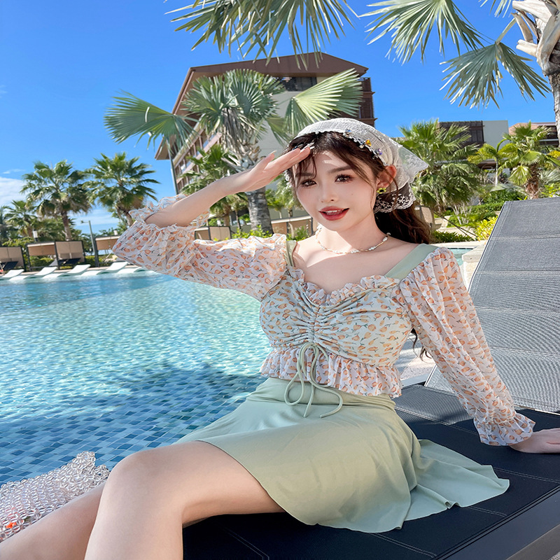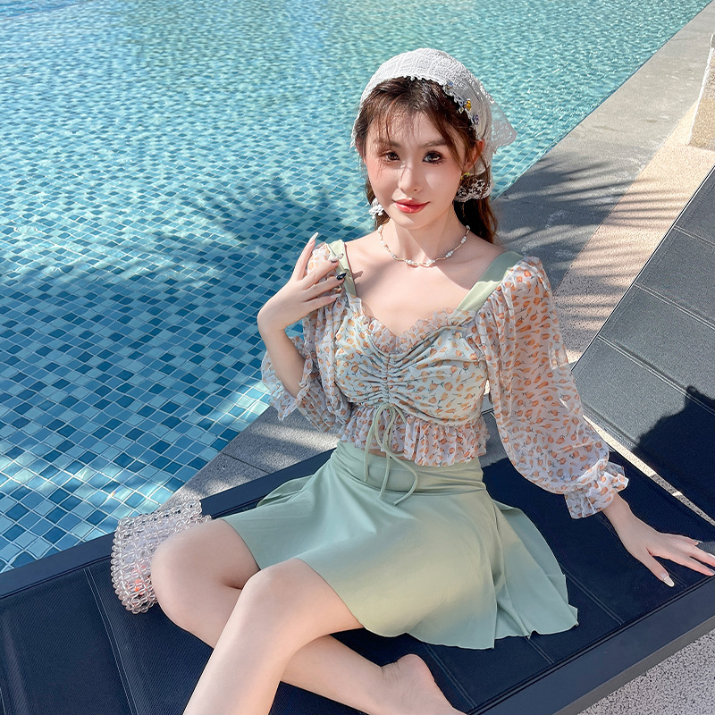 한여름 밤의 꿈 2024 새로운 수영복 여성 스플릿 투피스 세트 보수적 슬림 배꼽 덮개 스커트 수영복