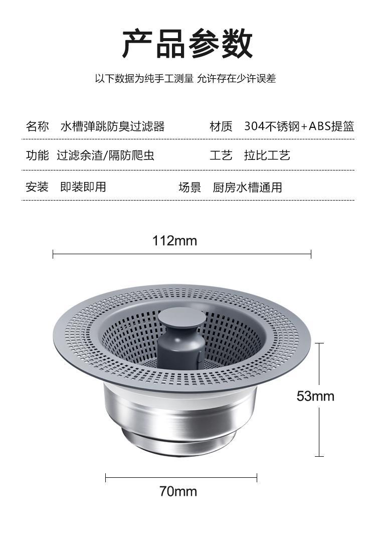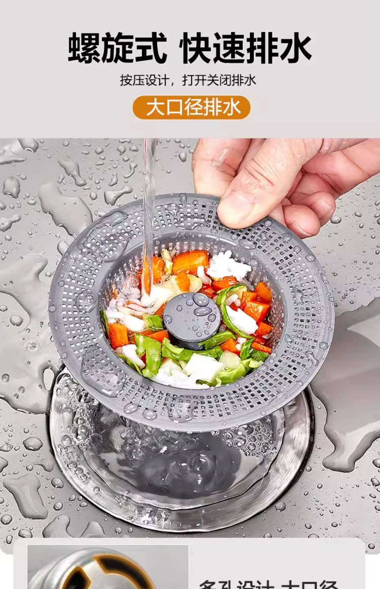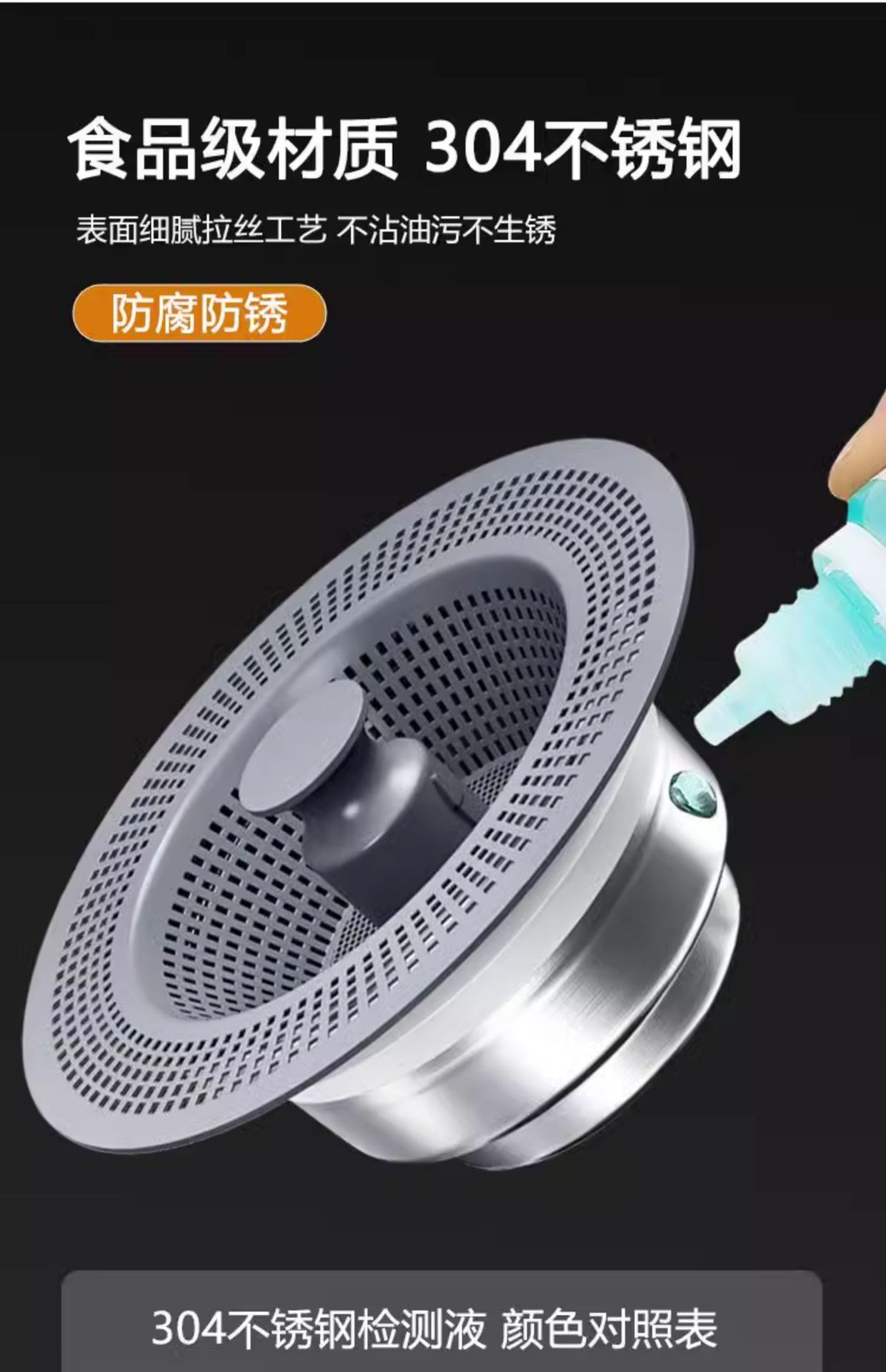 스테인레스 스틸 주방 싱크 필터 스크린 튀는 코어 필터 싱크 싱크 유니버설 프레스 형 야채 분지 누출 플러그