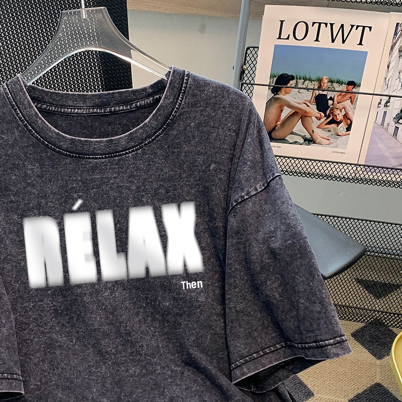 미국 스타일의 레트로 남성과 여성을위한 오래된 코튼 반팔 티셔츠 뚱뚱한 소녀 거리 전국 트렌디 인 루즈 탑 여름 인쇄스토어 가기