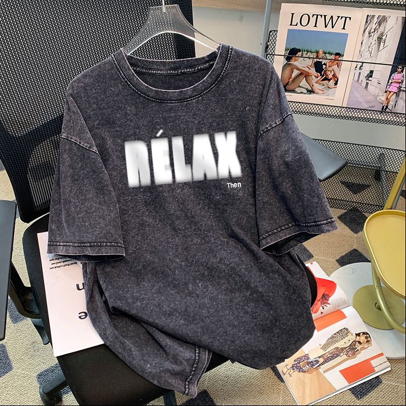 미국 스타일의 레트로 남성과 여성을위한 오래된 코튼 반팔 티셔츠 뚱뚱한 소녀 거리 전국 트렌디 인 루즈 탑 여름 인쇄
