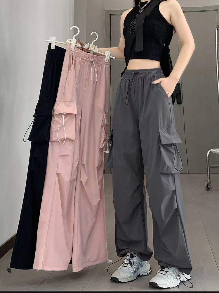 [공식 피겨] 바지 여성 2024 새로운 충전 넓은 다리 바지 여름 얇은 등산 바지