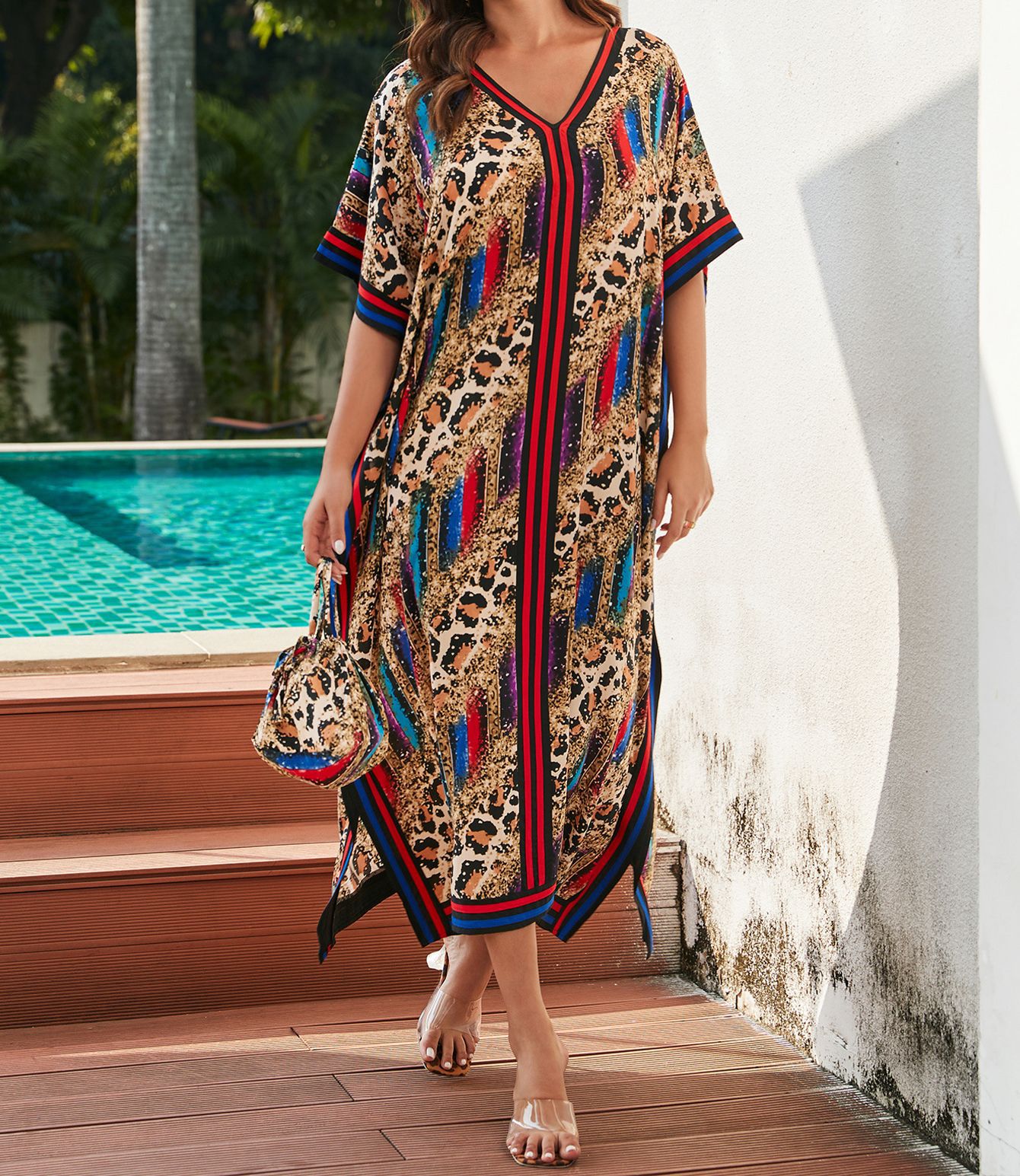 해변 블라우스 긴 느슨한 면화 인쇄 핸드백을 가진 긴 원피스 국경 아마존 원피스 큰 크기
