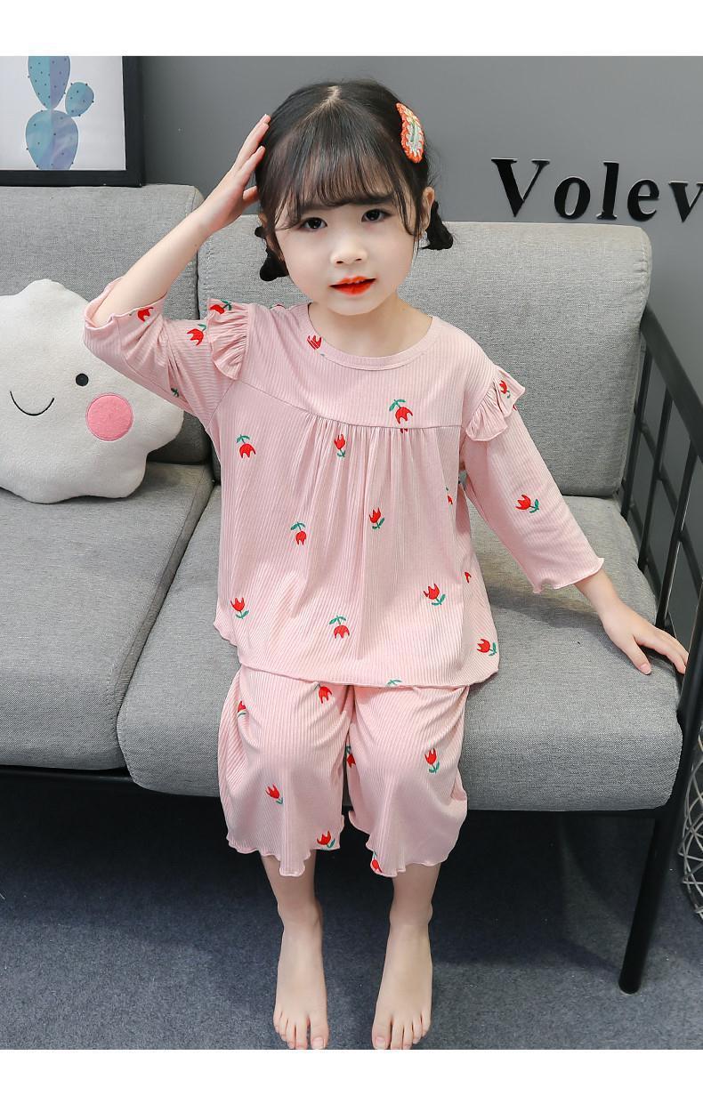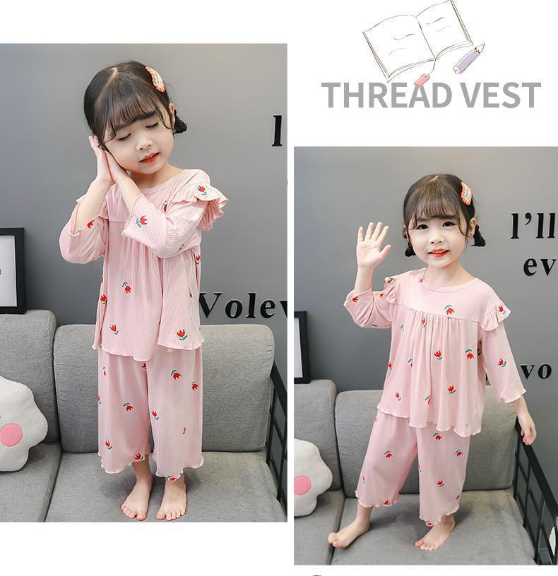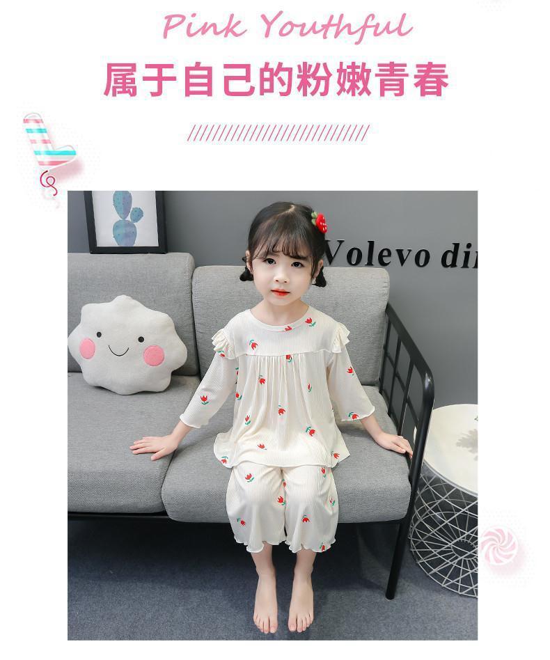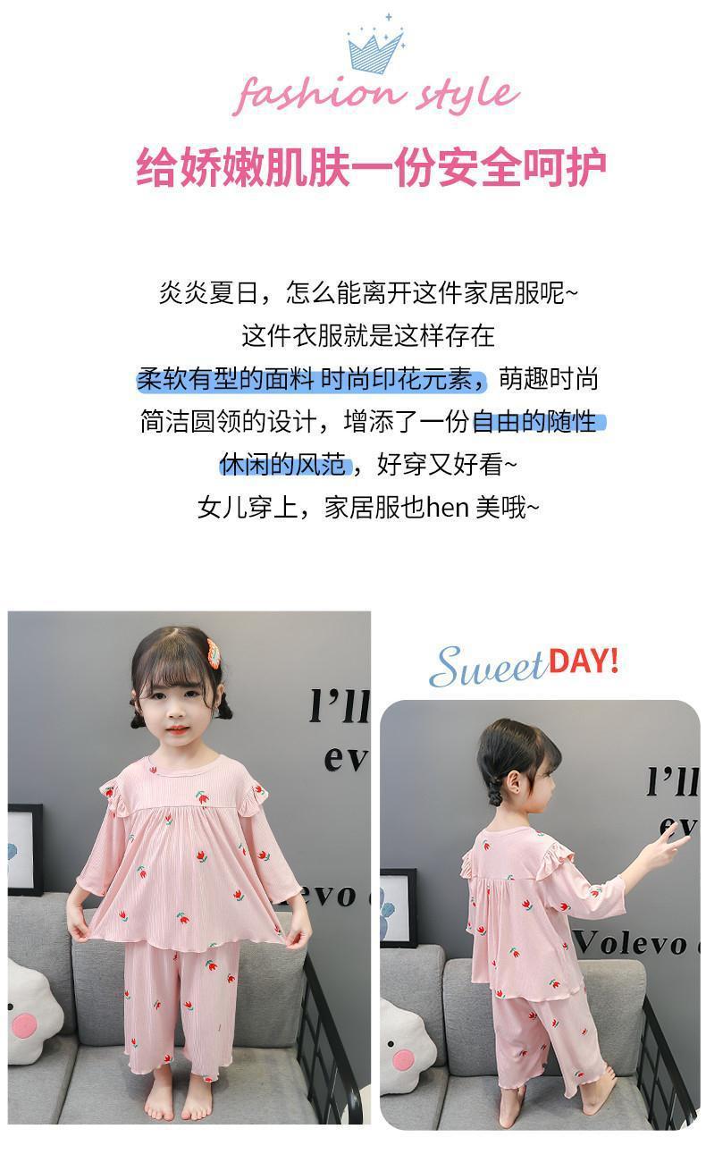 어린이 여름 아이스 실크 소매 잠옷 아기 소녀의 에어컨 옷 귀여운 공주 소녀의 얇은 홈 옷 세트