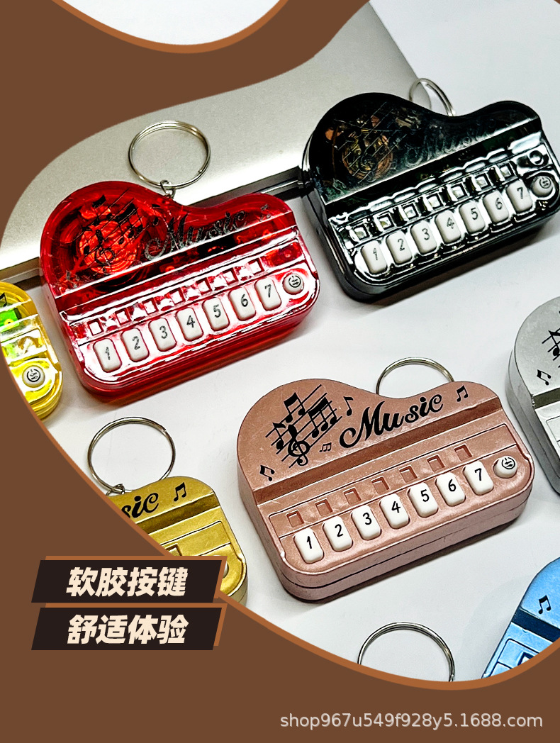 TikTok 미니 포켓 피아노 어린이 전자 오르간 높은 색상 가치 키 체인 펜던트는 빛나는 창조적 인 장난감을 재생할 수 있습니다