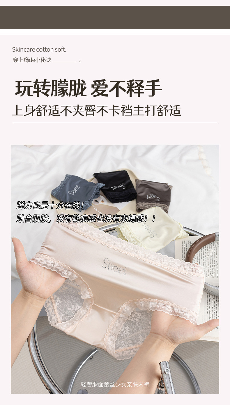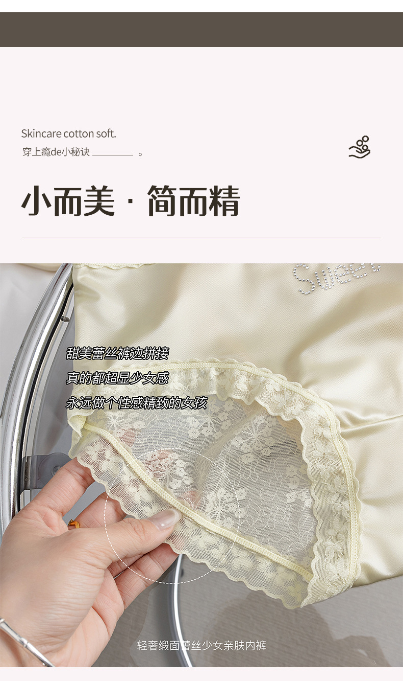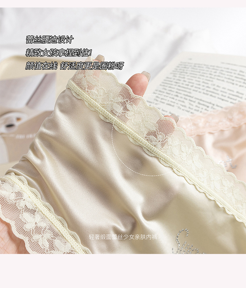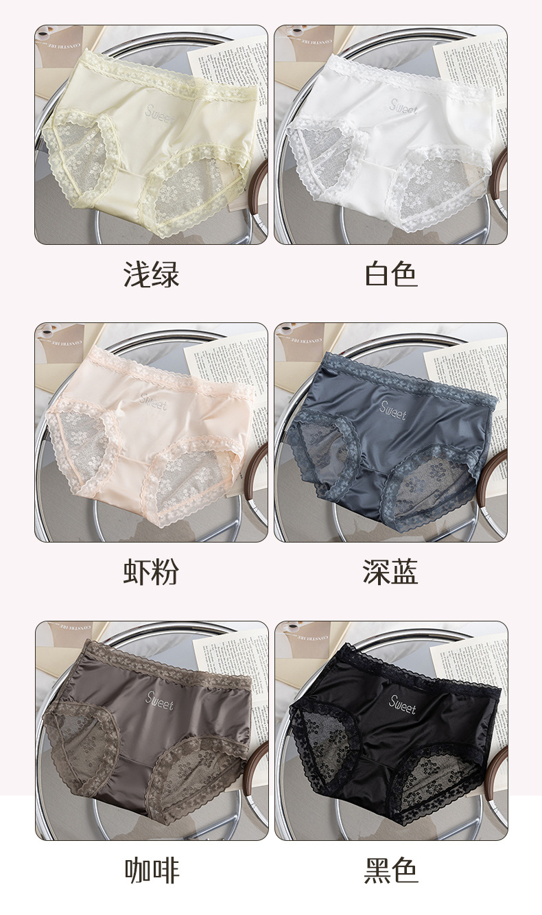 프랑스 새틴 팬티 여성 레이스 중반 허리 여름 얇은 소녀의 섹시한 순수한 얼음 실크 흔적스토어 가기