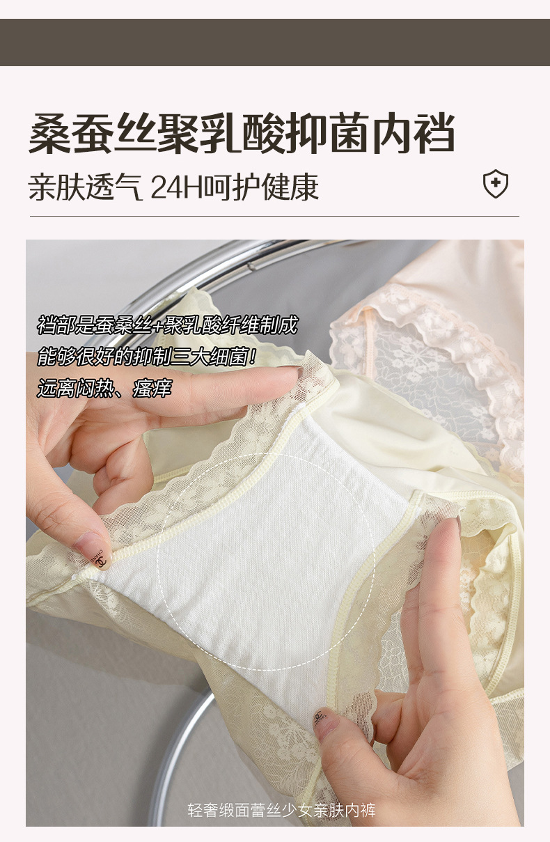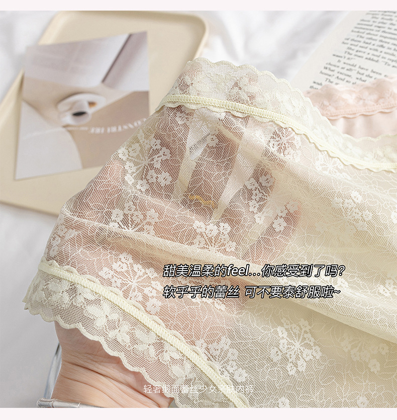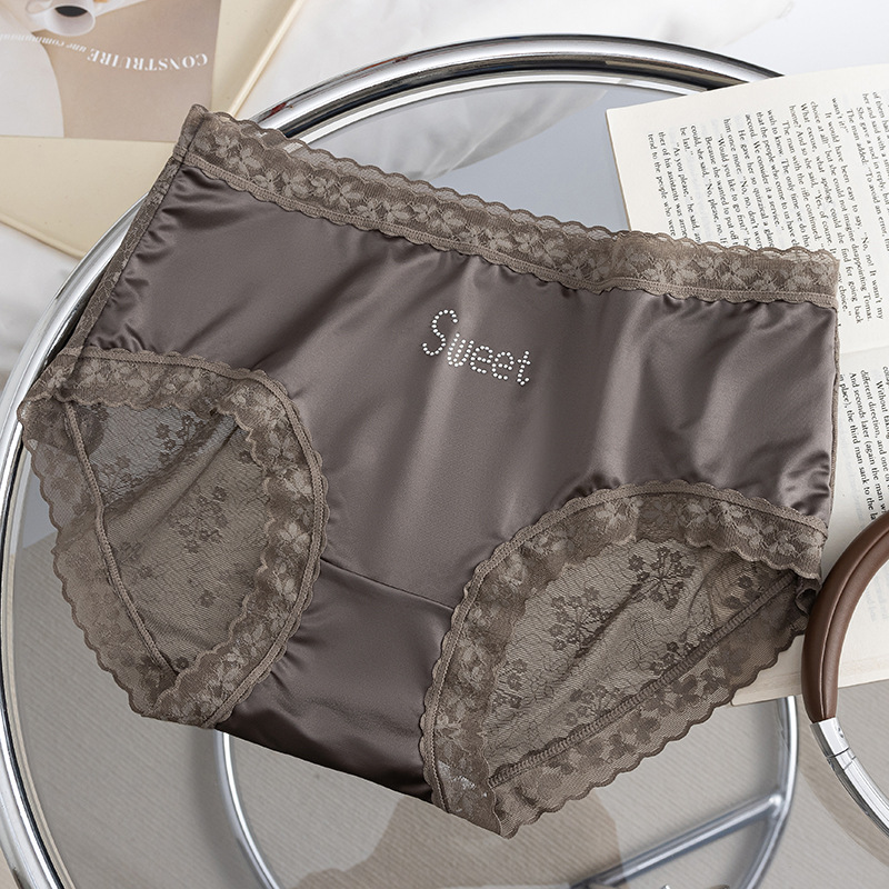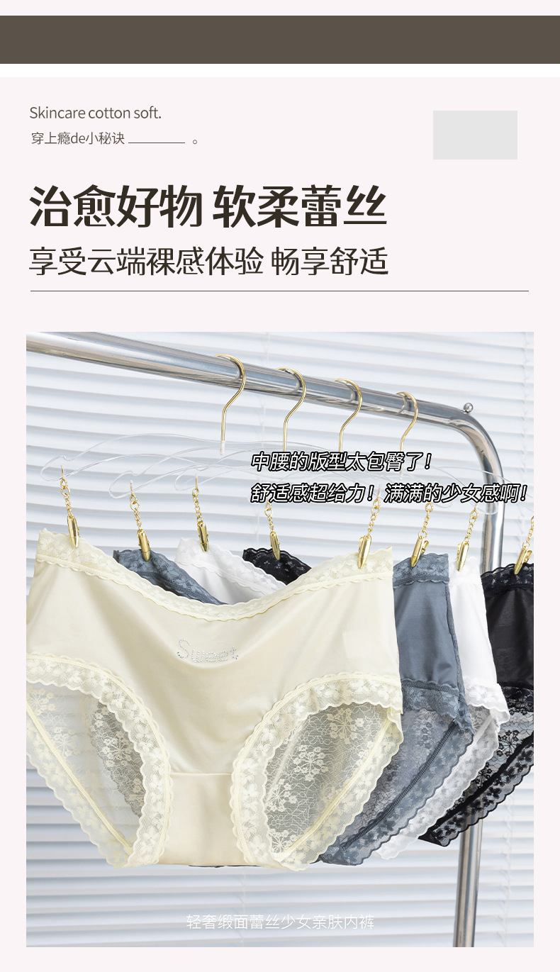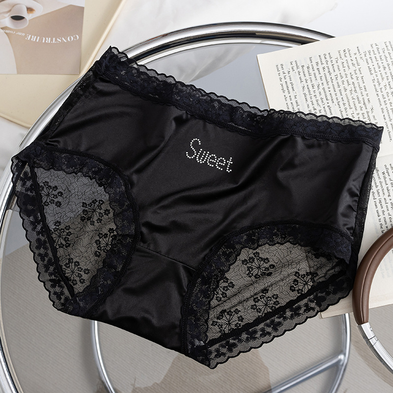 프랑스 새틴 팬티 여성 레이스 중반 허리 여름 얇은 소녀의 섹시한 순수한 얼음 실크 흔적스토어 가기