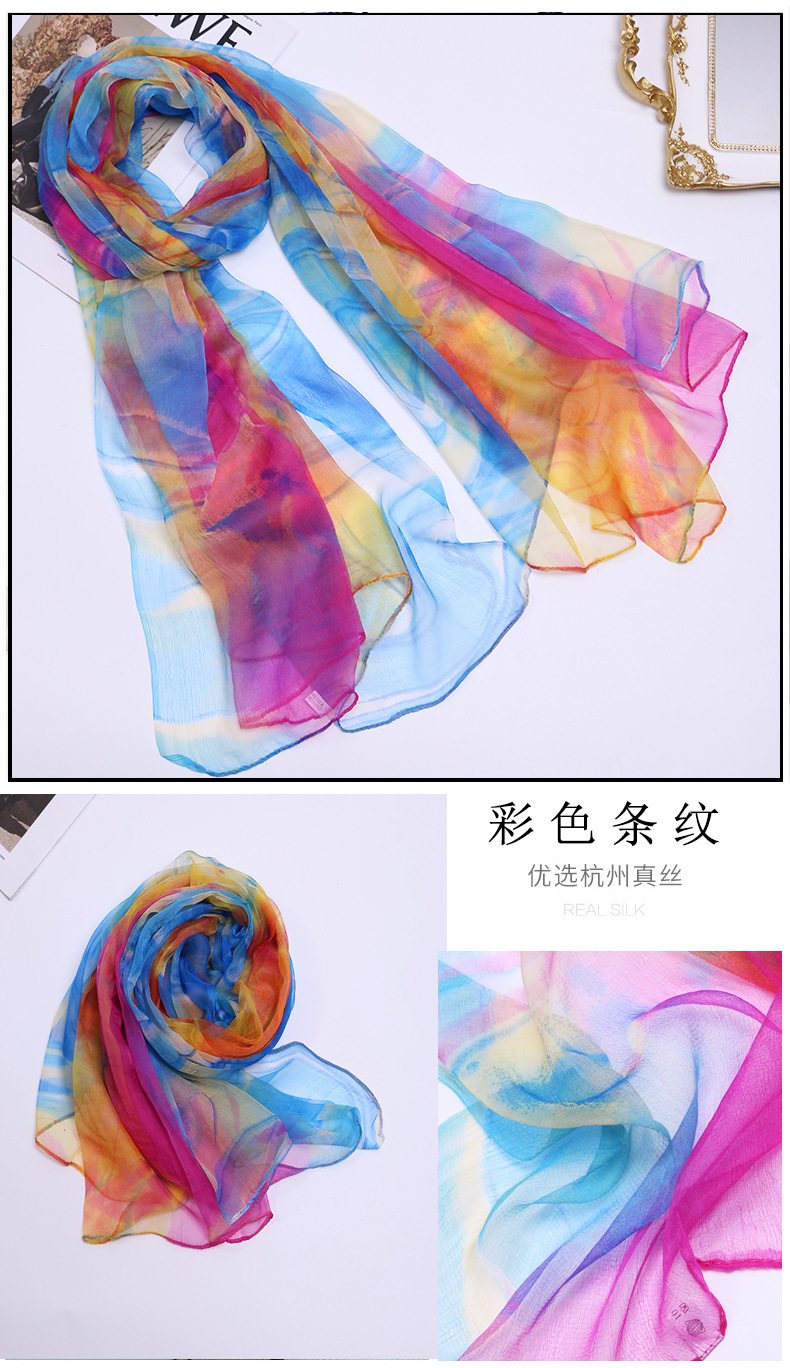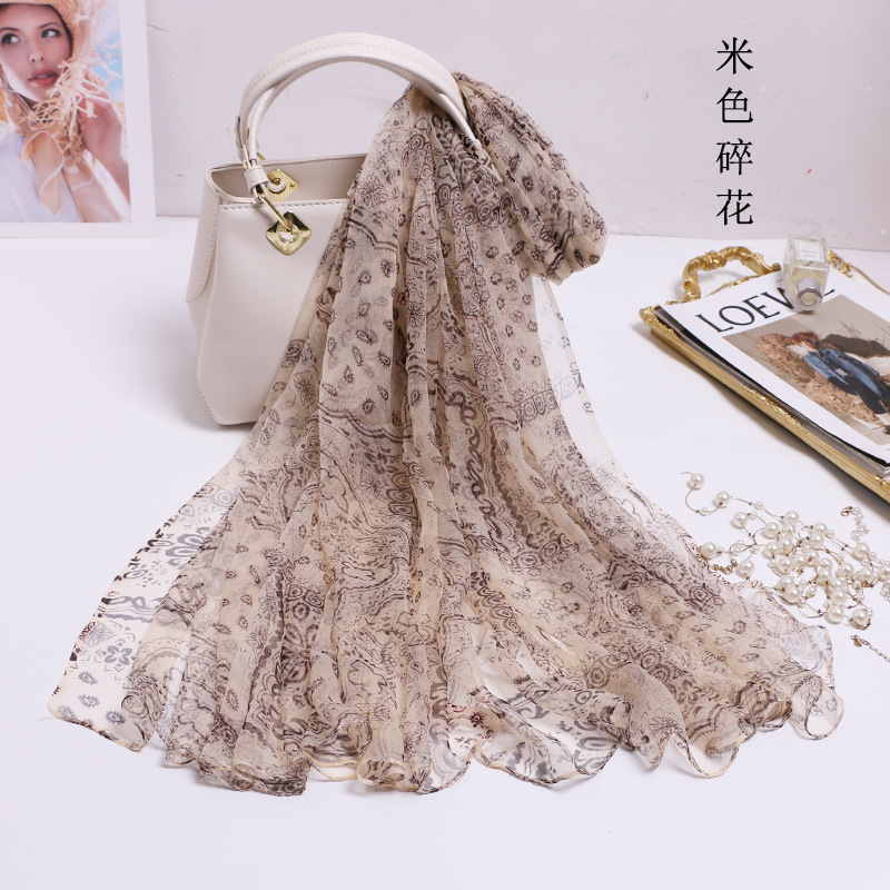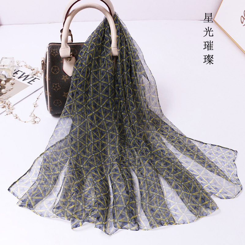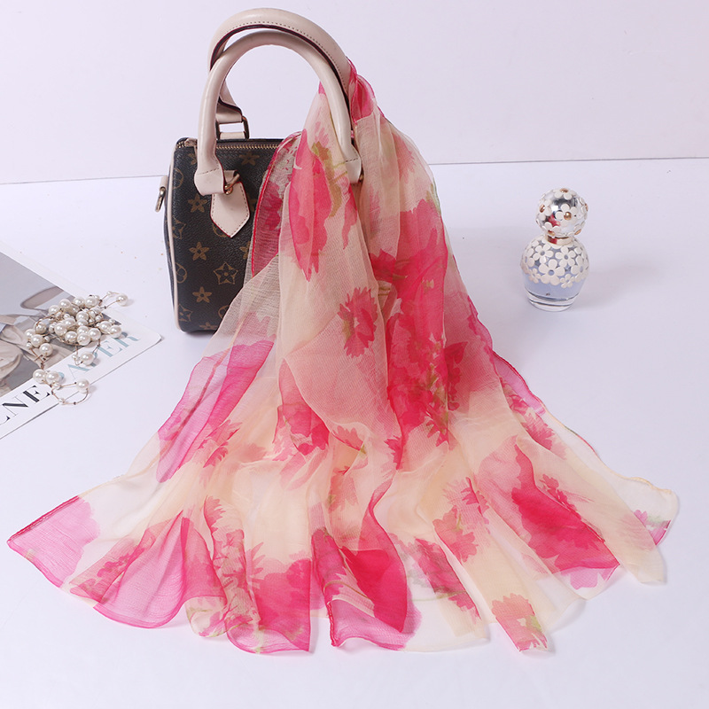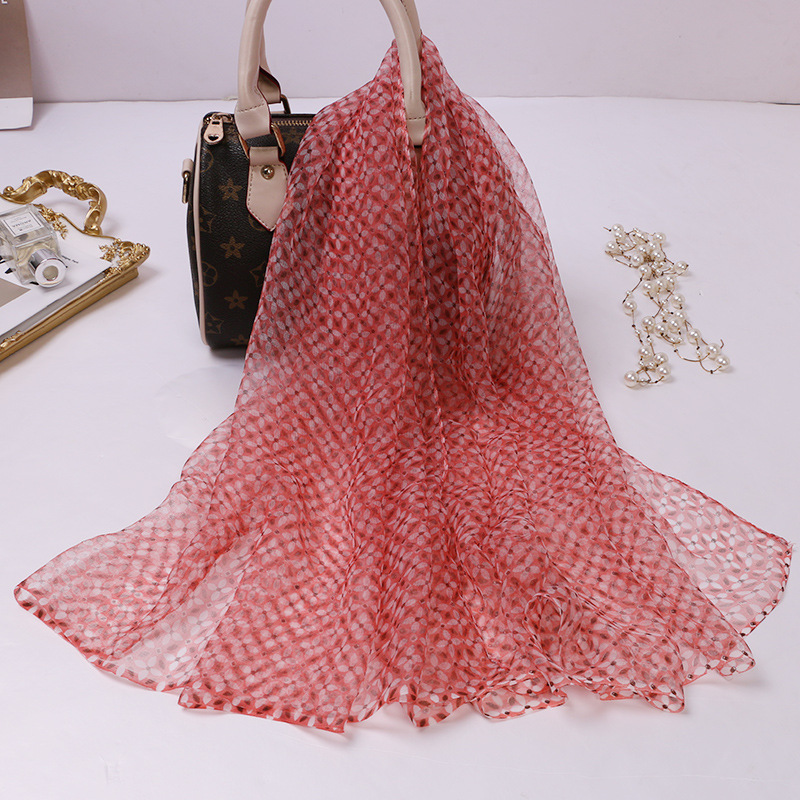 2024 여름 새로운 초박형 실크 동풍 원사 인쇄 여성의 선 스크린 긴 목도리 제조 업체 현장 도매