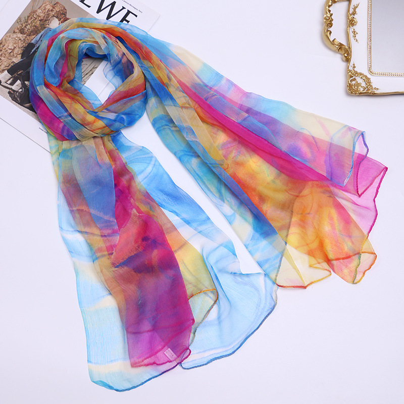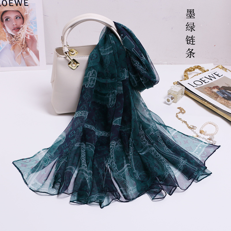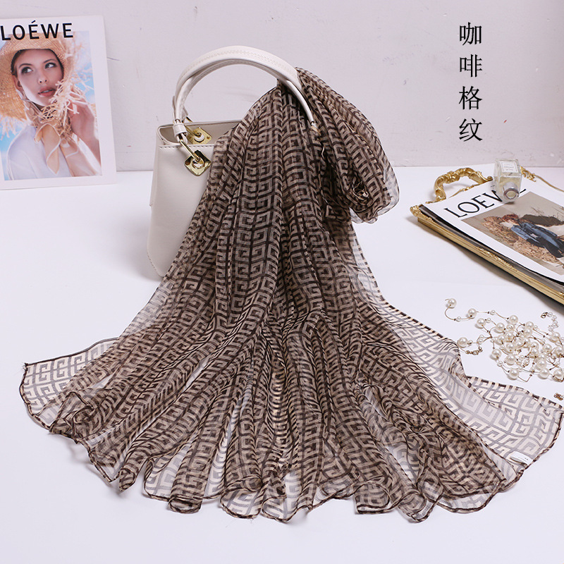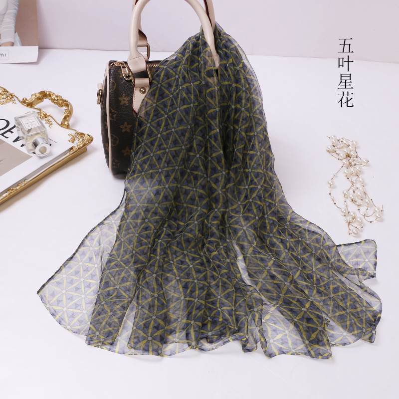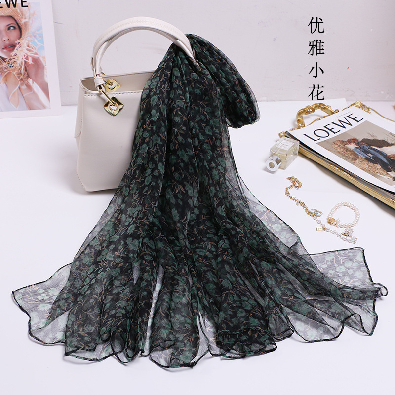 2024 여름 새로운 초박형 실크 동풍 원사 인쇄 여성의 선 스크린 긴 목도리 제조 업체 현장 도매스토어 가기