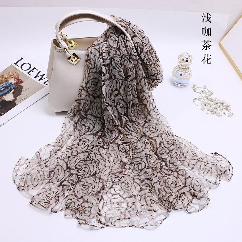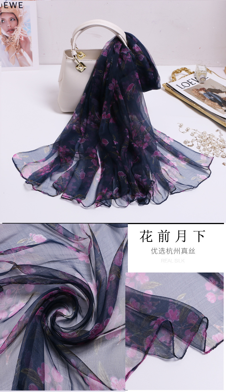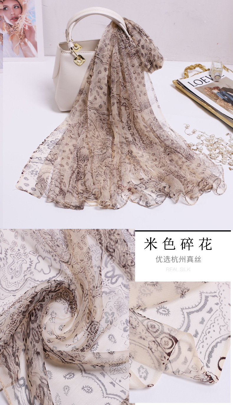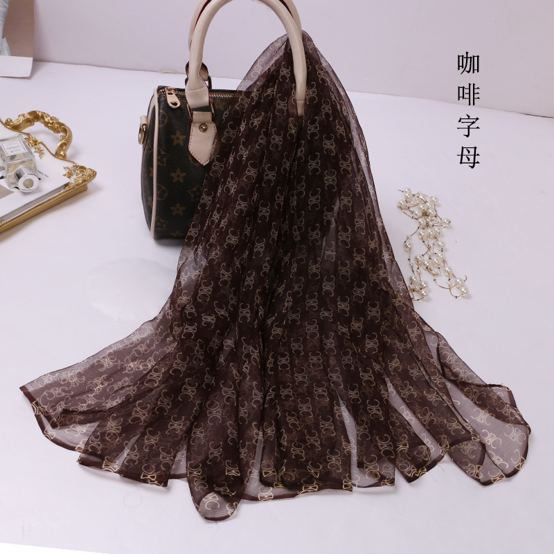2024 여름 새로운 초박형 실크 동풍 원사 인쇄 여성의 선 스크린 긴 목도리 제조 업체 현장 도매스토어 가기