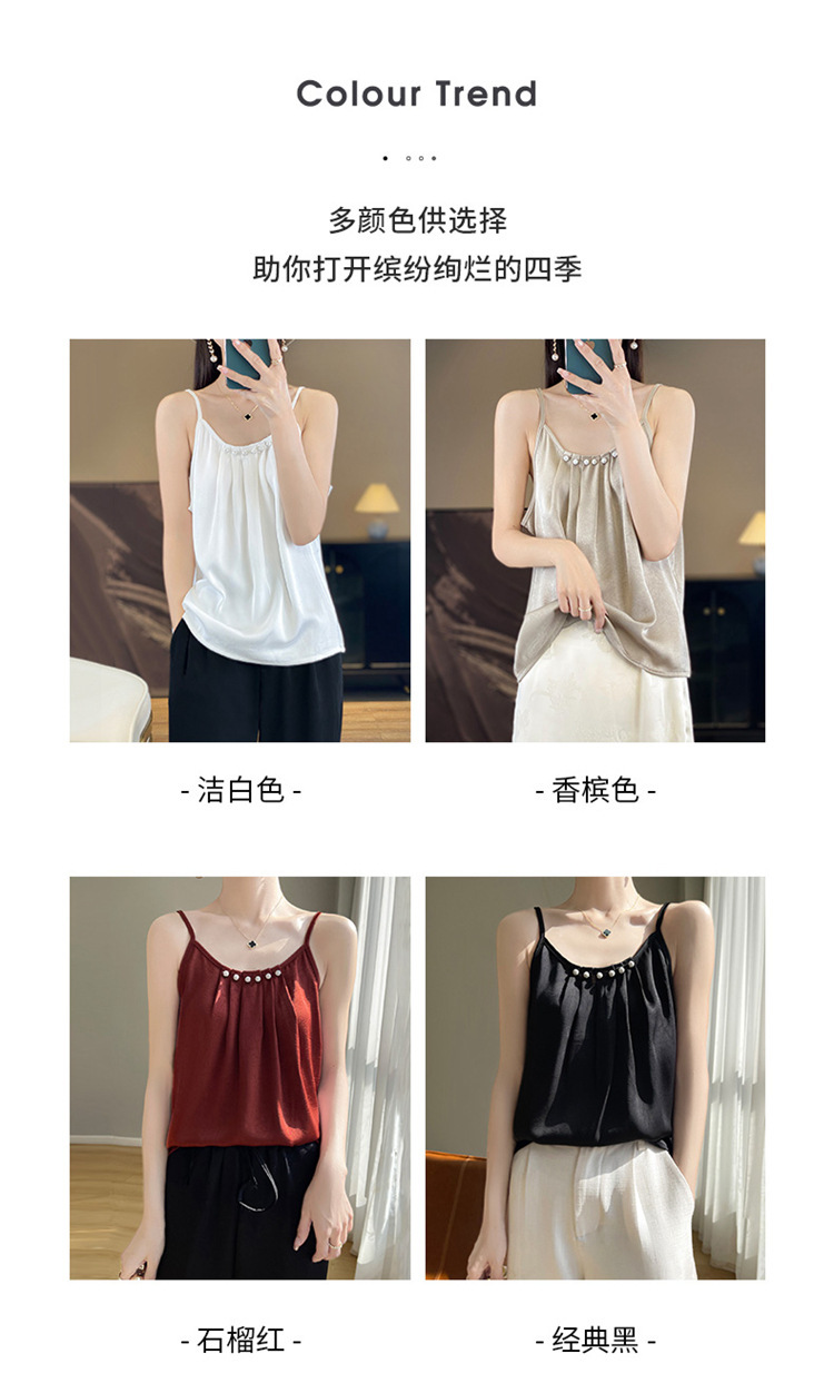 丝绸真丝2024夏季女装新修身v领短款缎面法式抹胸吊带小背心