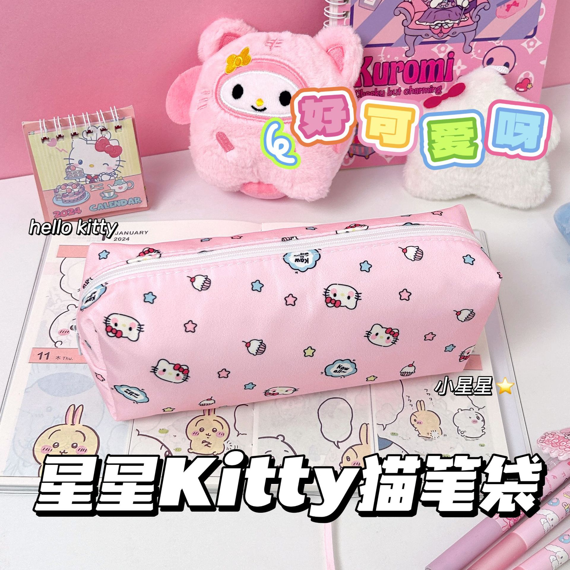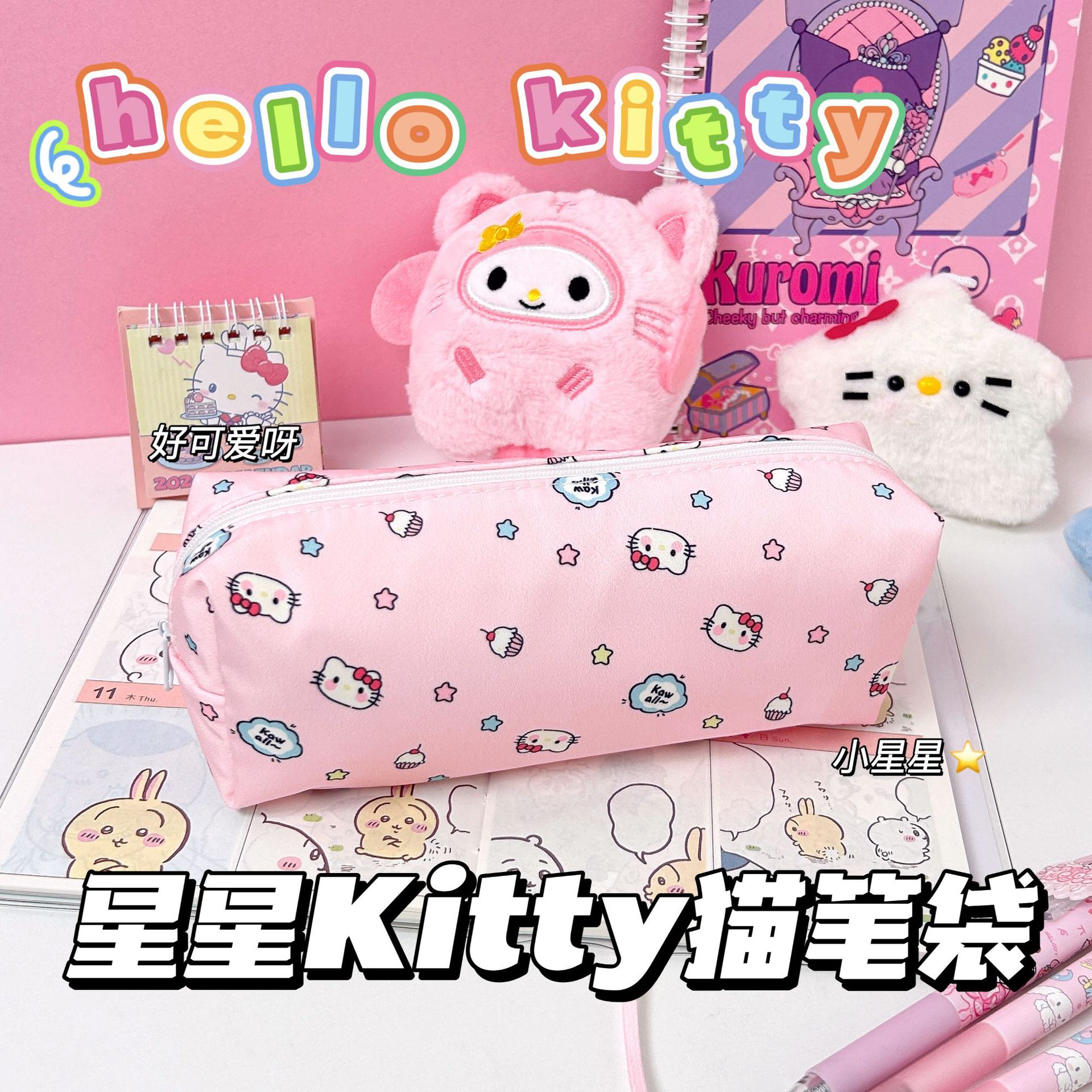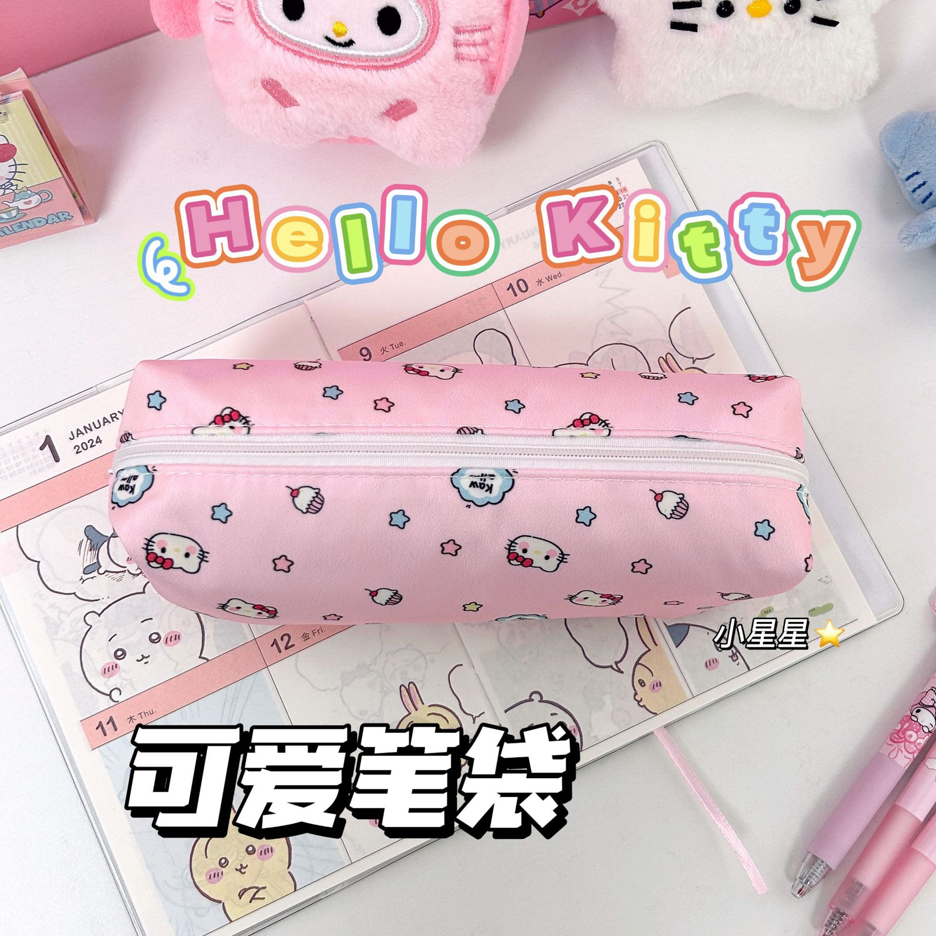 귀여운 키티 헬로 키티 연필 케이스 높은 아름다움 가치 소녀의 심장 인쇄 문구 가방 학생 대용량 메이크업 보관