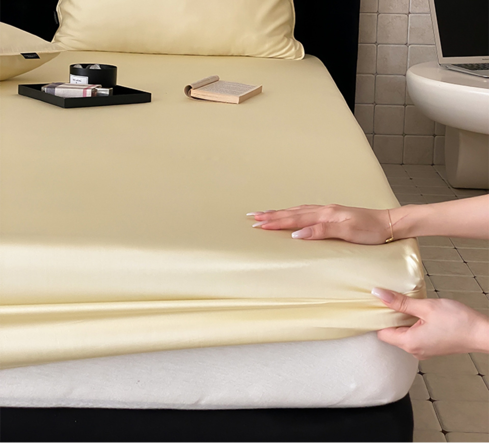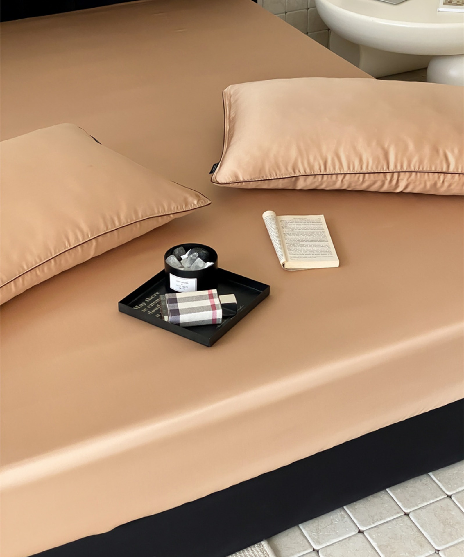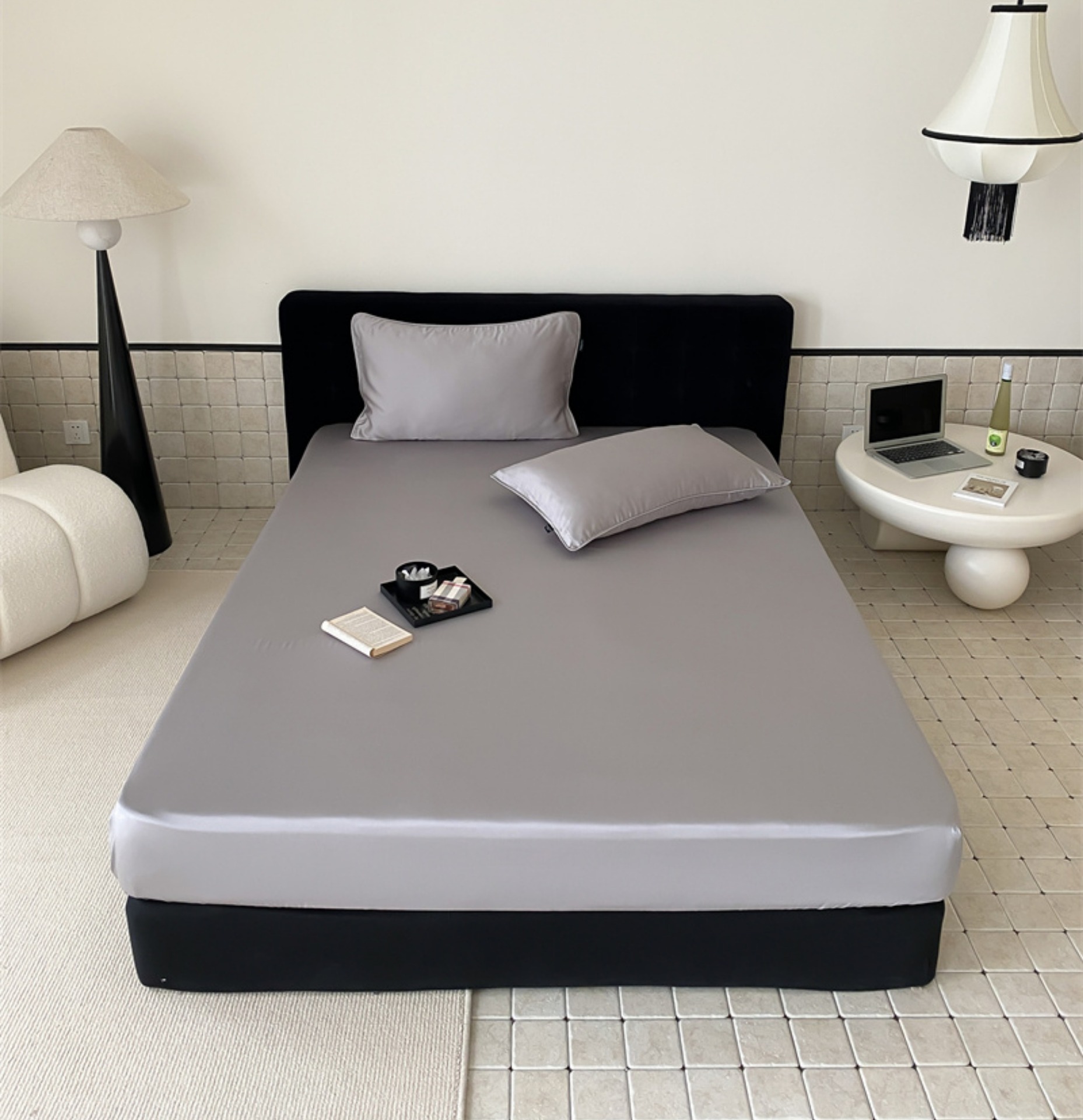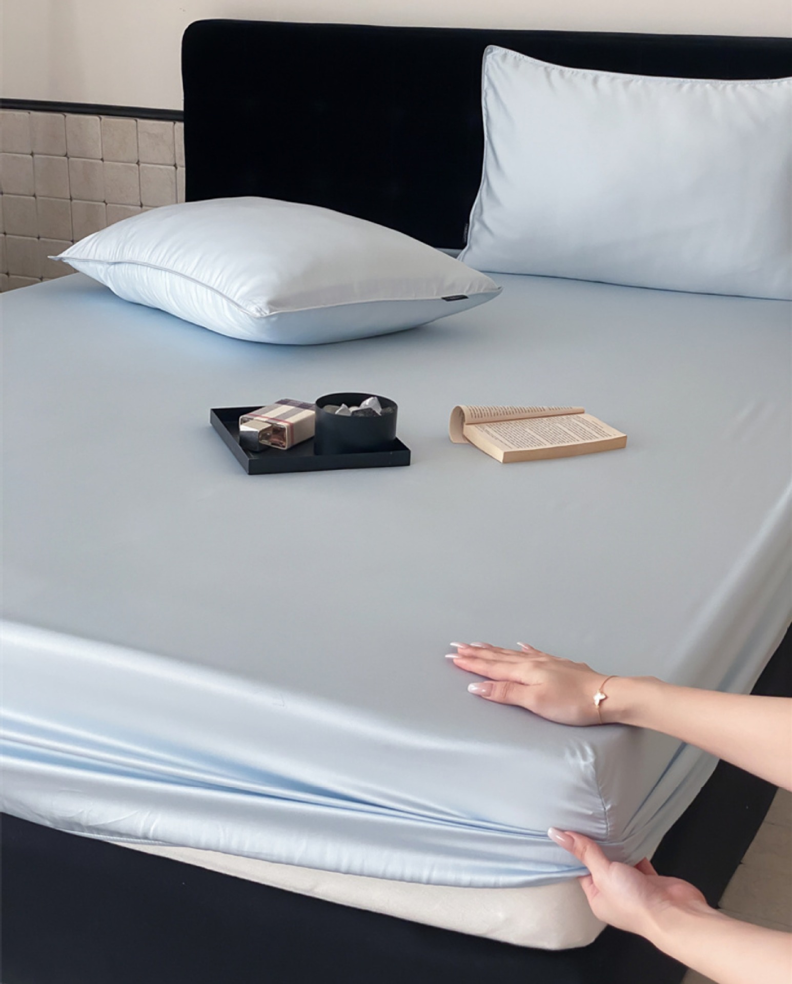 라이트 럭셔리 솔리드 컬러 랜징 텐셀 베드 커버 싱글 피스 실키 누드 베드 커버 아이스 실크 매트리스 프로텍터 커버 3 피스 더블 세트