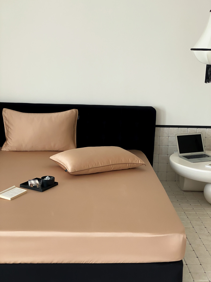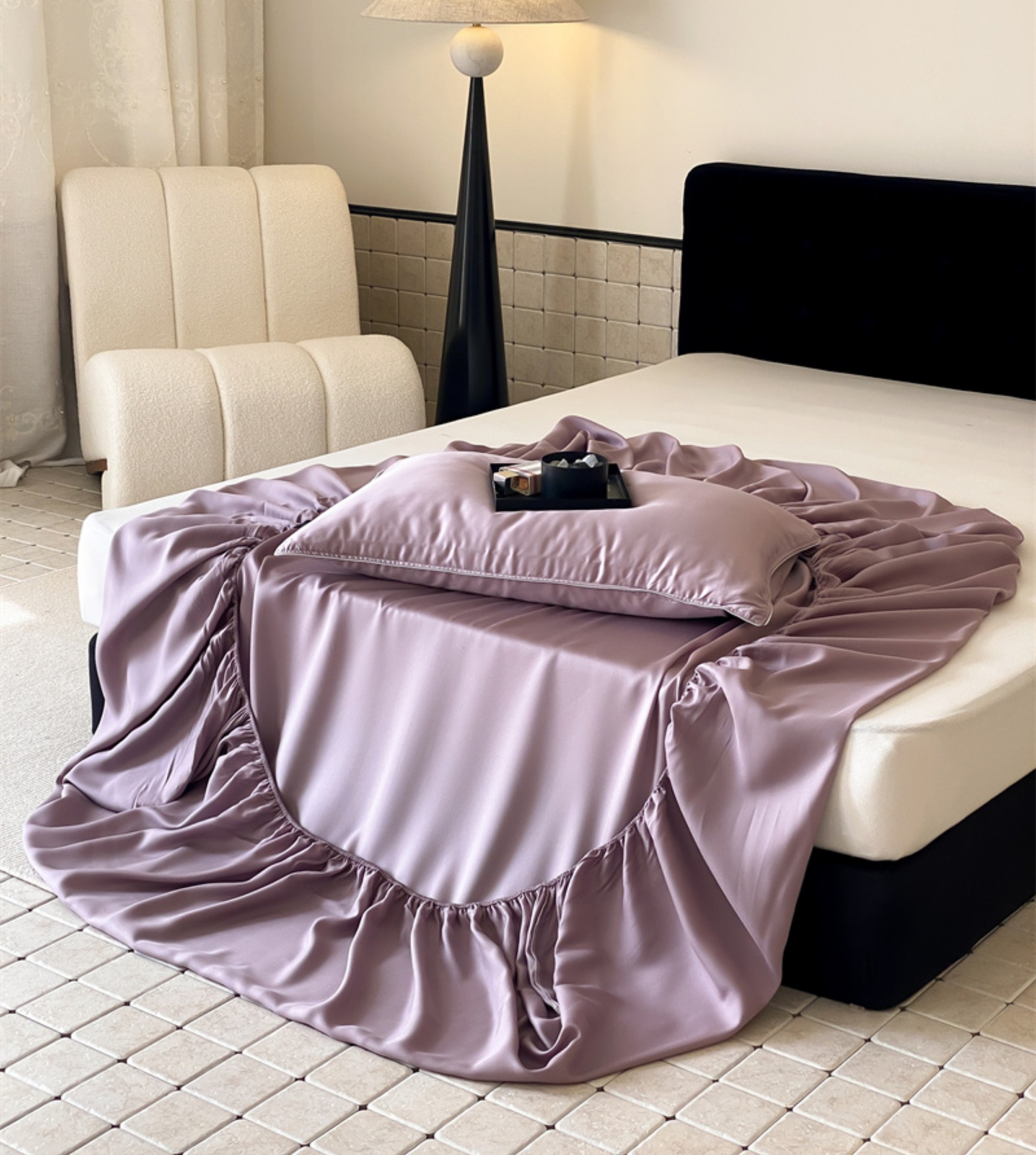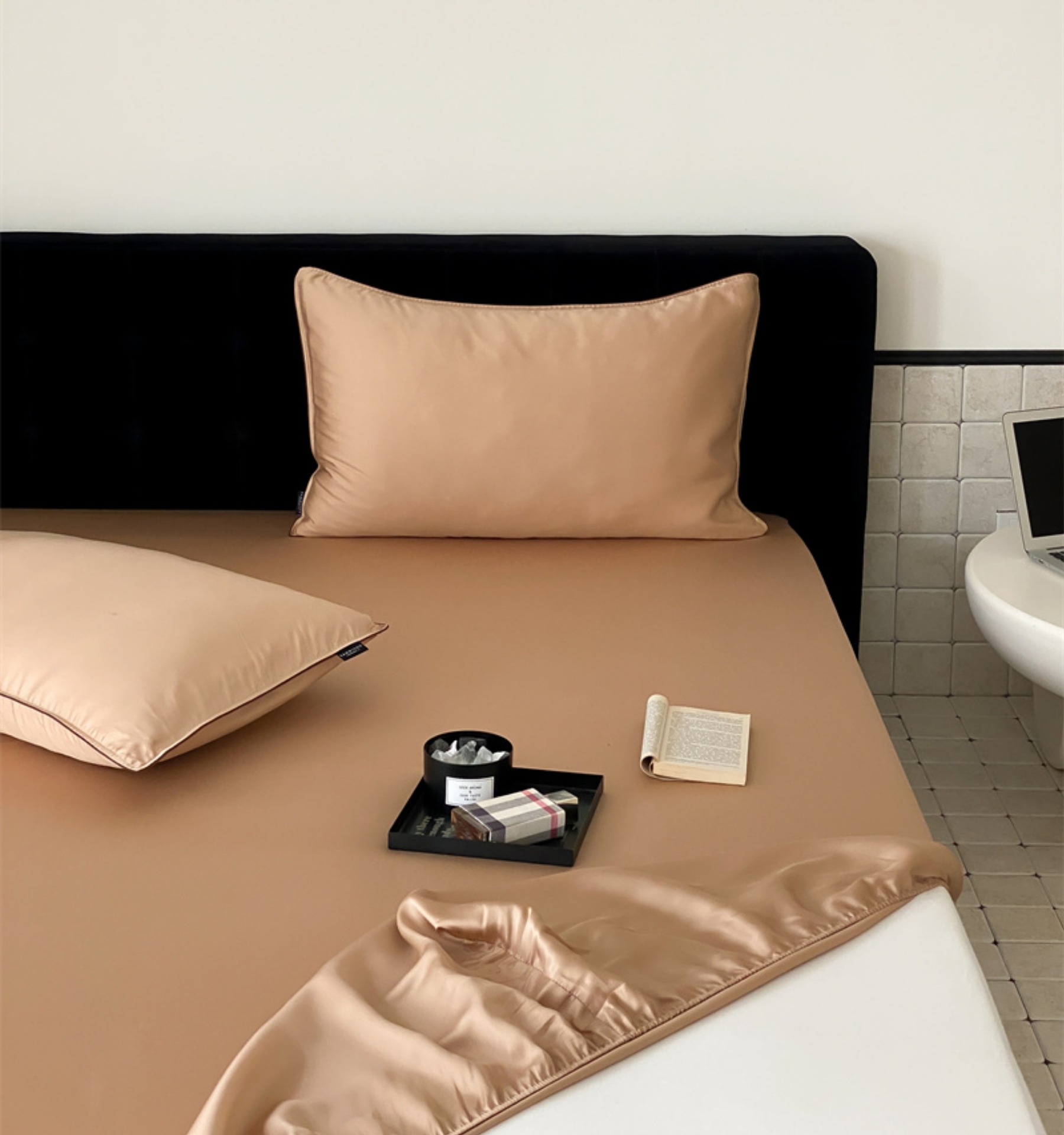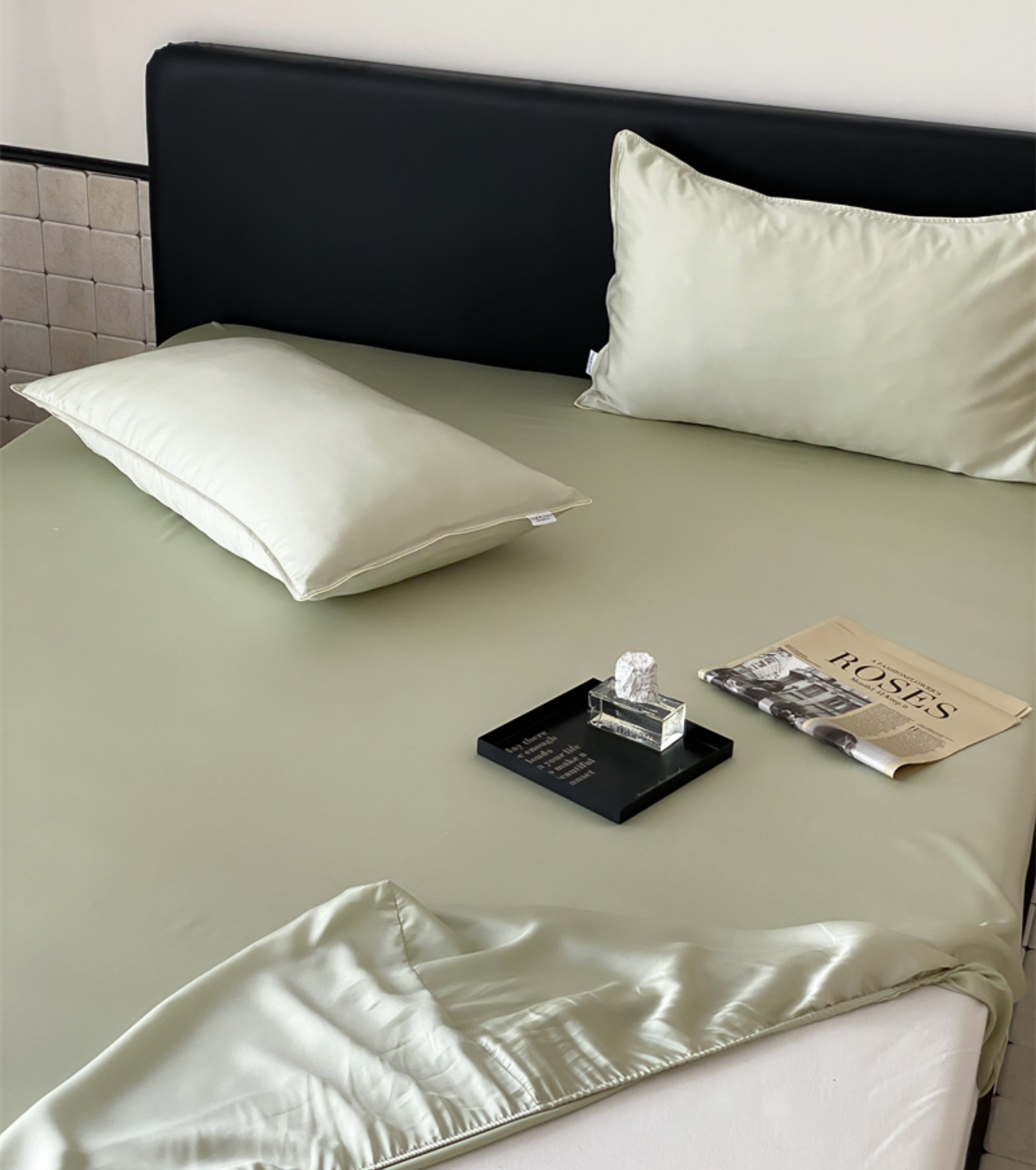 라이트 럭셔리 솔리드 컬러 랜징 텐셀 베드 커버 싱글 피스 실키 누드 베드 커버 아이스 실크 매트리스 프로텍터 커버 3 피스 더블 세트