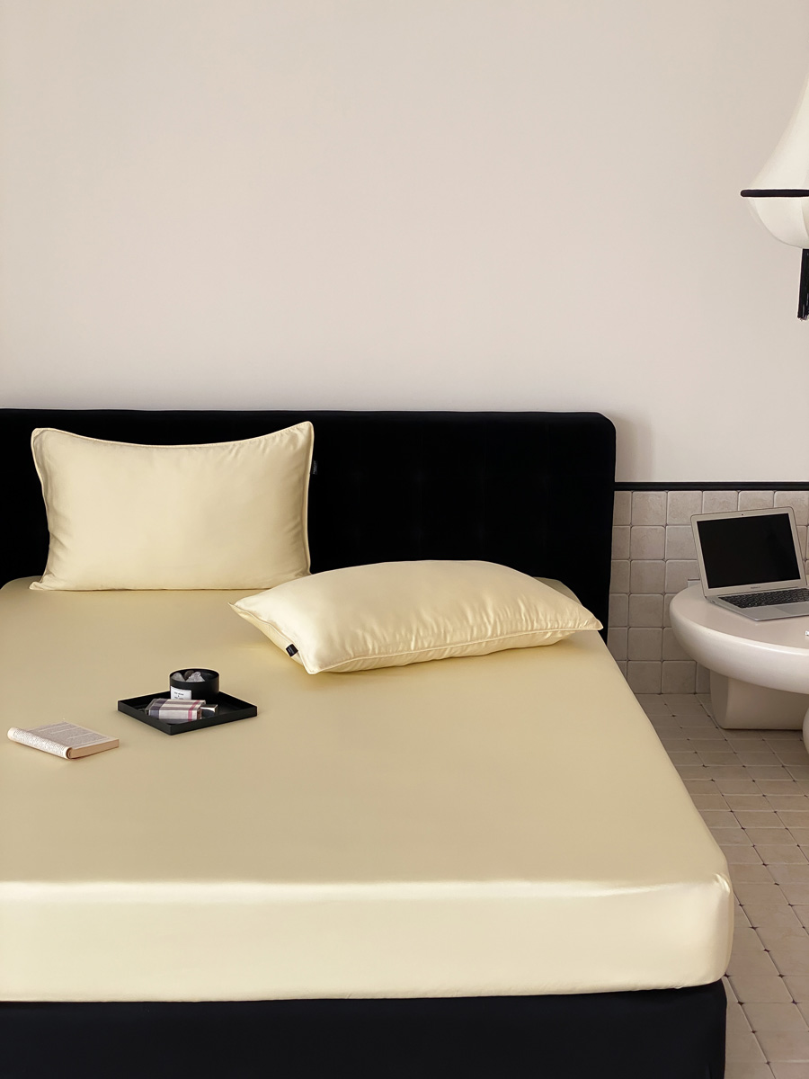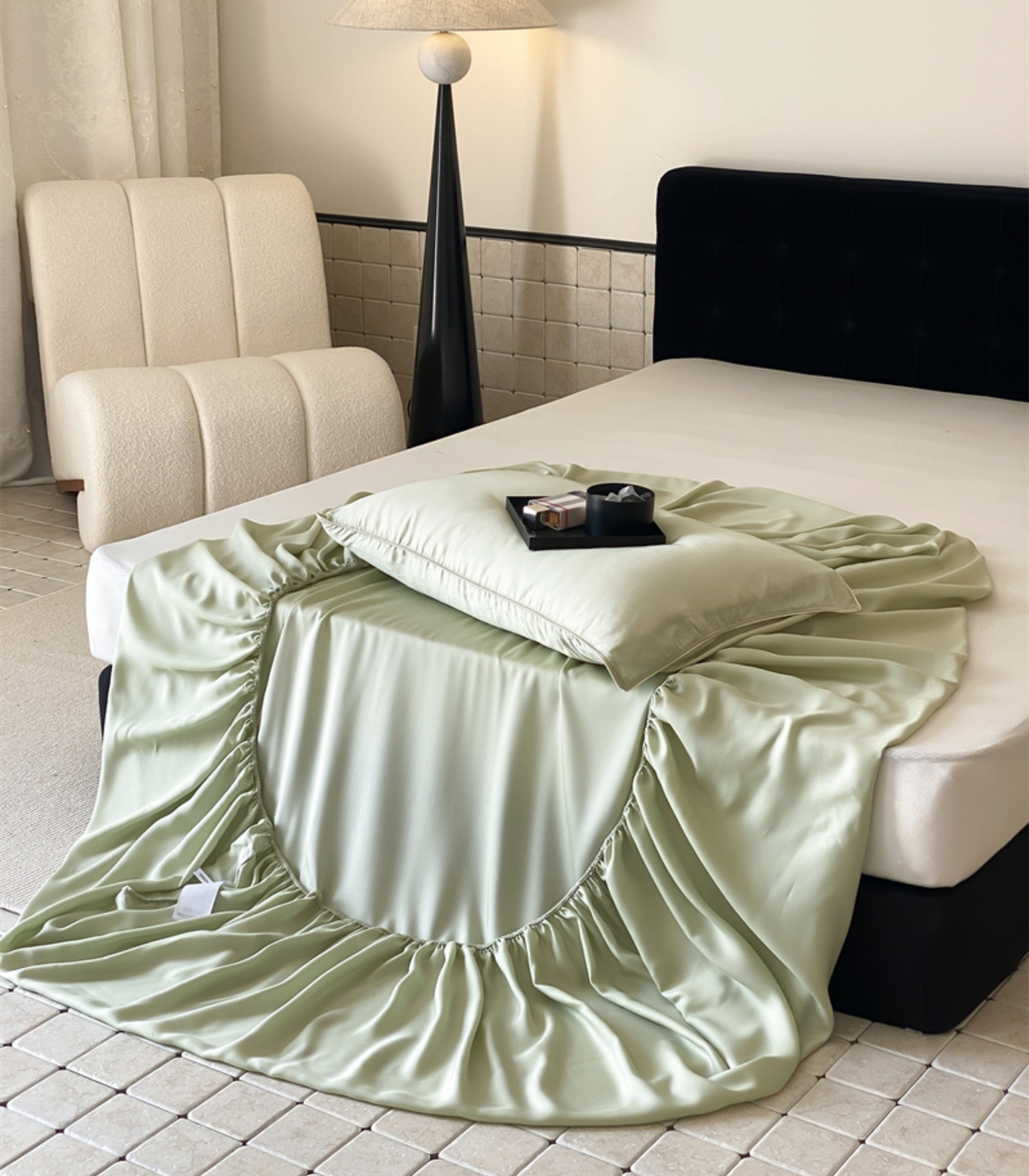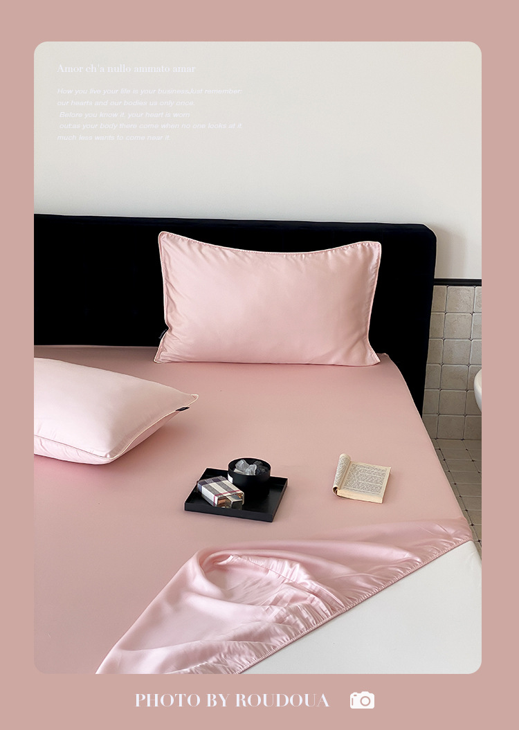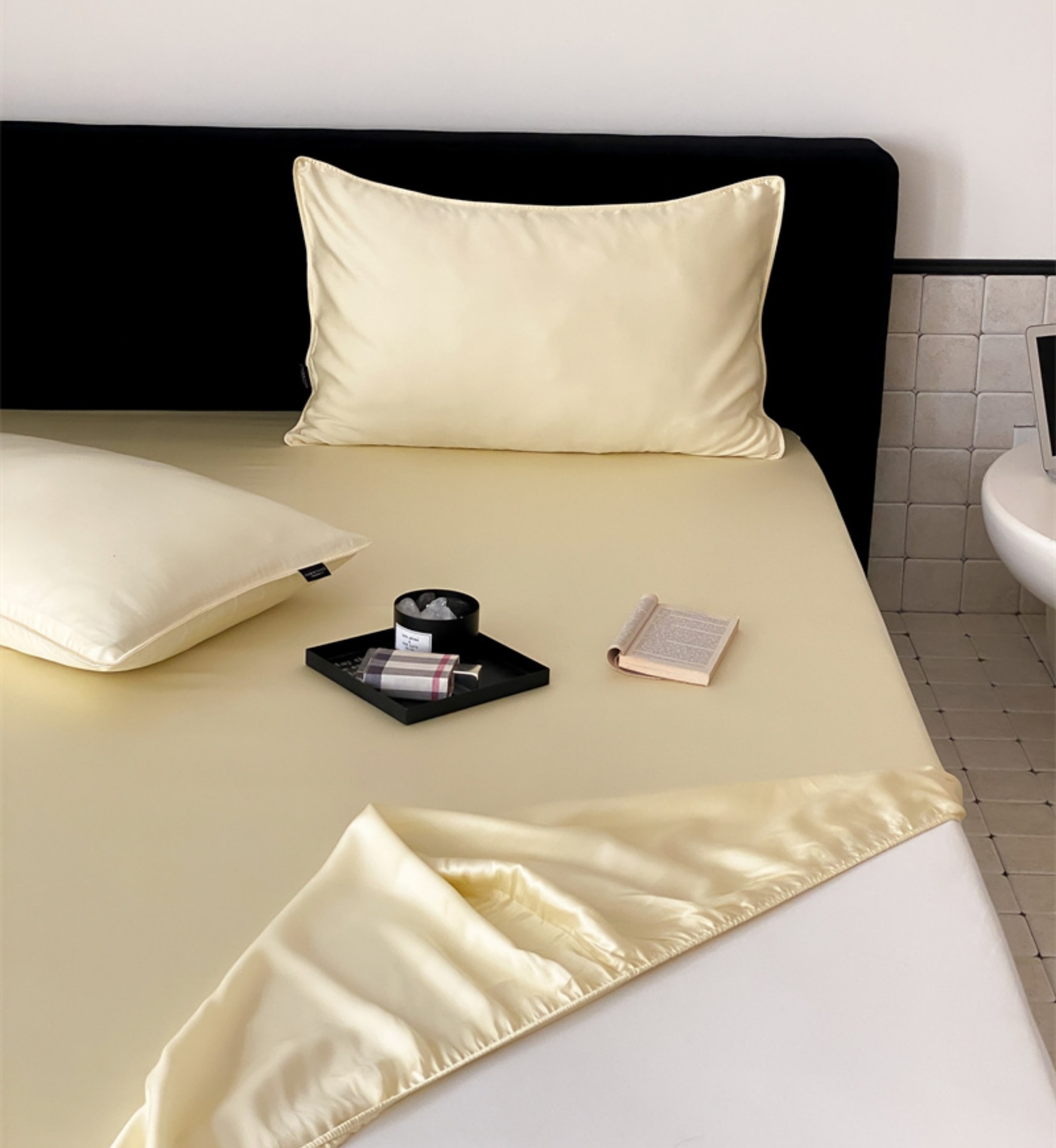 라이트 럭셔리 솔리드 컬러 랜징 텐셀 베드 커버 싱글 피스 실키 누드 베드 커버 아이스 실크 매트리스 프로텍터 커버 3 피스 더블 세트