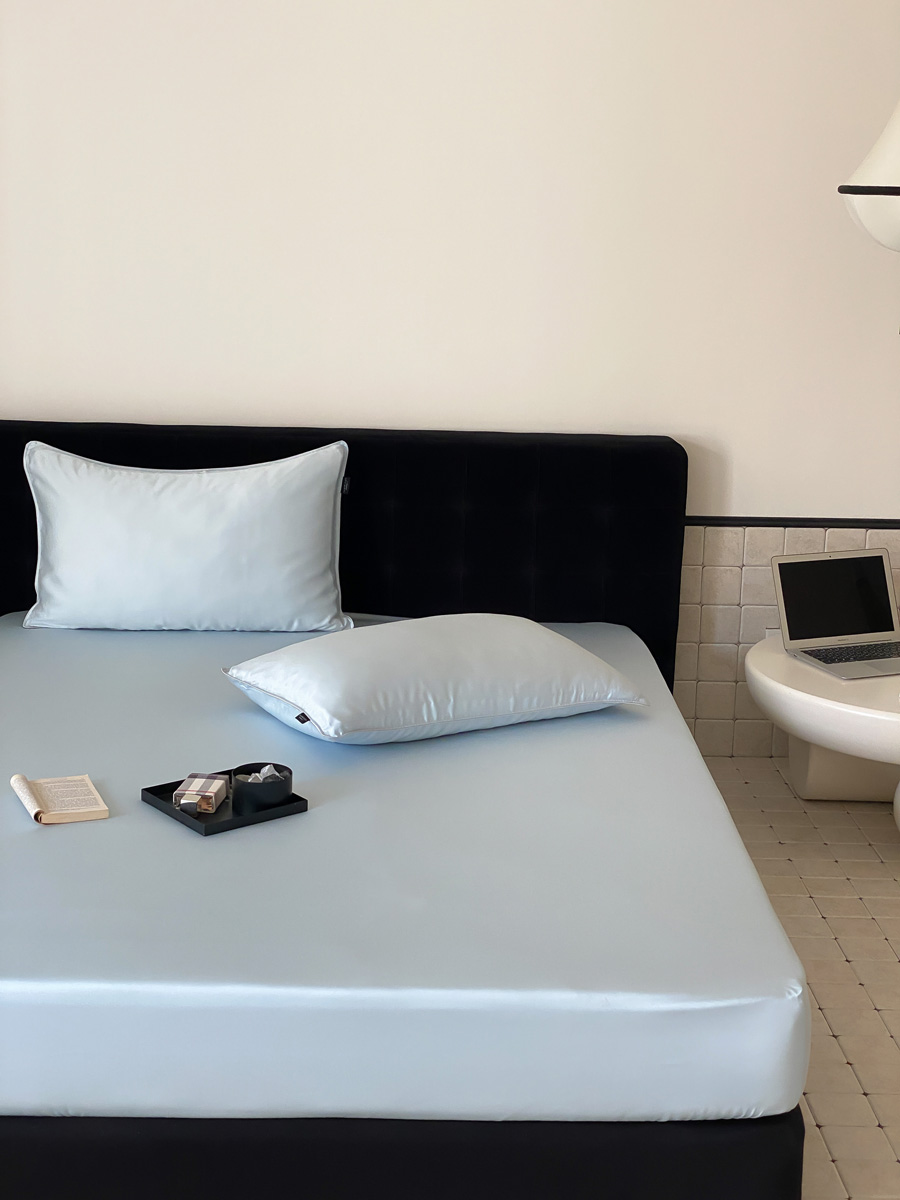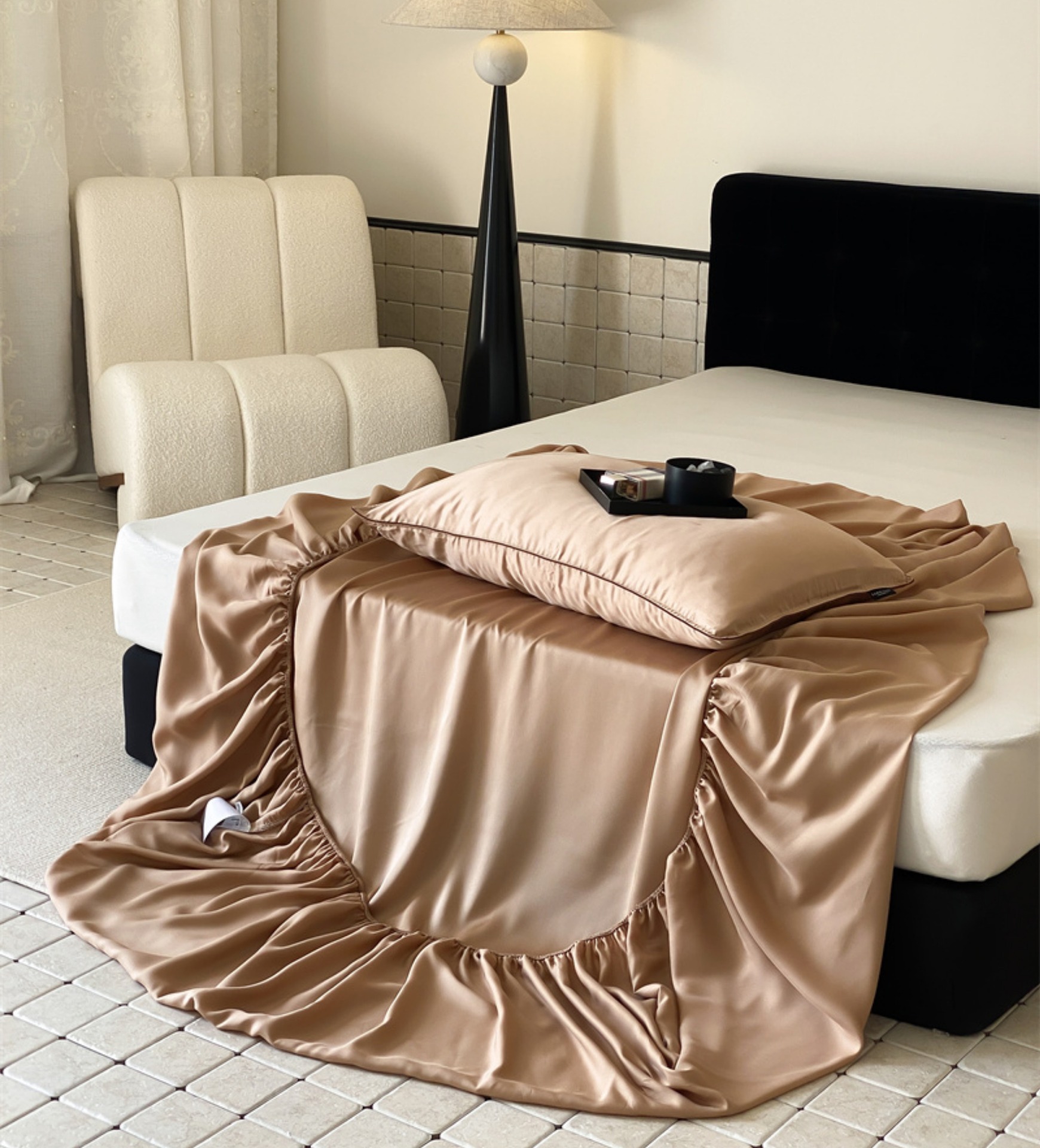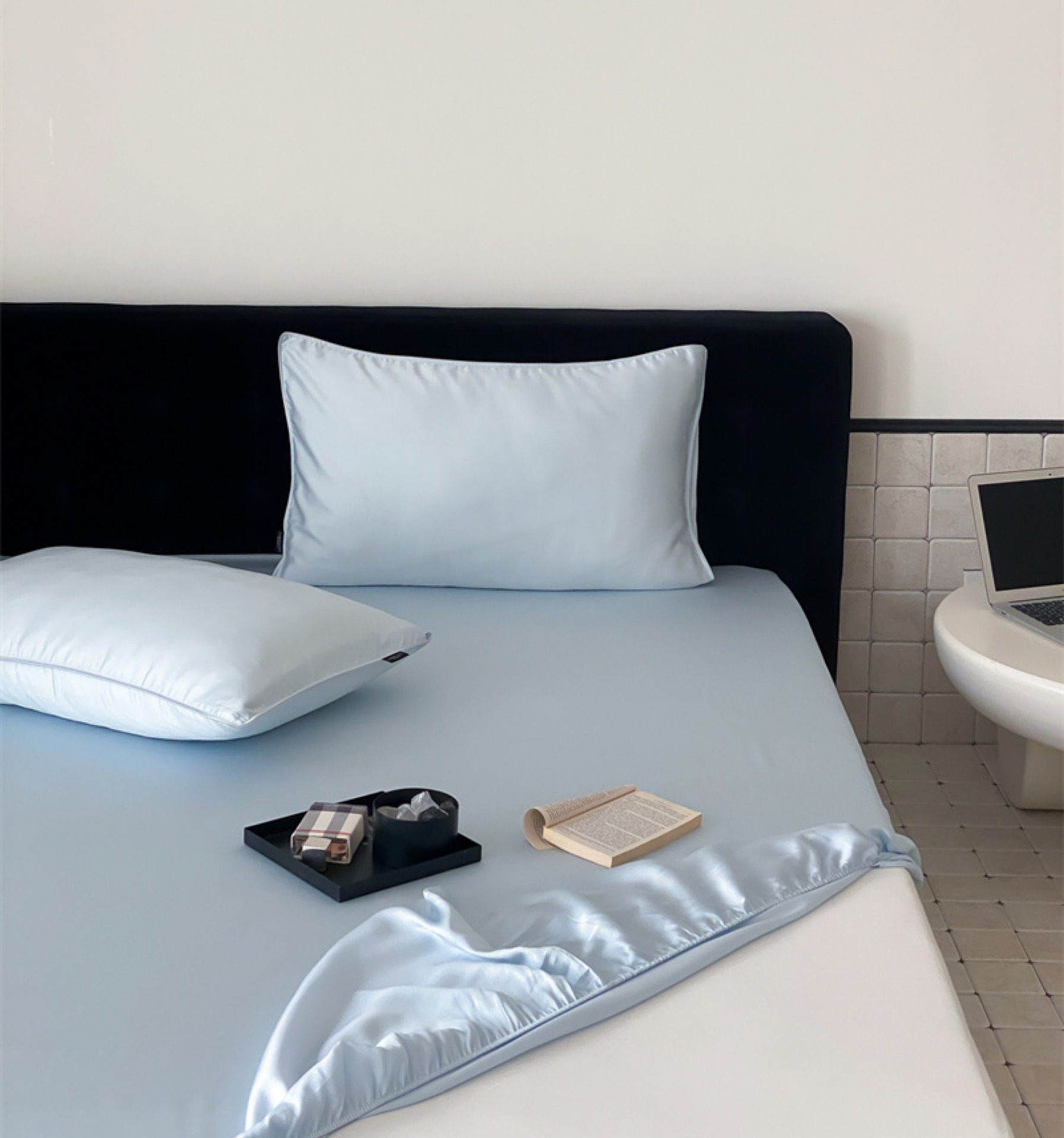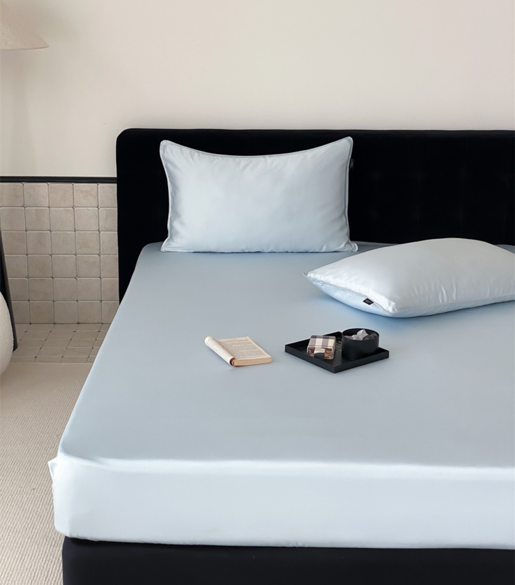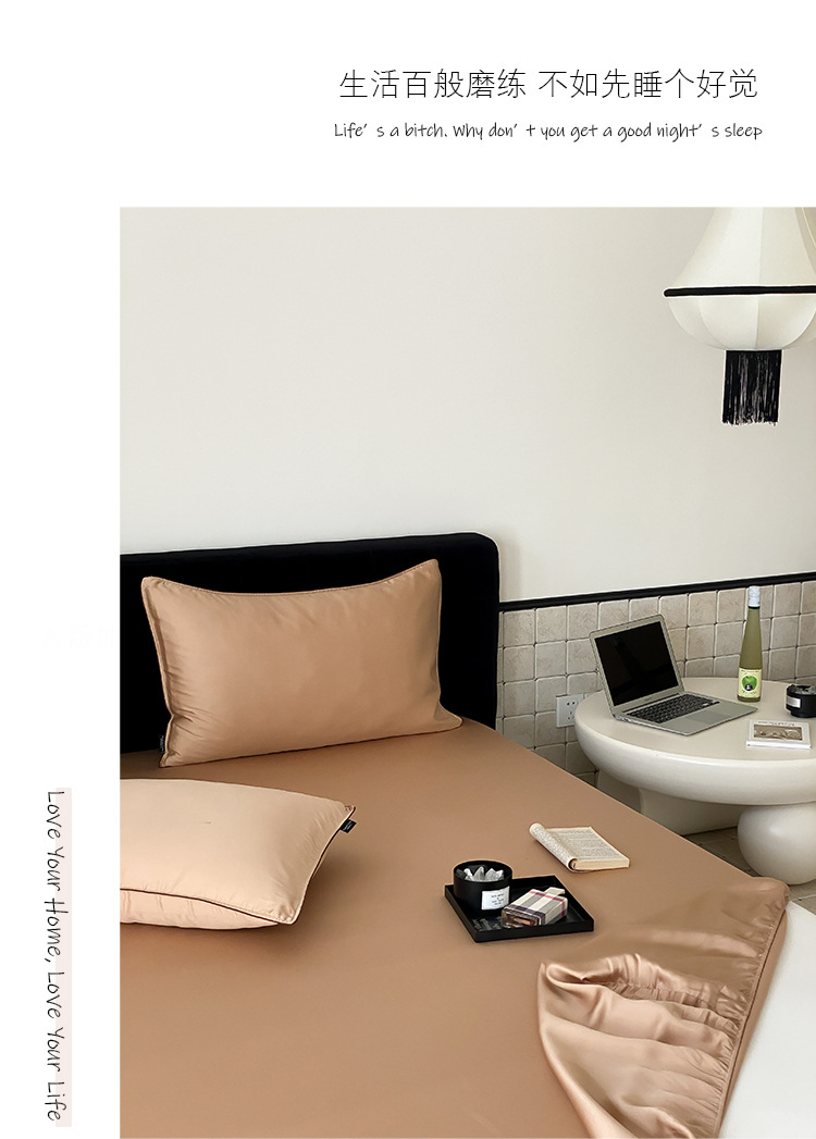라이트 럭셔리 솔리드 컬러 랜징 텐셀 베드 커버 싱글 피스 실키 누드 베드 커버 아이스 실크 매트리스 프로텍터 커버 3 피스 더블 세트스토어 가기
