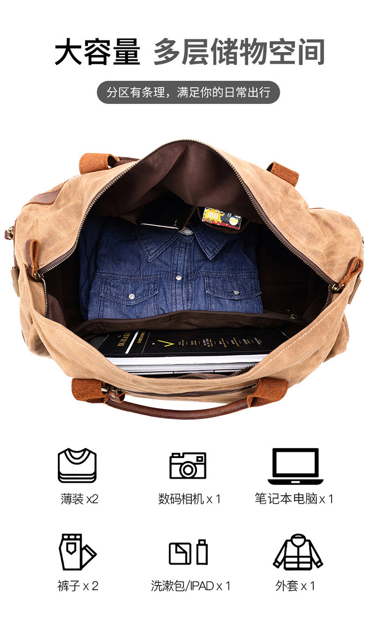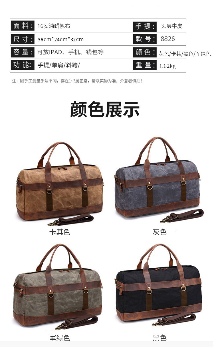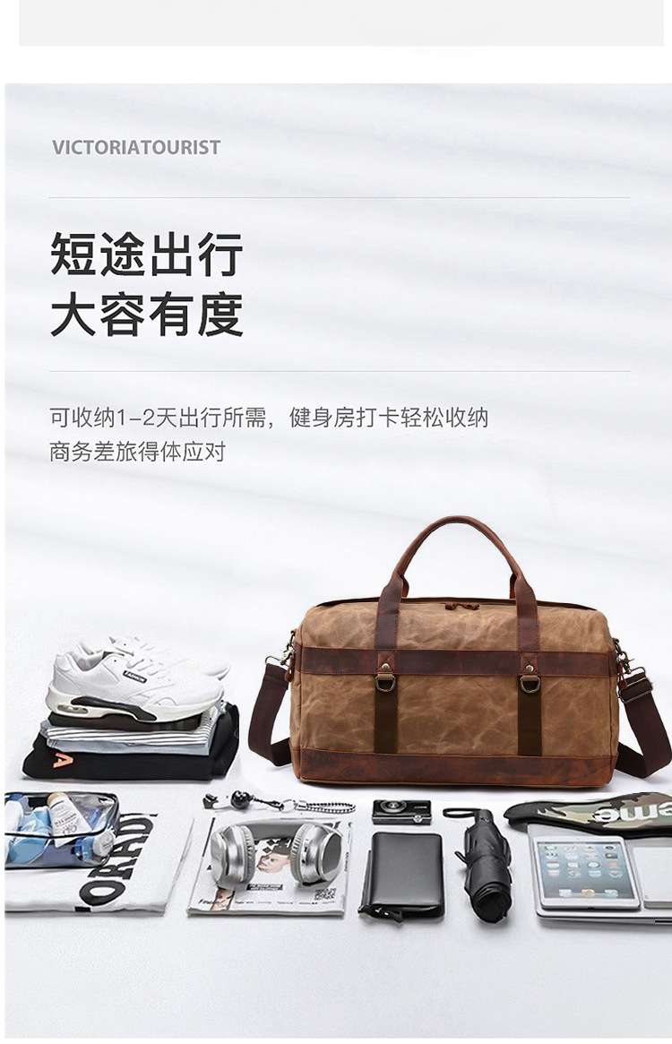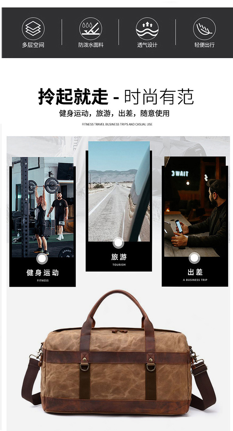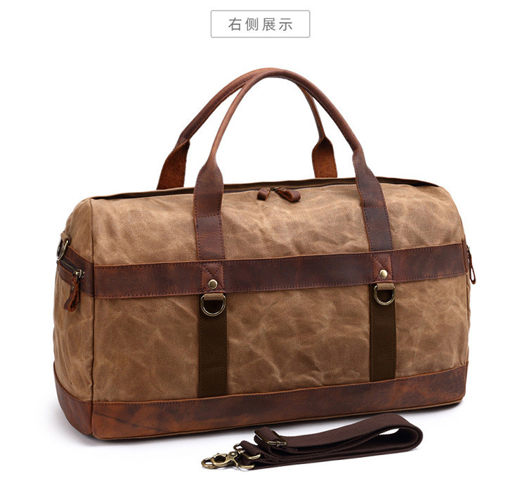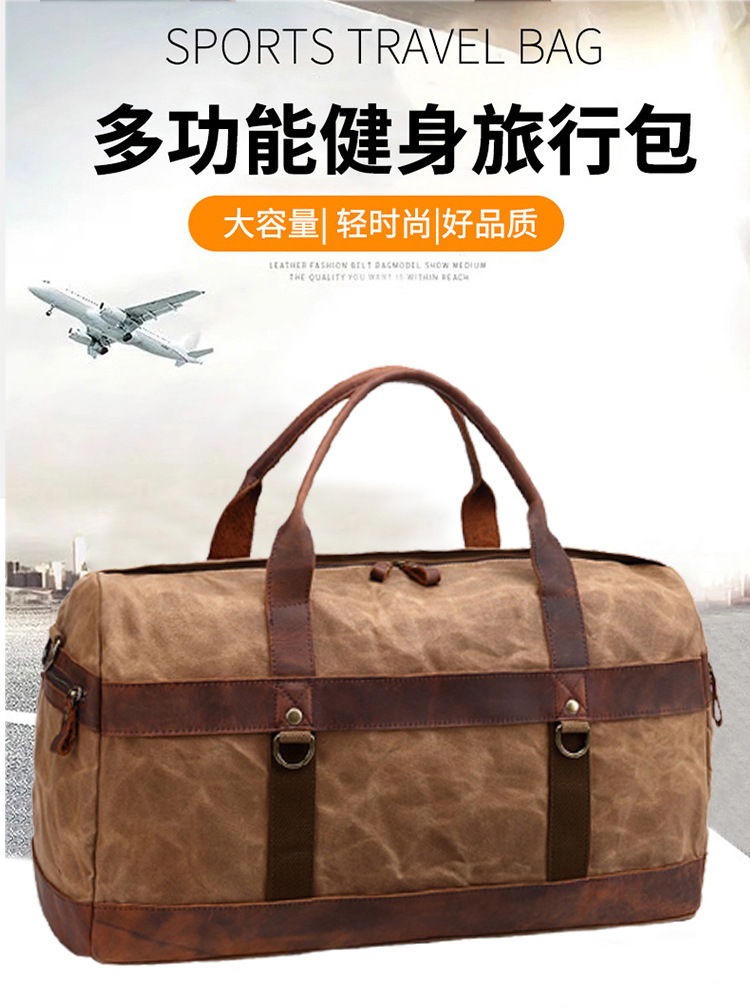 여행 가방 남성 지붕 수하물 가방 대용량 요가 피트니스 가방 길고 짧은 거리 여행 이동 캔버스 미친 말 가죽