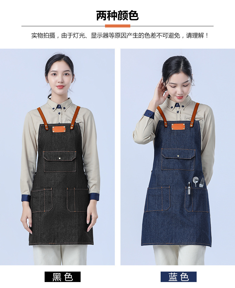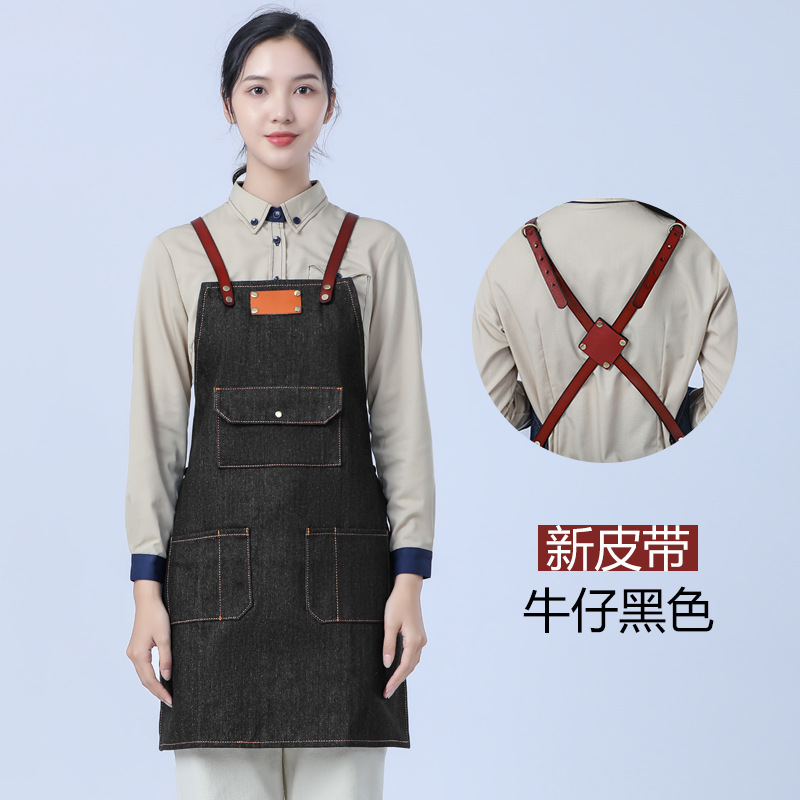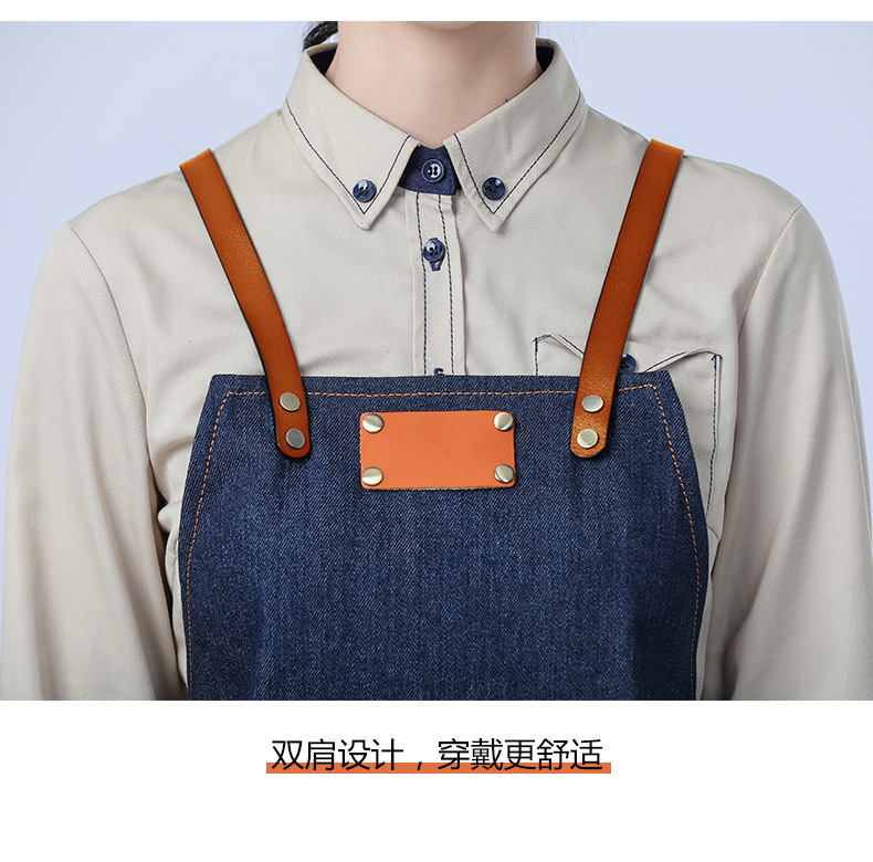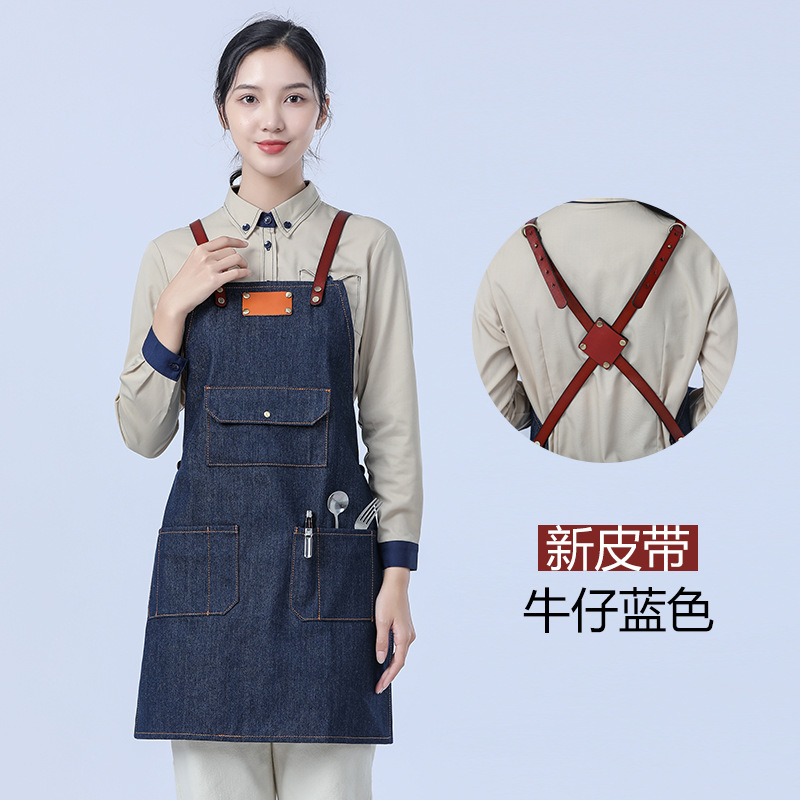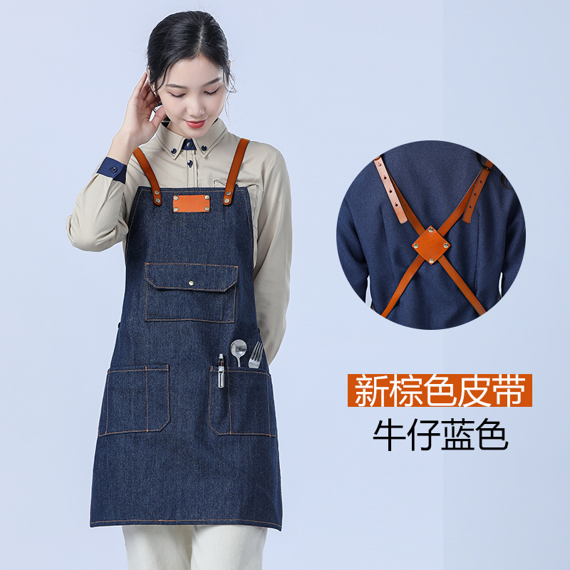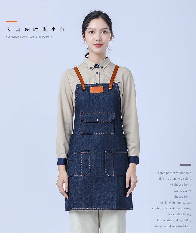 아마존 데님 앞치마 부엌 카페 케이크 가게 미용실 이발사 작업복 홈 앞치마 도매