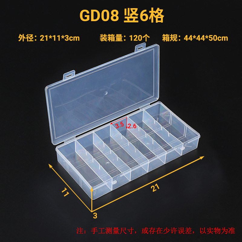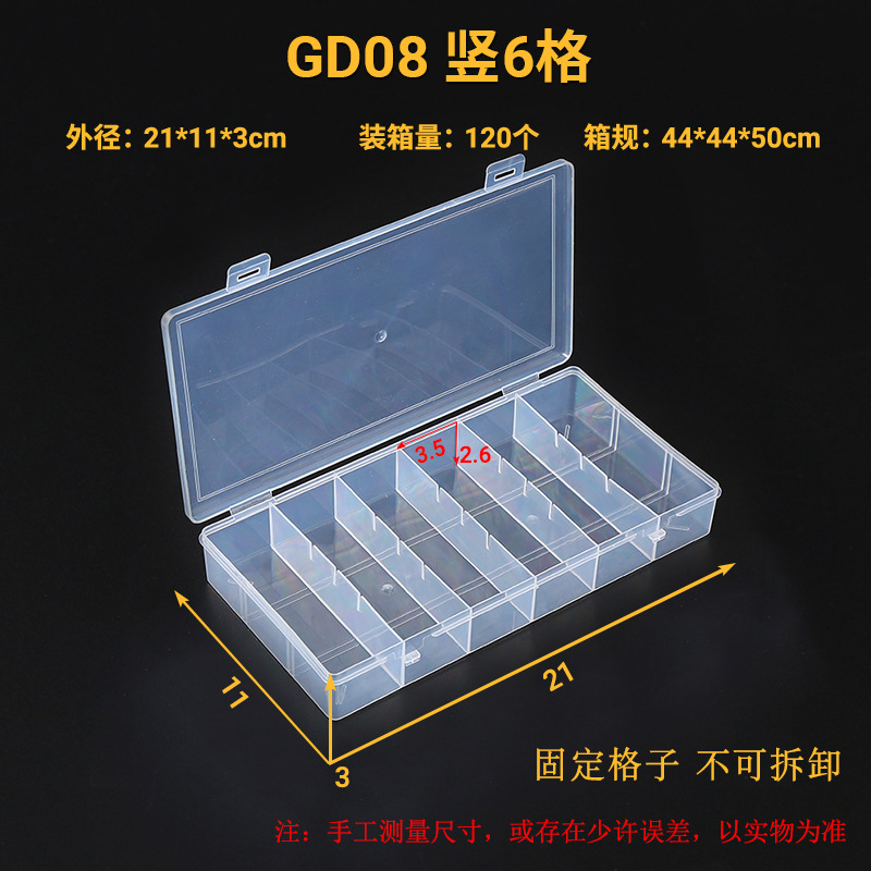 수직 6 구획 파티션 저장 상자 부품 부품 하드웨어 보석 구슬 도로 서브 박스 낚시 도구 상자 PP 투명 플라스틱 상자스토어 가기