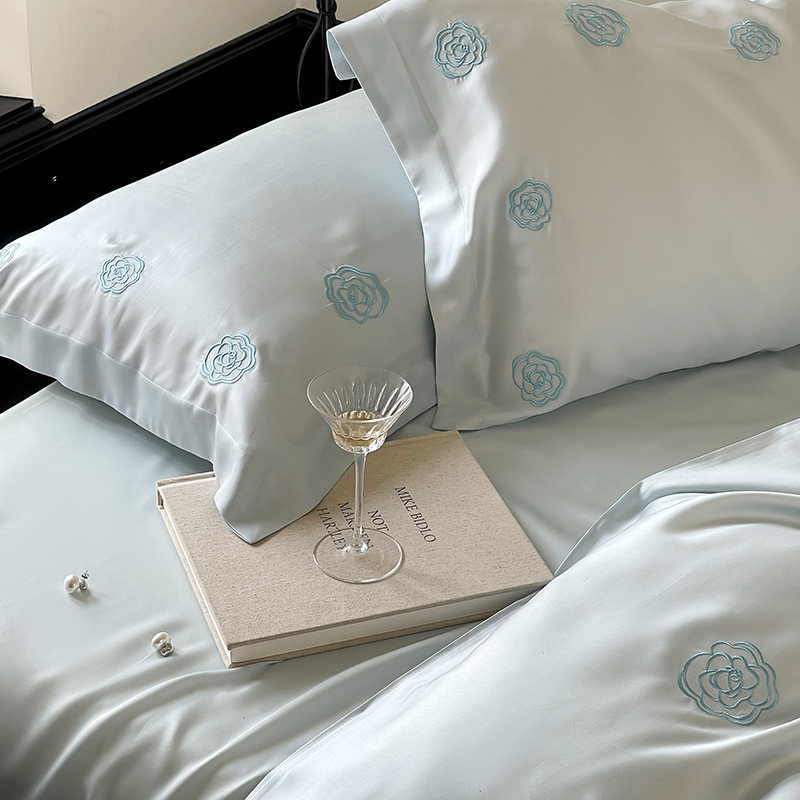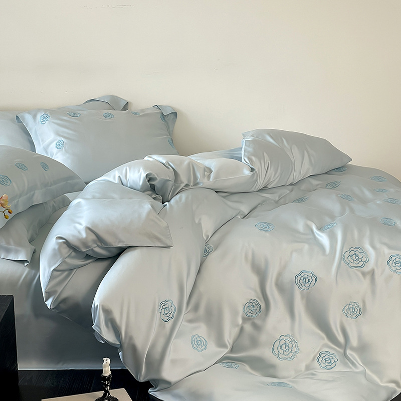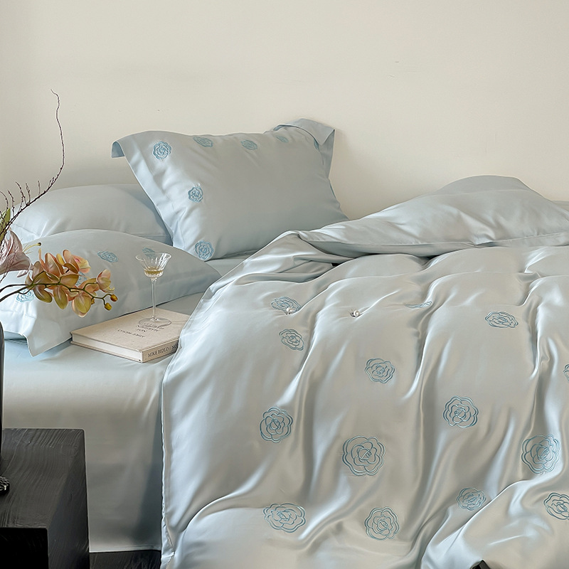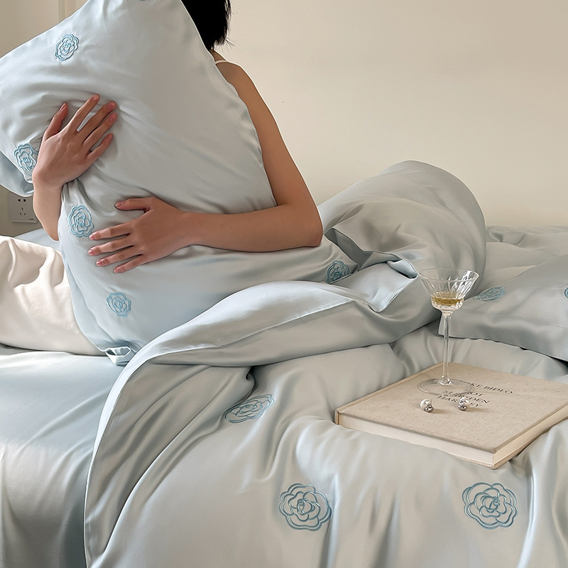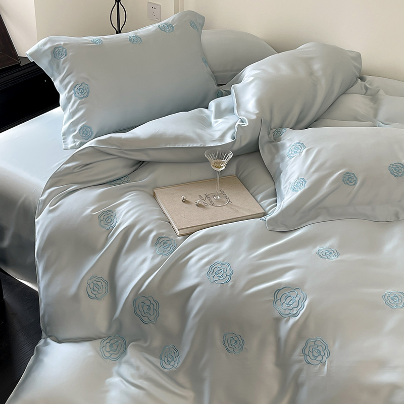 수입 100 년대 오스트리아 LF Lanjing Tencel 4 피스 세트 여름 하이 엔드 라이트 럭셔리 자수 침구 3 피스 퀼트 커버