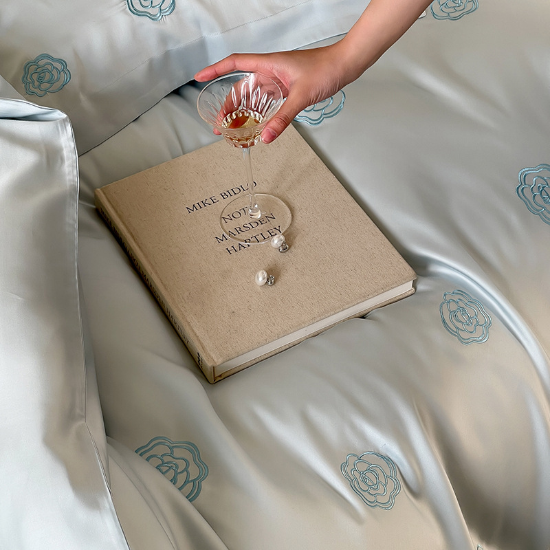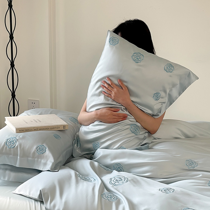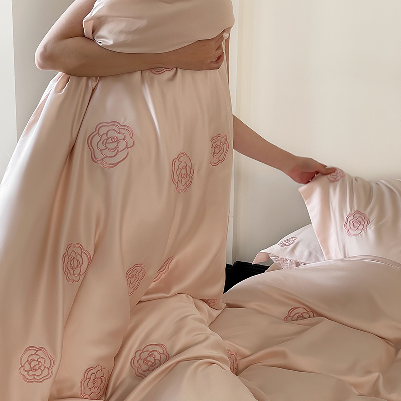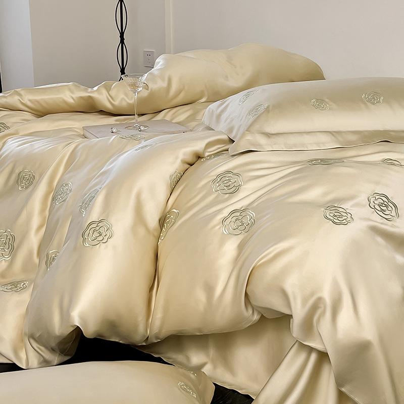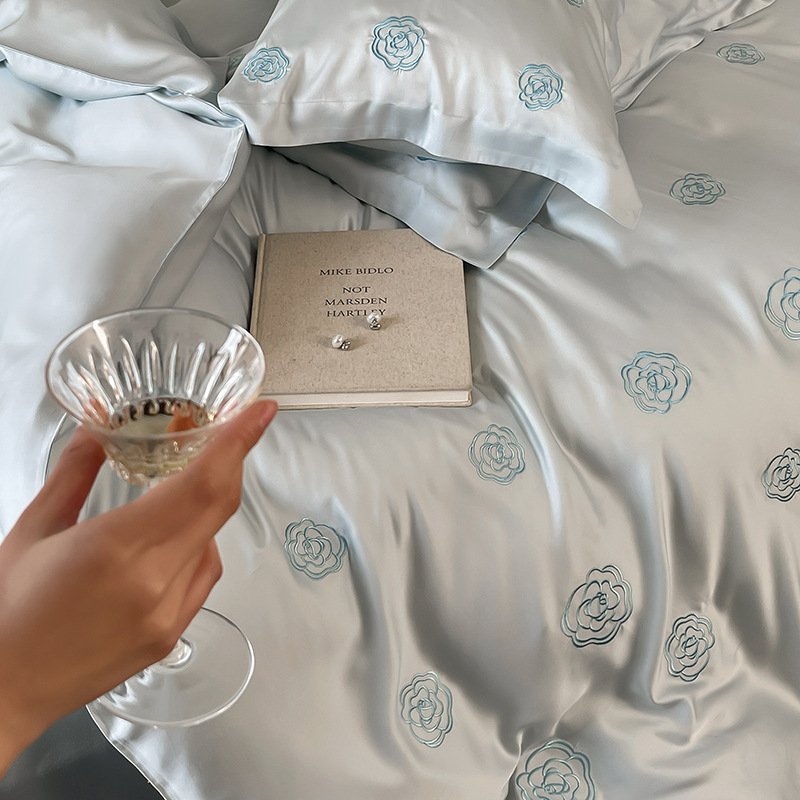 수입 100 년대 오스트리아 LF Lanjing Tencel 4 피스 세트 여름 하이 엔드 라이트 럭셔리 자수 침구 3 피스 퀼트 커버