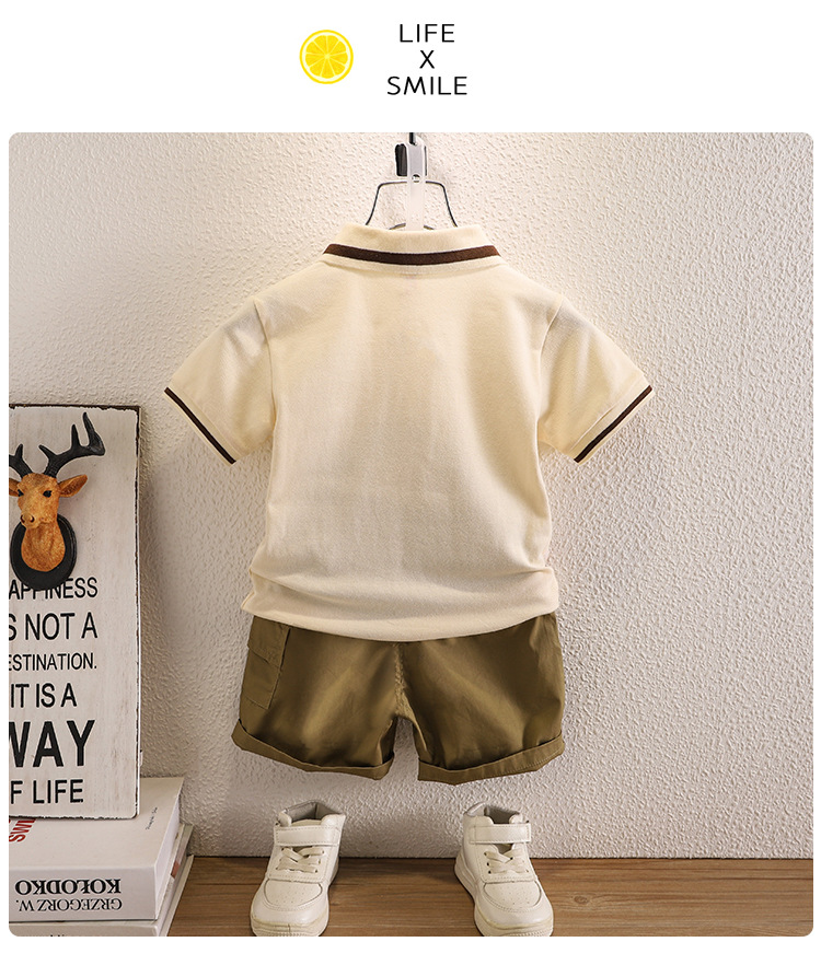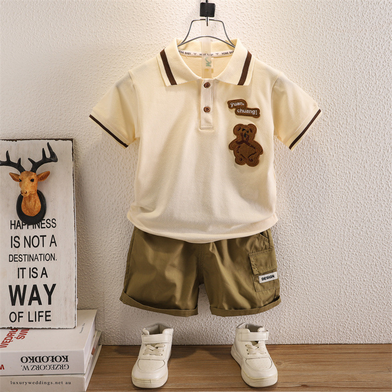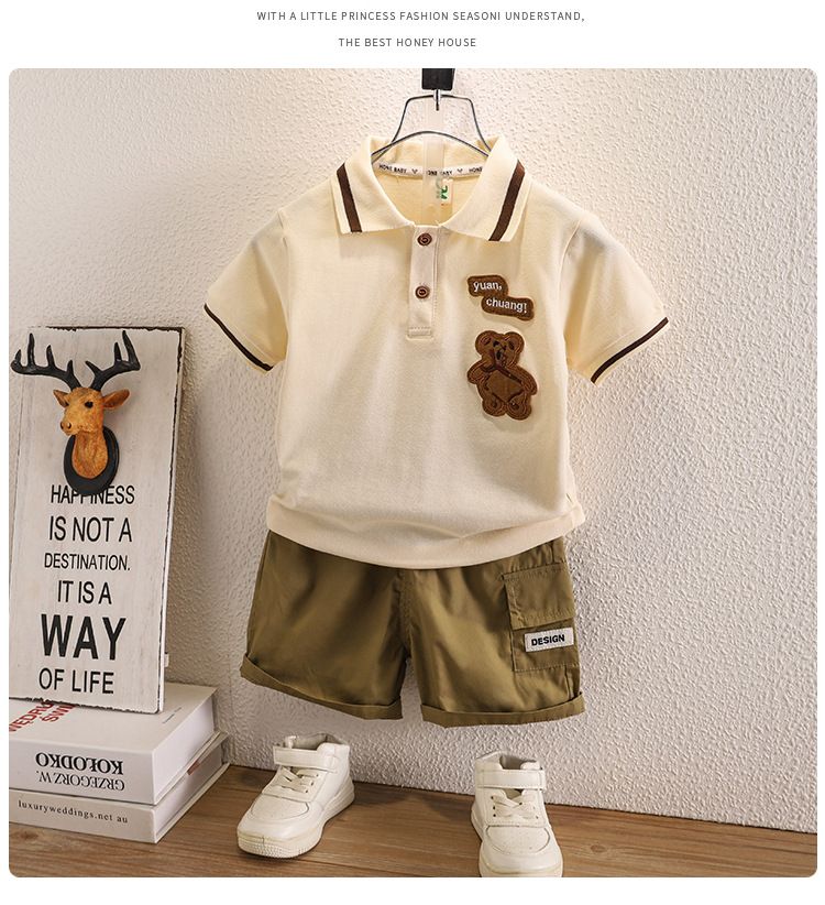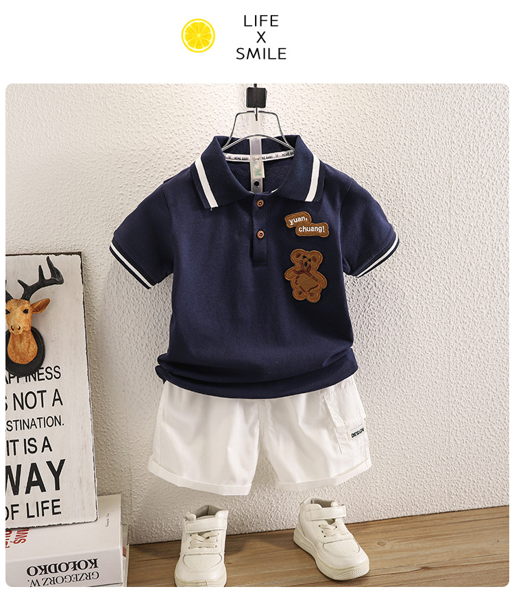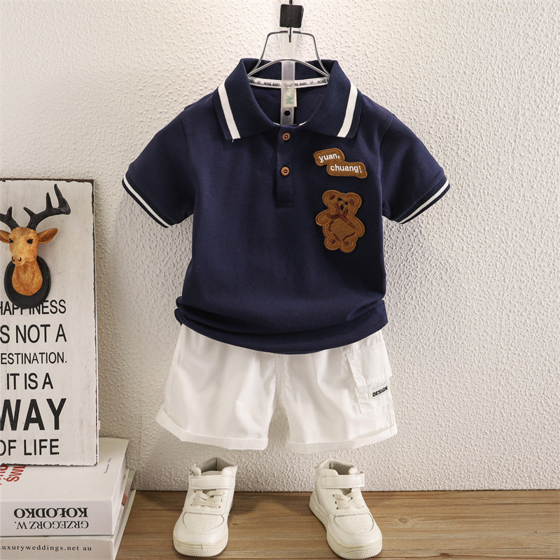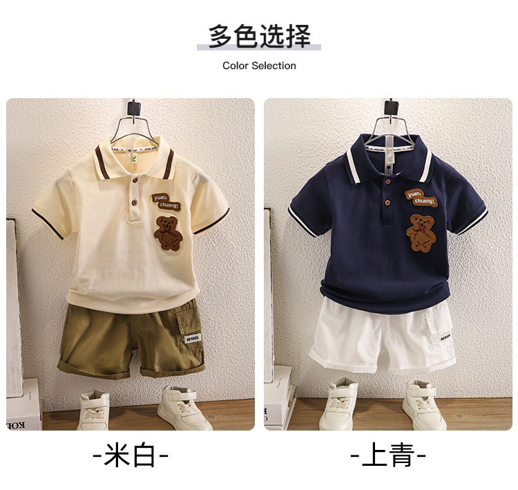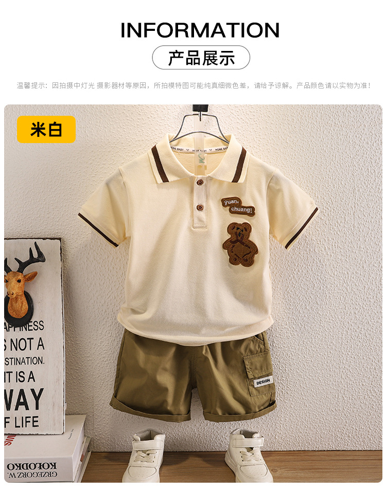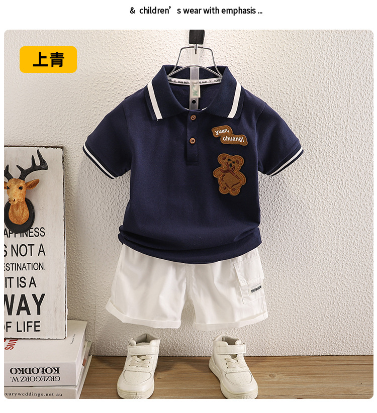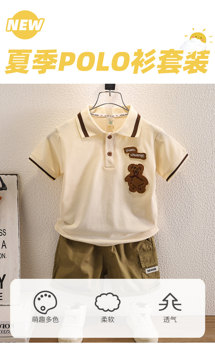 소년 반팔 곰 폴로 셔츠 세트 한국 잘 생긴 소년 쿨 잘 생긴 얇은 옷 중소 어린이 대외 무역 아동복